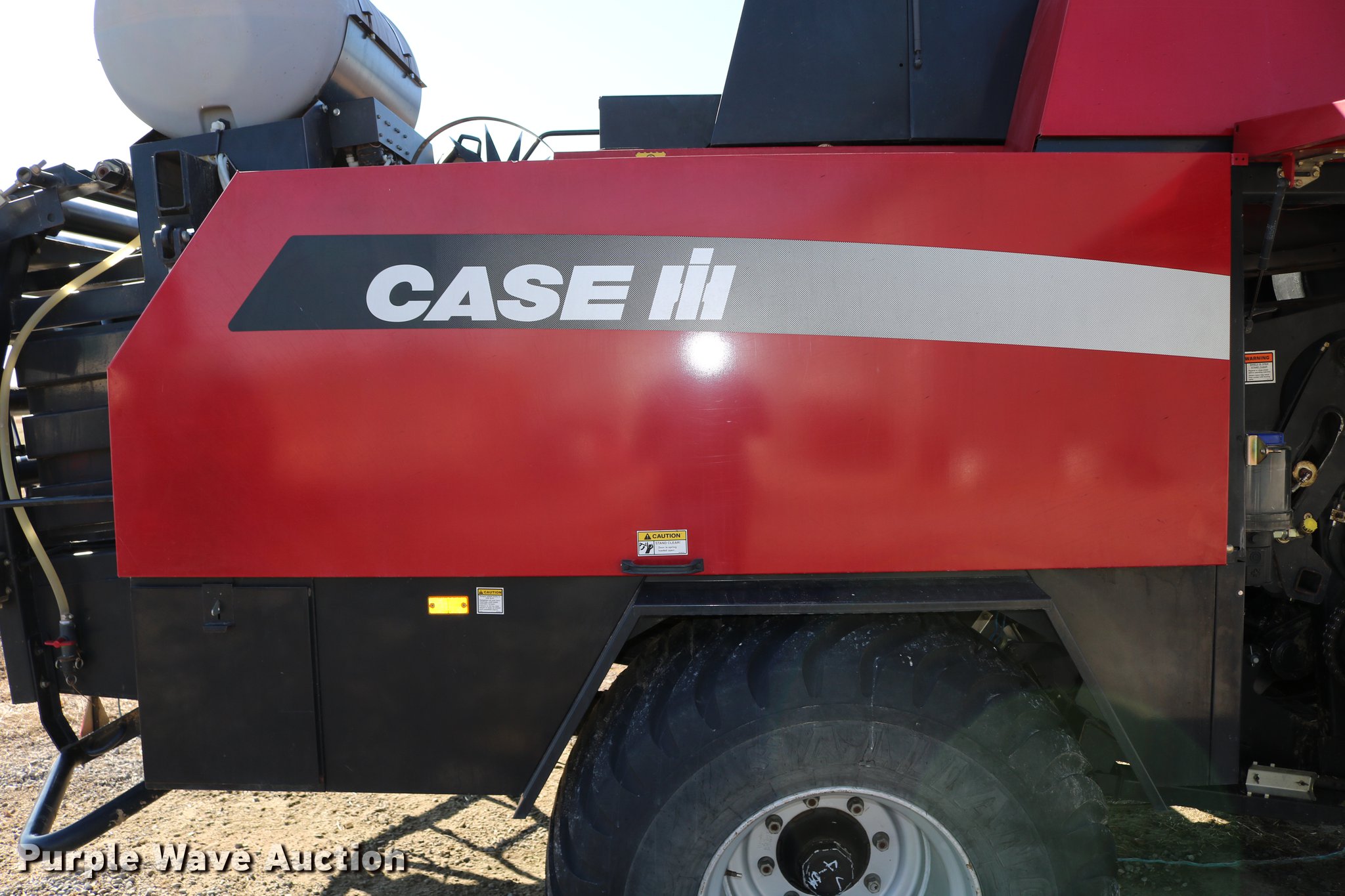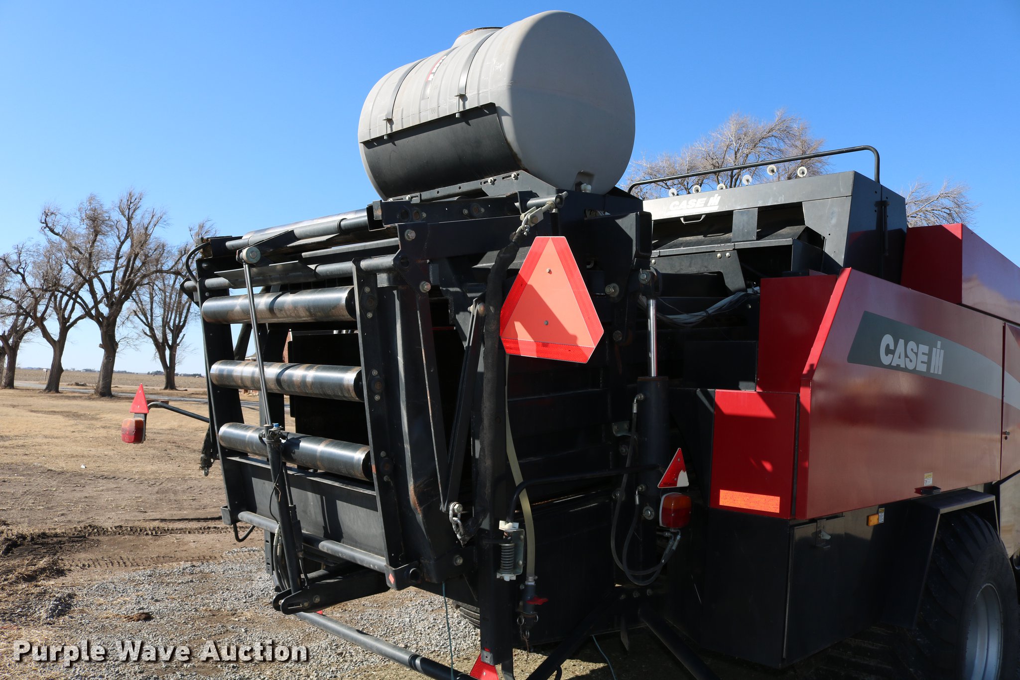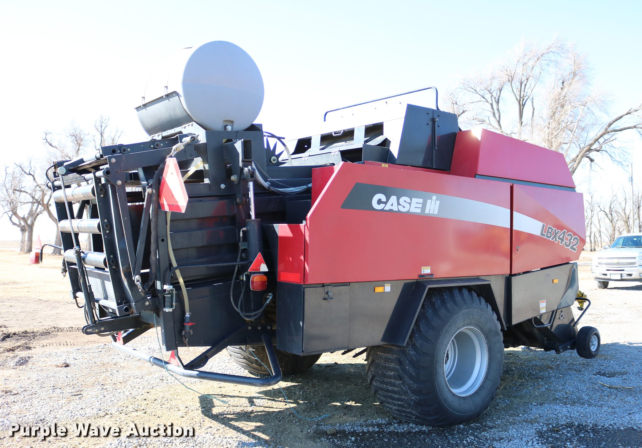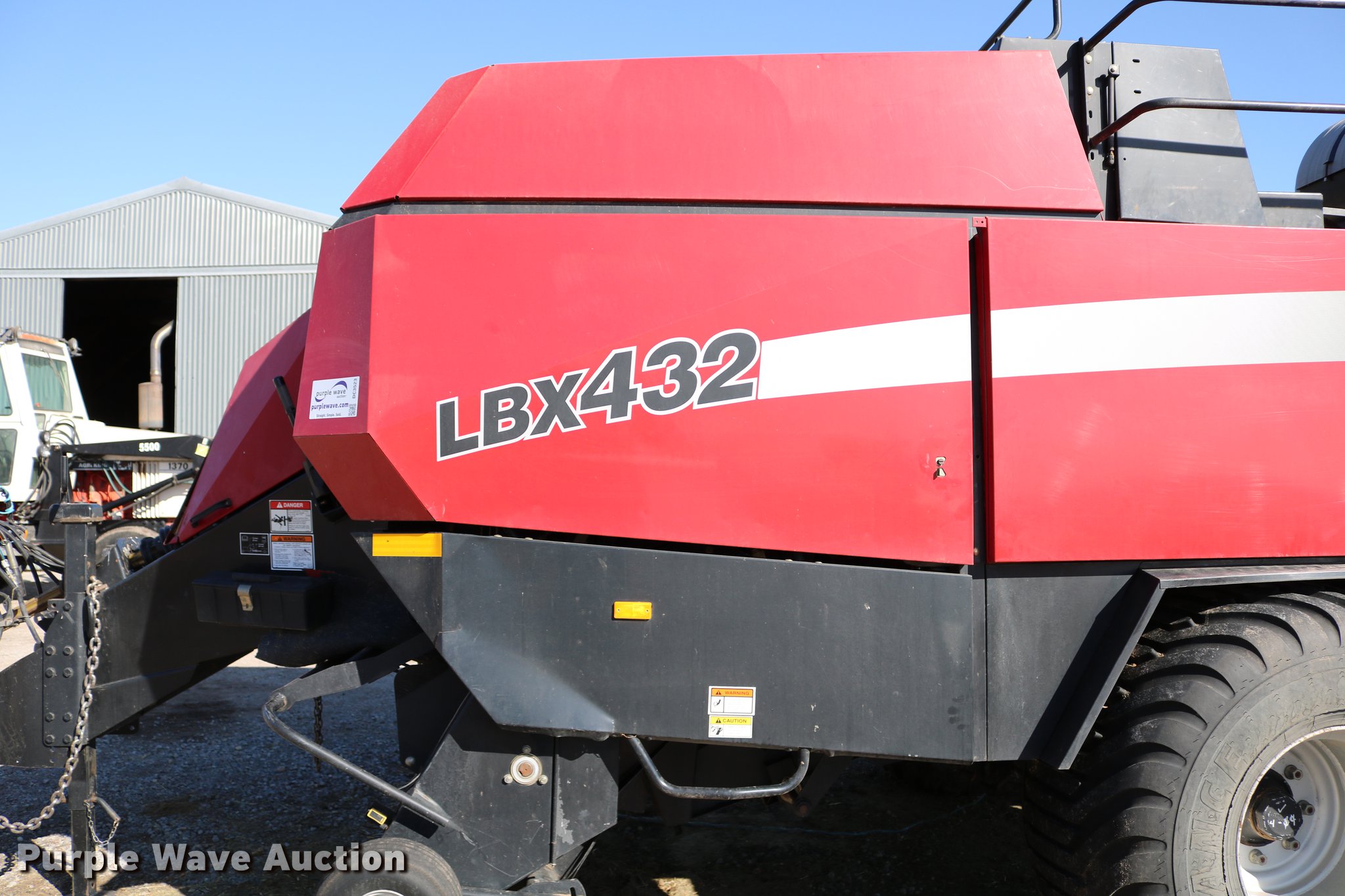 Purple Wave is selling a used Square Baler in Kansas. This item is a 2004 Case IH LBX432 large square baler with the following: 18,923 bale count, 3' x 4' bale capacity, 81"W pickup, 15x6.00-6 gauge wheels, (6) double knot knotters, Twine tie, Bale roller chute, Preservative applicator system, 120 gallon tank, 1000 PTO, 700/50-22.5 tires, Serial 354352018