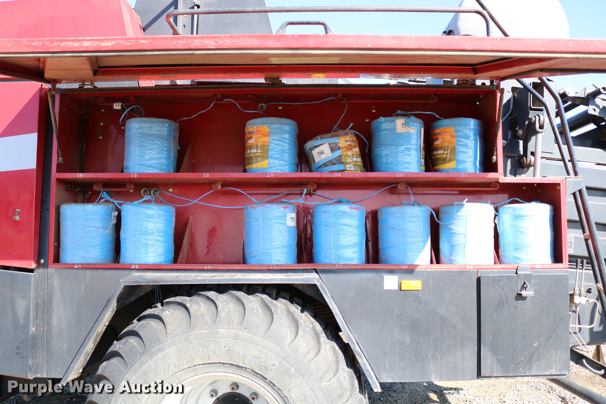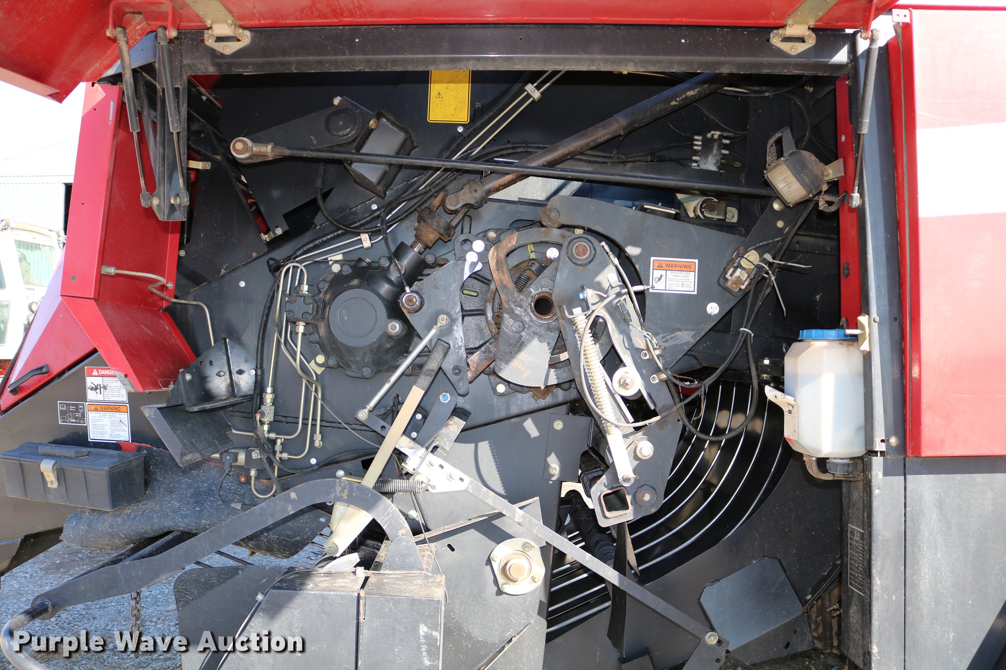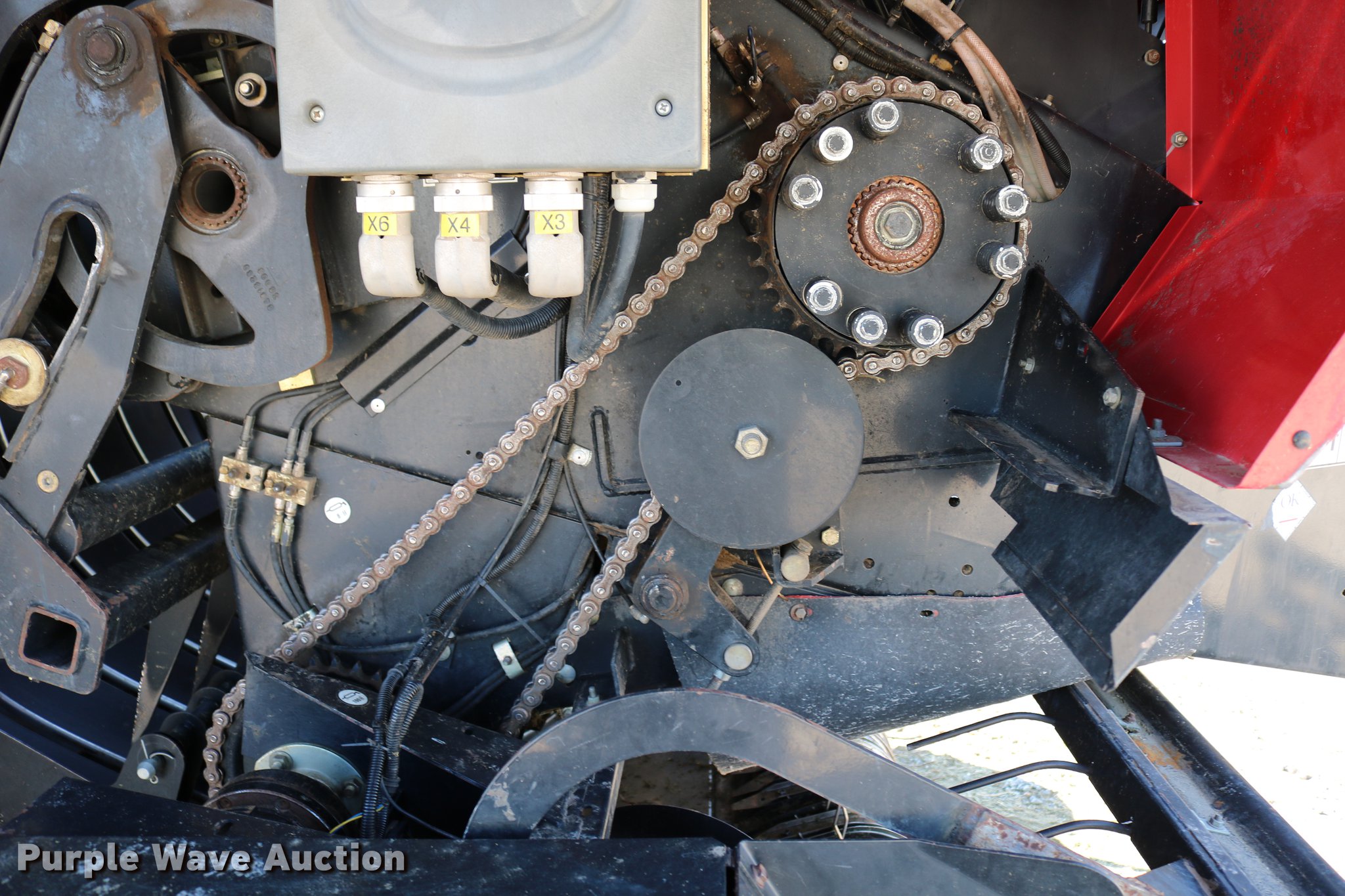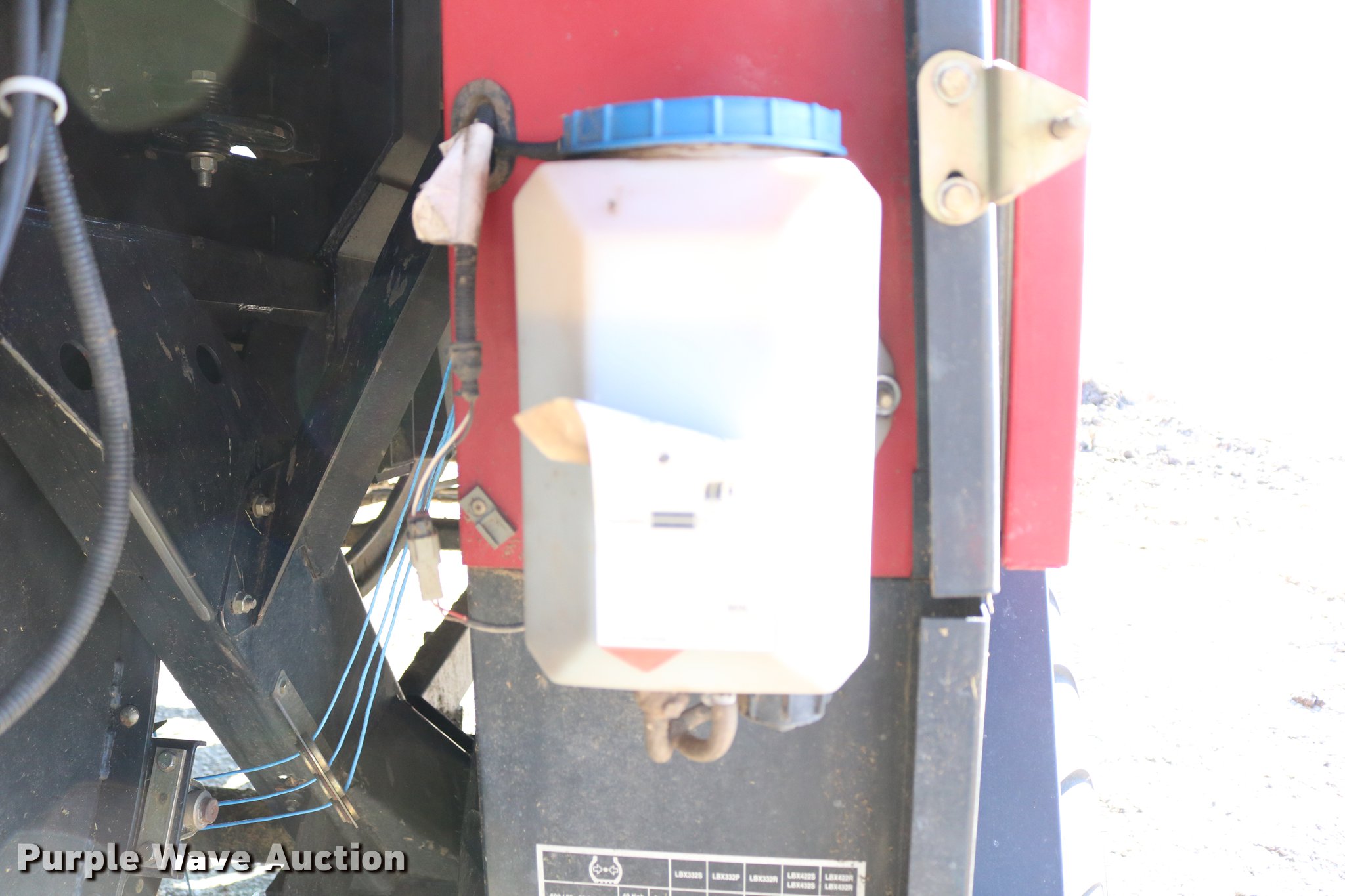 Purple Wave is selling a used Square Baler in Kansas. This item is a 2004 Case IH LBX432 large square baler with the following: 18,923 bale count, 3' x 4' bale capacity, 81"W pickup, 15x6.00-6 gauge wheels, (6) double knot knotters, Twine tie, Bale roller chute, Preservative applicator system, 120 gallon tank, 1000 PTO, 700/50-22.5 tires, Serial 354352018