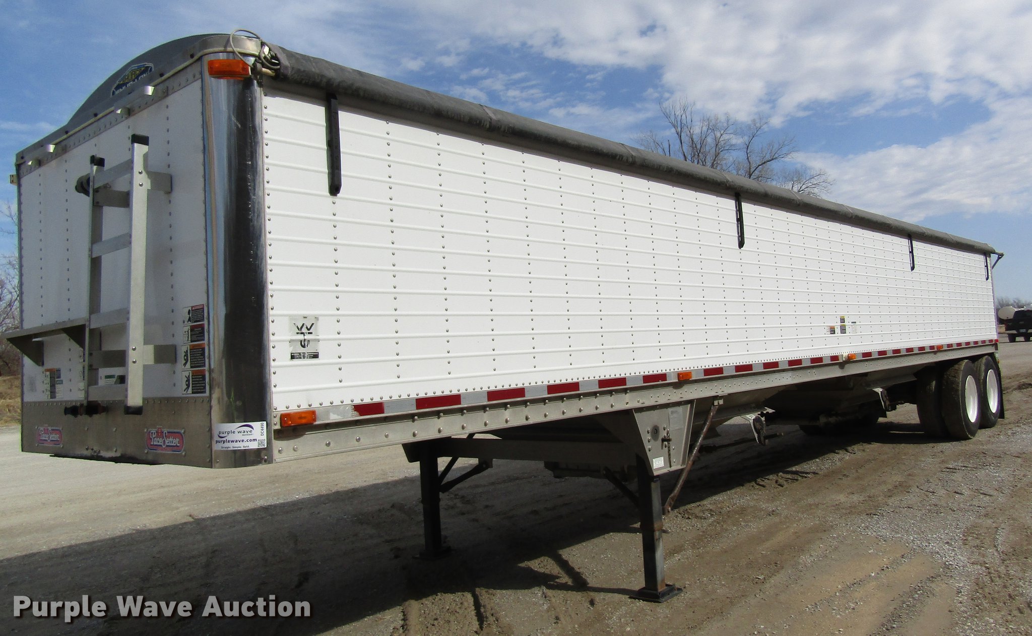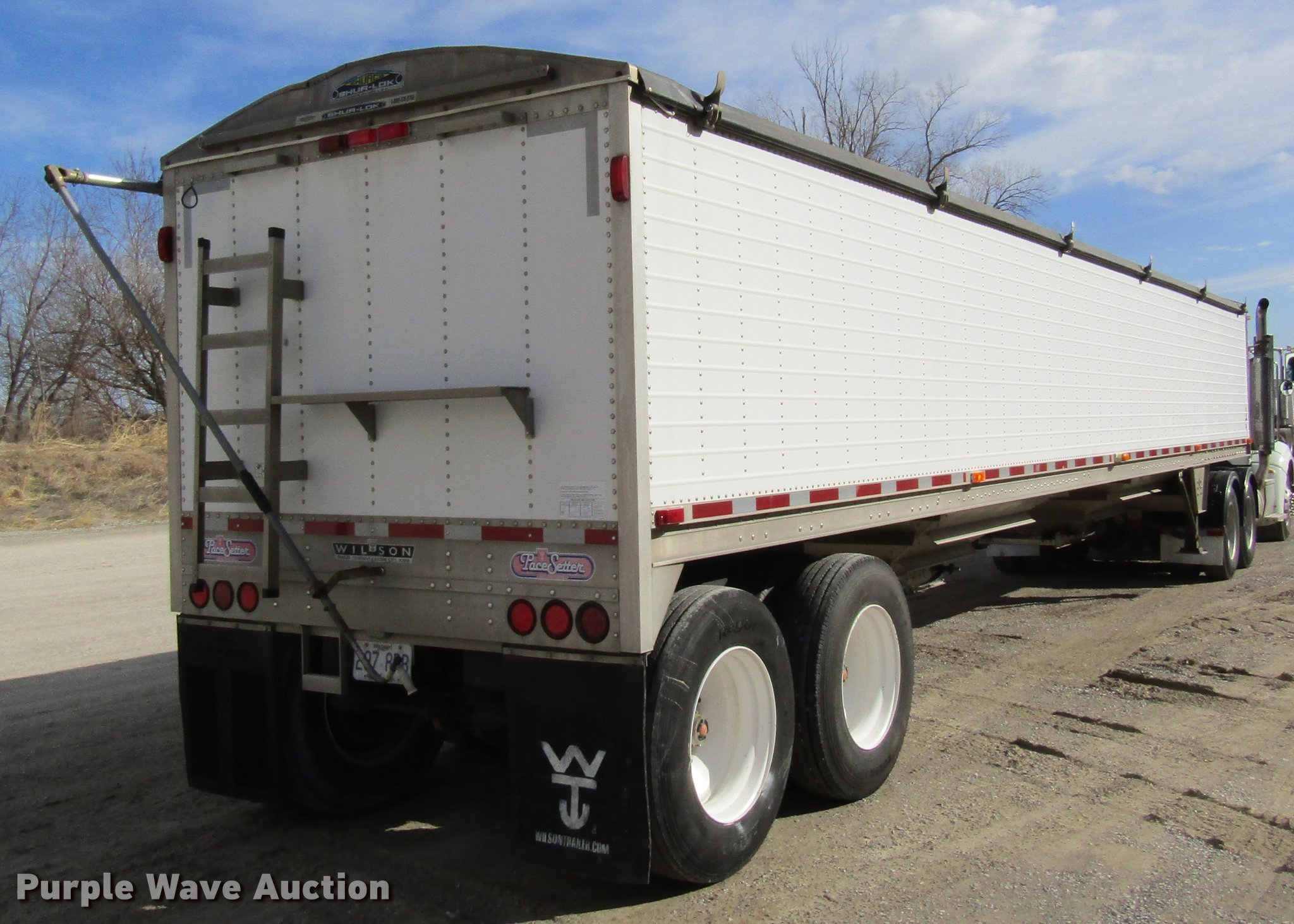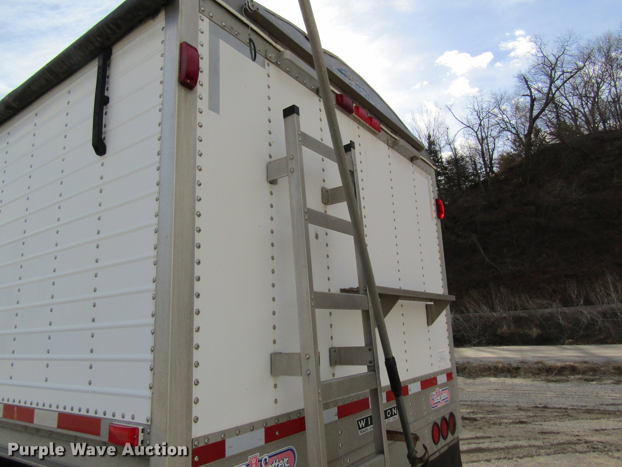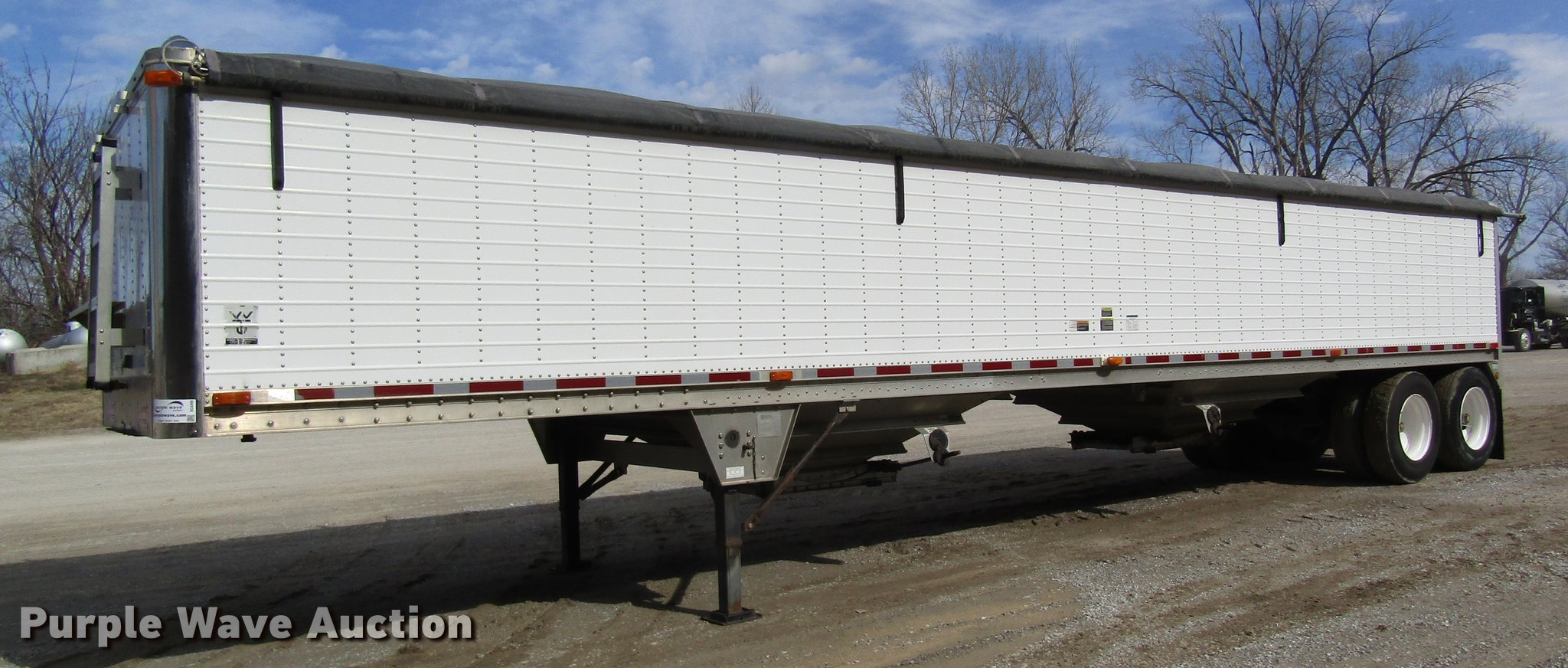 Purple Wave is selling a used Grain or Commodity Trailer in Missouri. This item is a 2005 Wilson DWH-500 double hopper bottom grain trailer with the following: 41'L x 8'W, 114" side height, 1,000 bush capacity, Manual trap gates, Front and rear ladders, Surco Shur-Lok roll tarp, Steel construction, Fifth wheel plate, Dual leg two speed landing gear, Air suspension, Air brakes, 11R24.5 tires, GVWR 65,000 lbs, Unit# 88