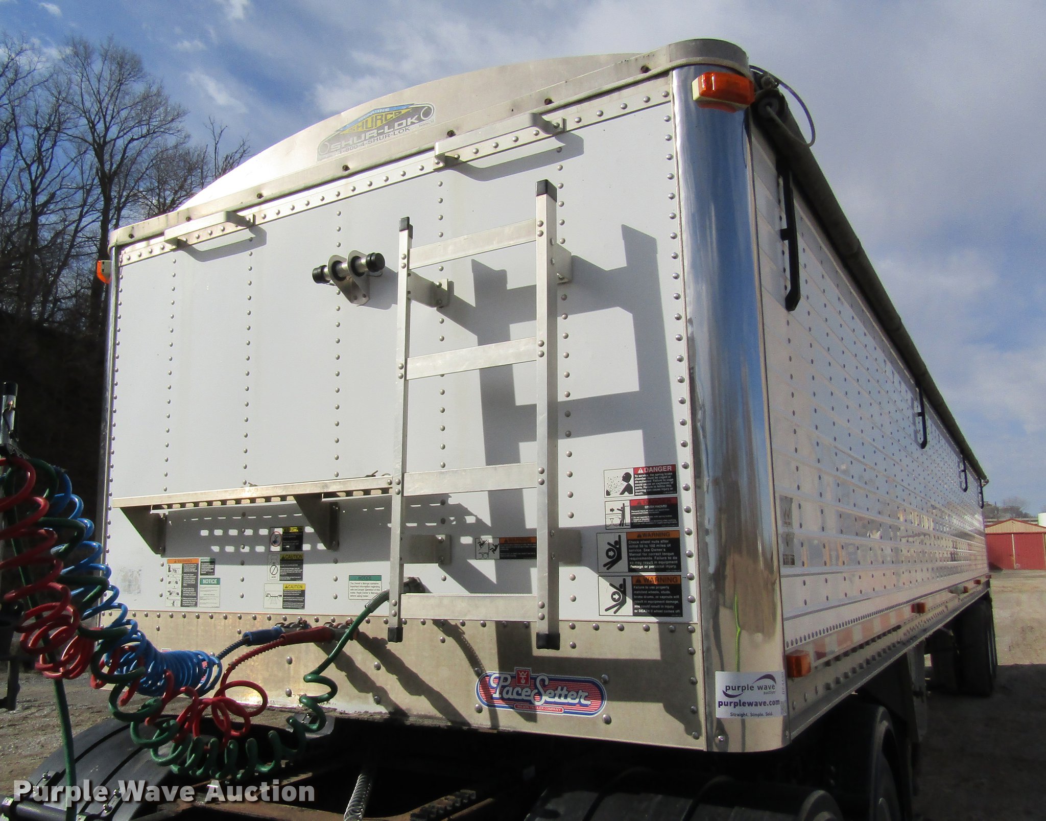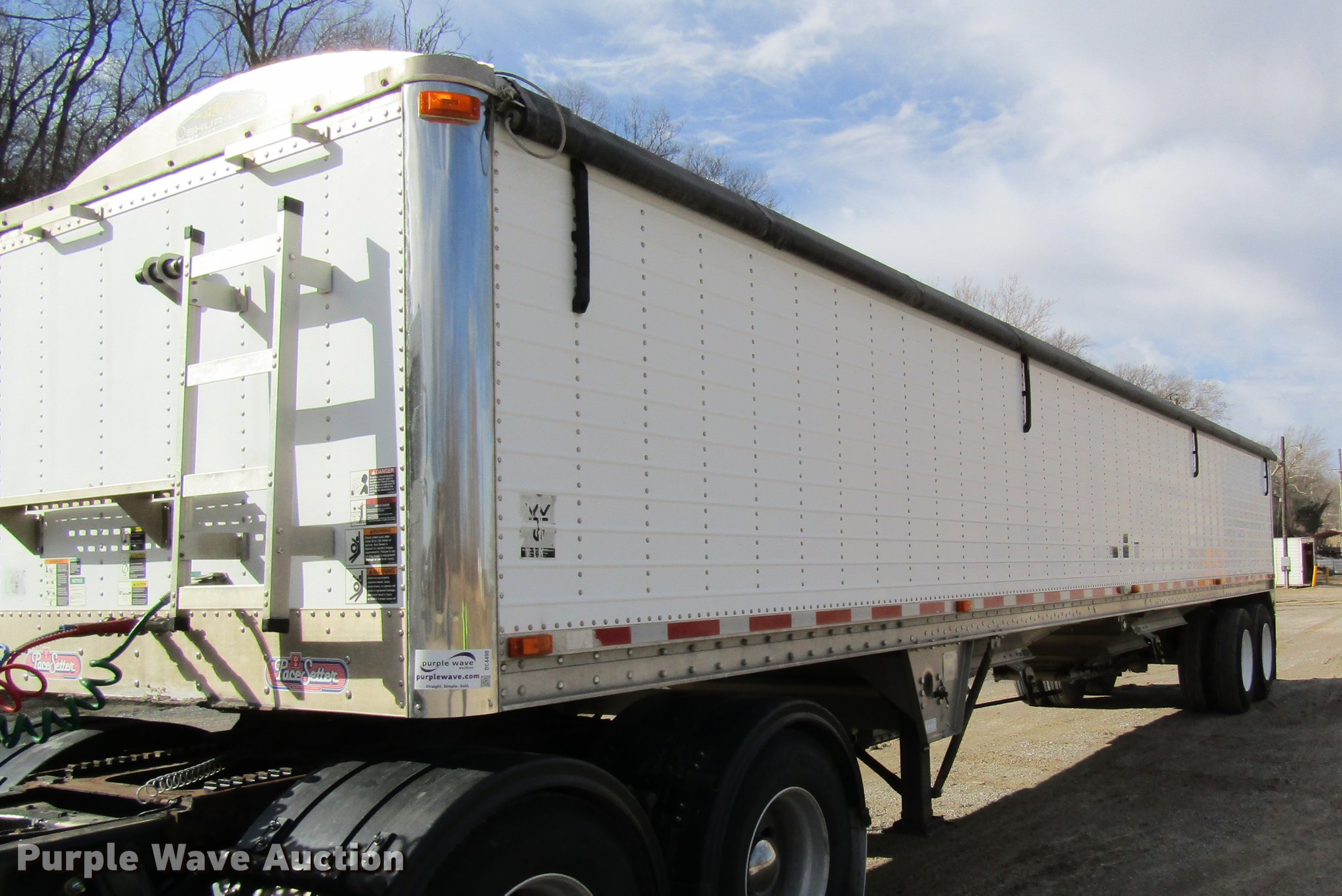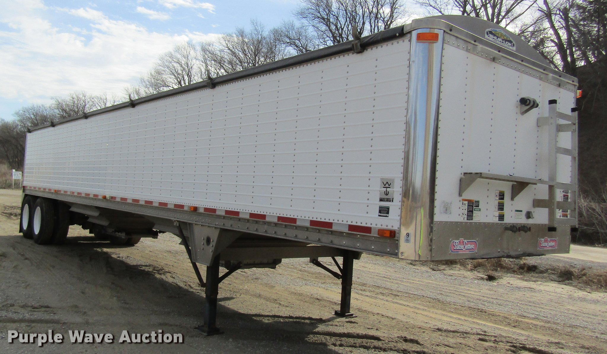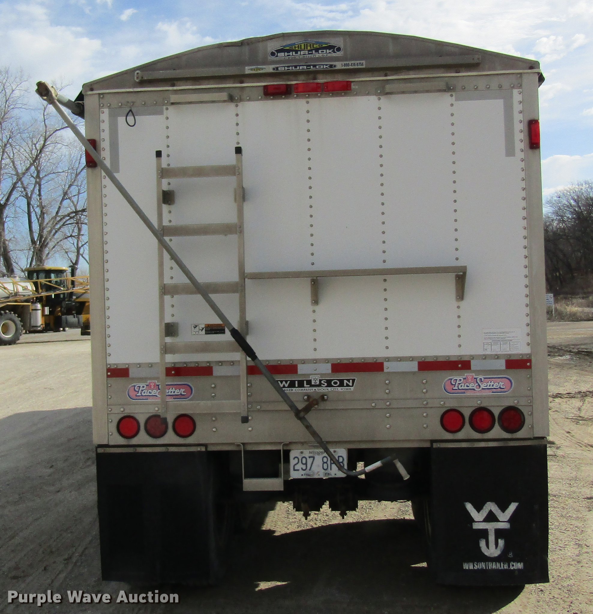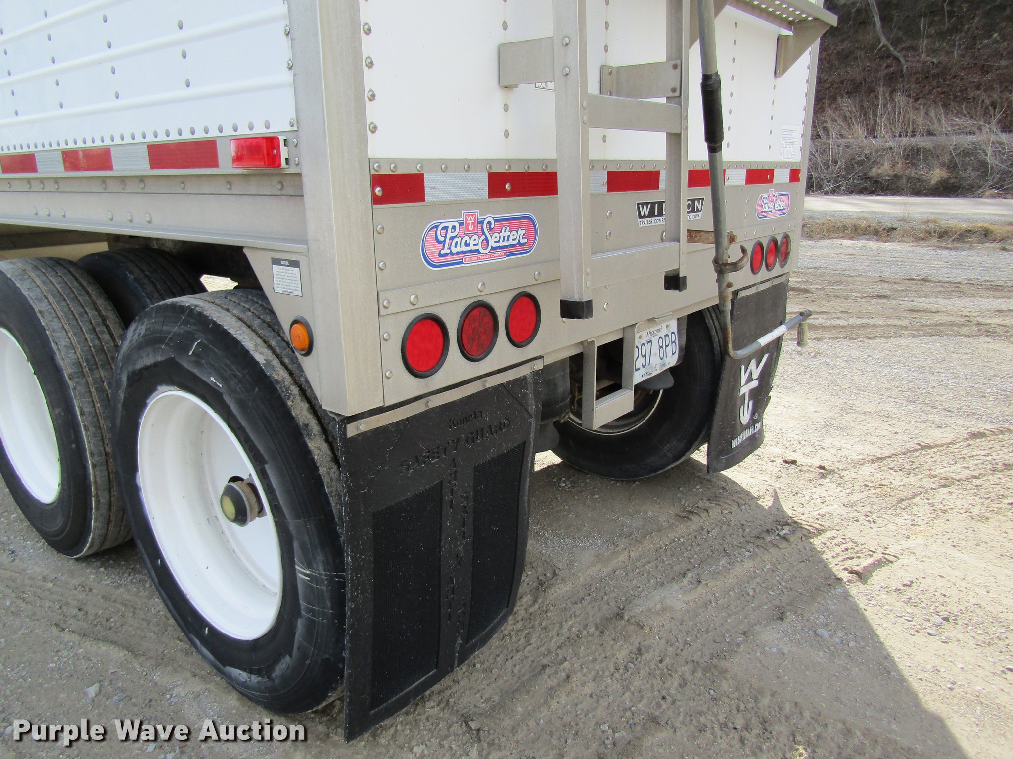 Purple Wave is selling a used Grain or Commodity Trailer in Missouri. This item is a 2005 Wilson DWH-500 double hopper bottom grain trailer with the following: 41'L x 8'W, 114" side height, 1,000 bush capacity, Manual trap gates, Front and rear ladders, Surco Shur-Lok roll tarp, Steel construction, Fifth wheel plate, Dual leg two speed landing gear, Air suspension, Air brakes, 11R24.5 tires, GVWR 65,000 lbs, Unit# 88
