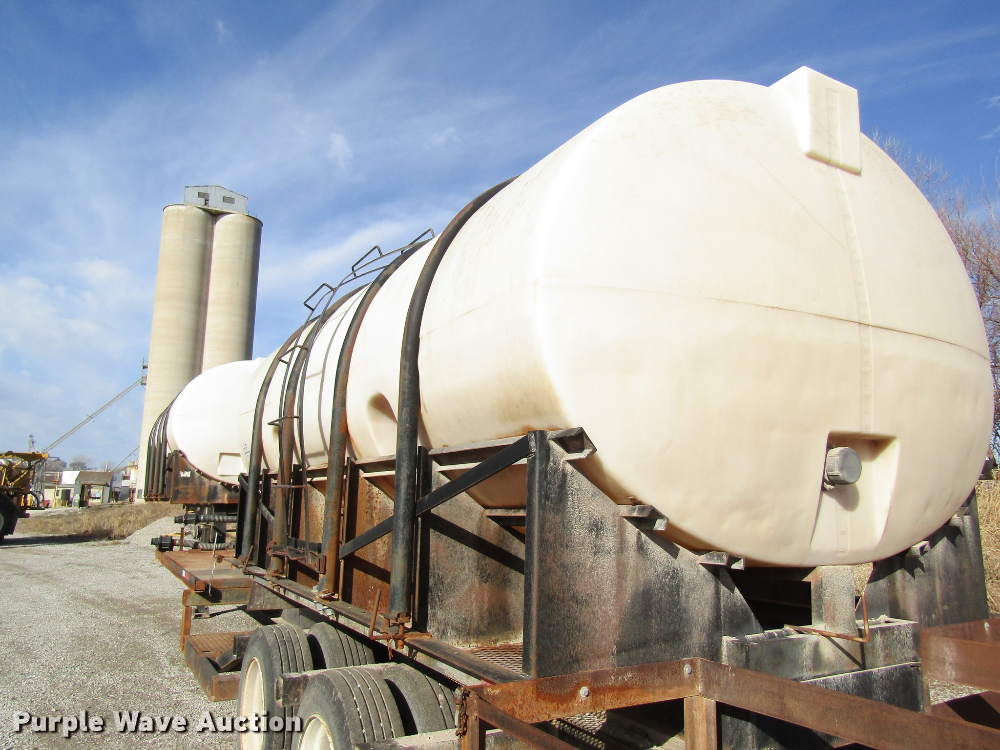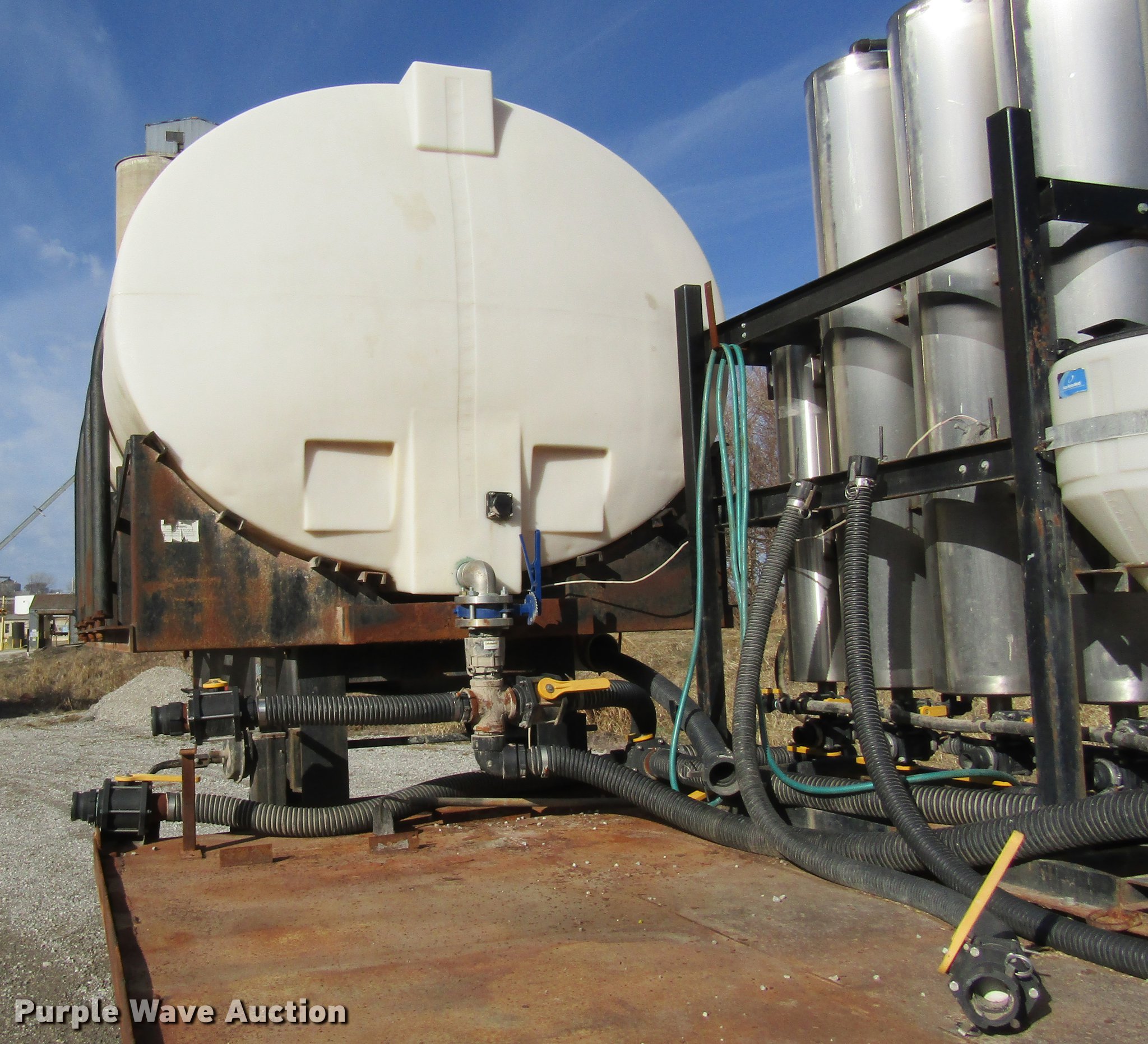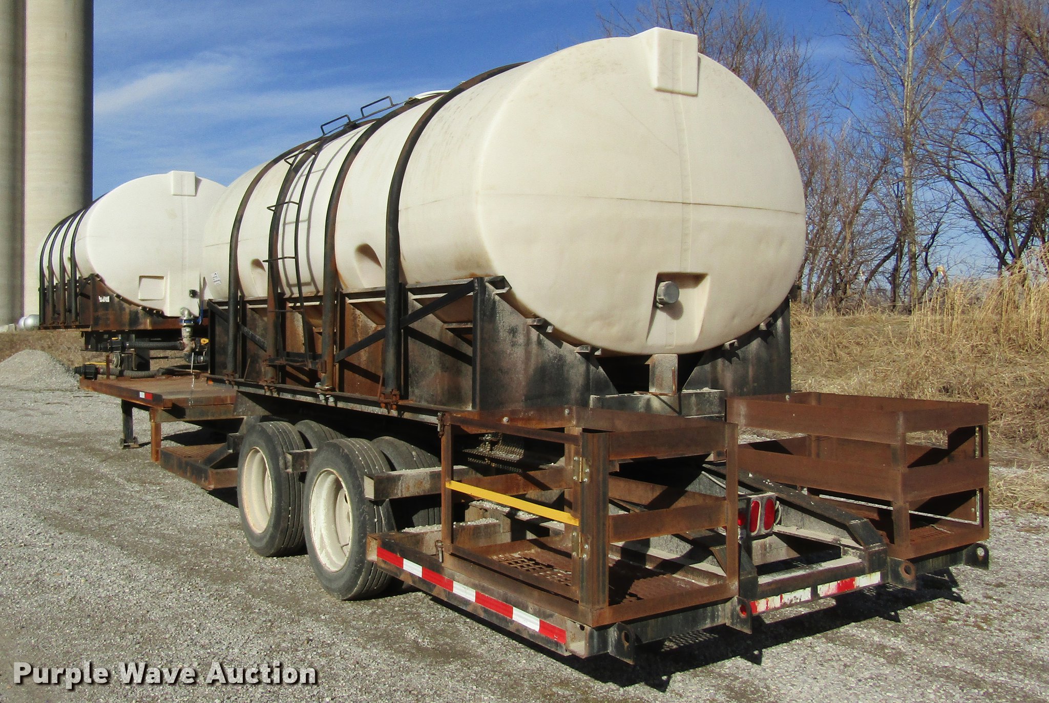 Purple Wave is selling a used Tank Trailer in Missouri. This item is a 2000 Kent's Pit Stop nurse tank tender trailer with the following: 45'L x 102"W, (2) 3,200 gallon poly tanks, Honda GX390 gas engine, Pit Stop chemical station, Steel construction, Fifth wheel plate, Dual leg landing gear, Spring suspension, Air brakes, Tandem axle, Steel wheels, 255/70R22.5 tires, GVWR 60,000 lbs, Unit# 82