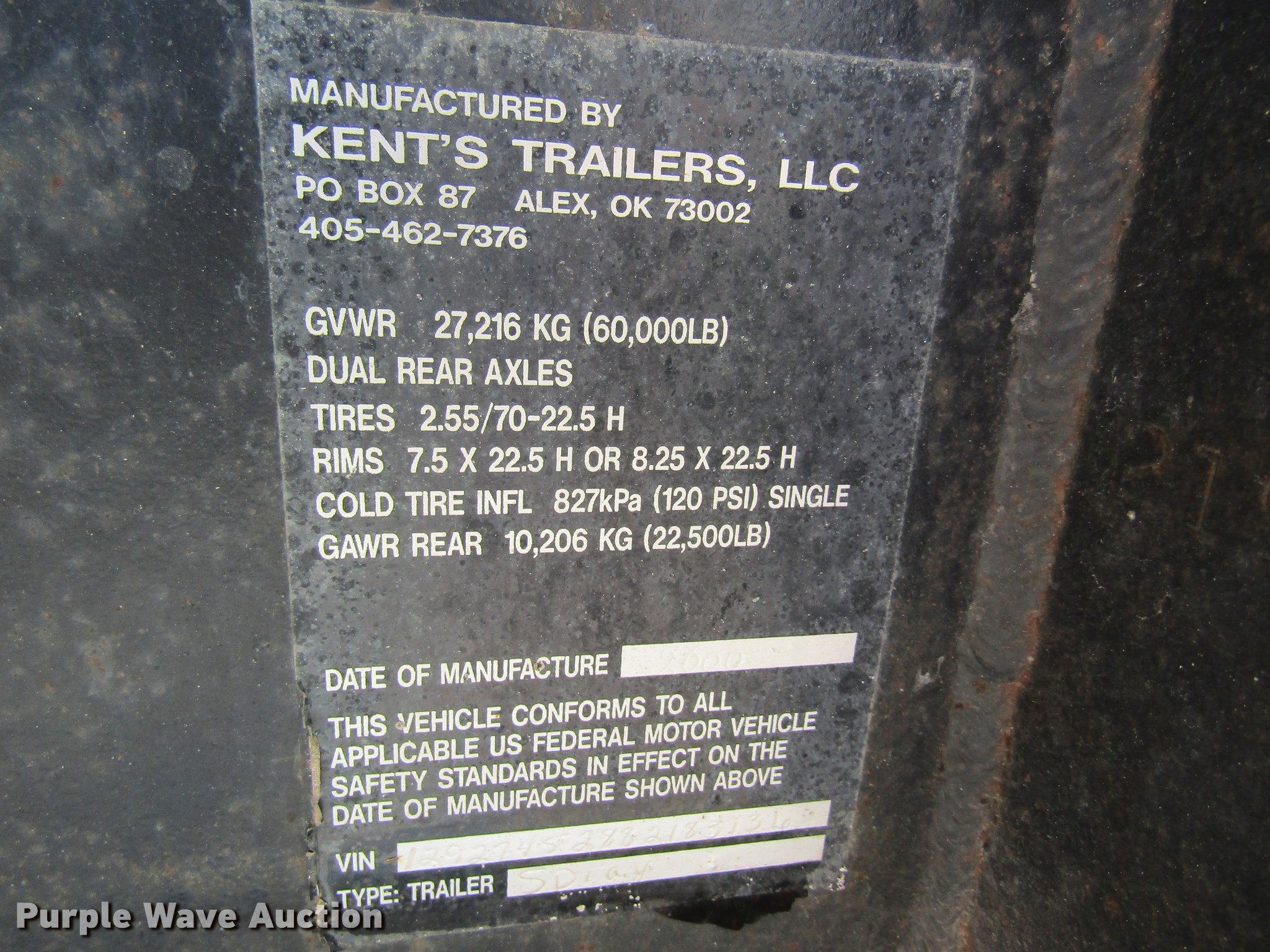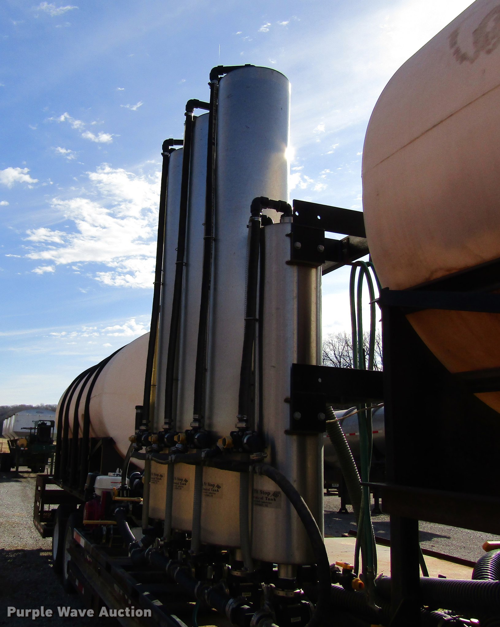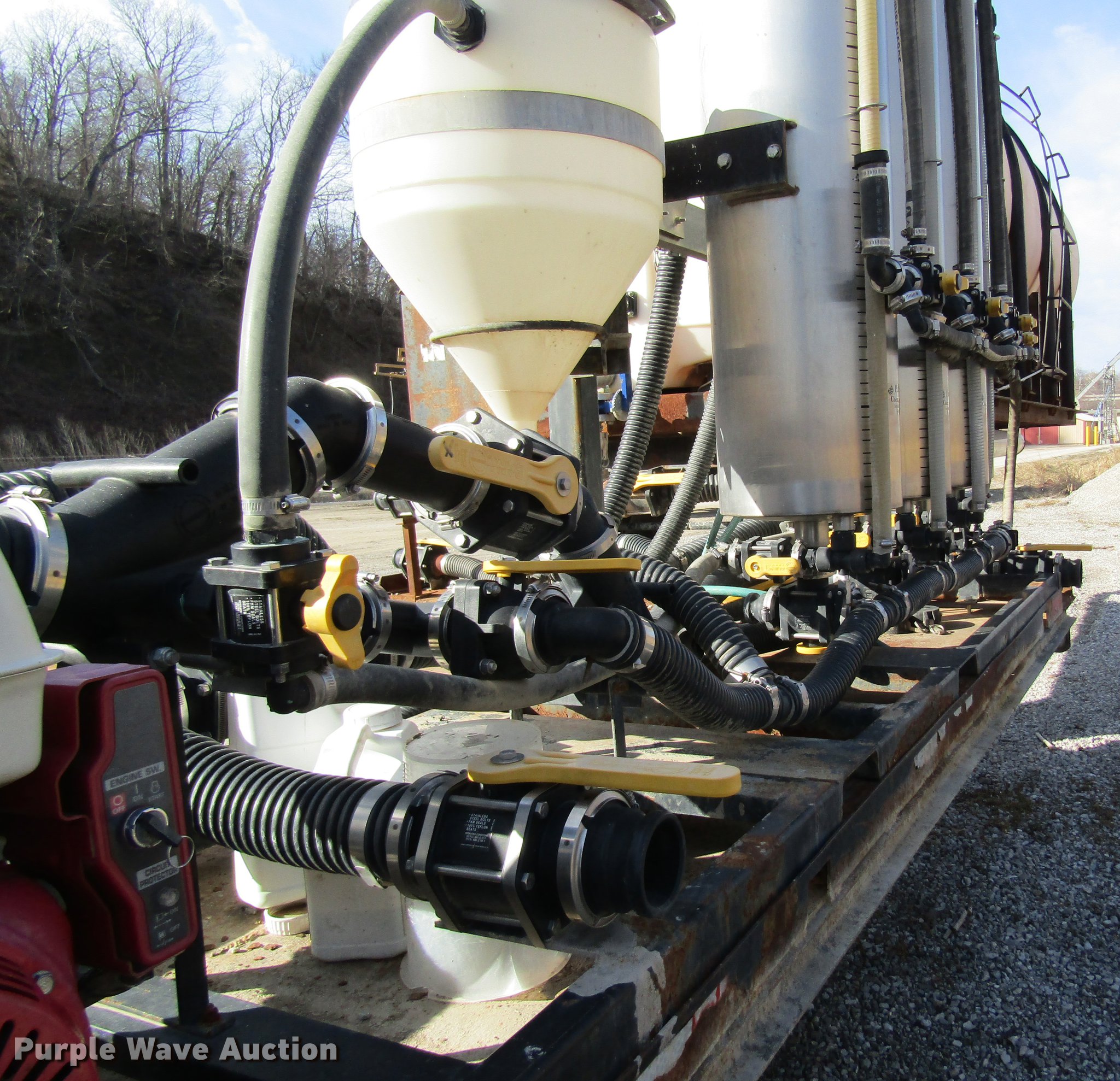 Purple Wave is selling a used Tank Trailer in Missouri. This item is a 2000 Kent's Pit Stop nurse tank tender trailer with the following: 45'L x 102"W, (2) 3,200 gallon poly tanks, Honda GX390 gas engine, Pit Stop chemical station, Steel construction, Fifth wheel plate, Dual leg landing gear, Spring suspension, Air brakes, Tandem axle, Steel wheels, 255/70R22.5 tires, GVWR 60,000 lbs, Unit# 82