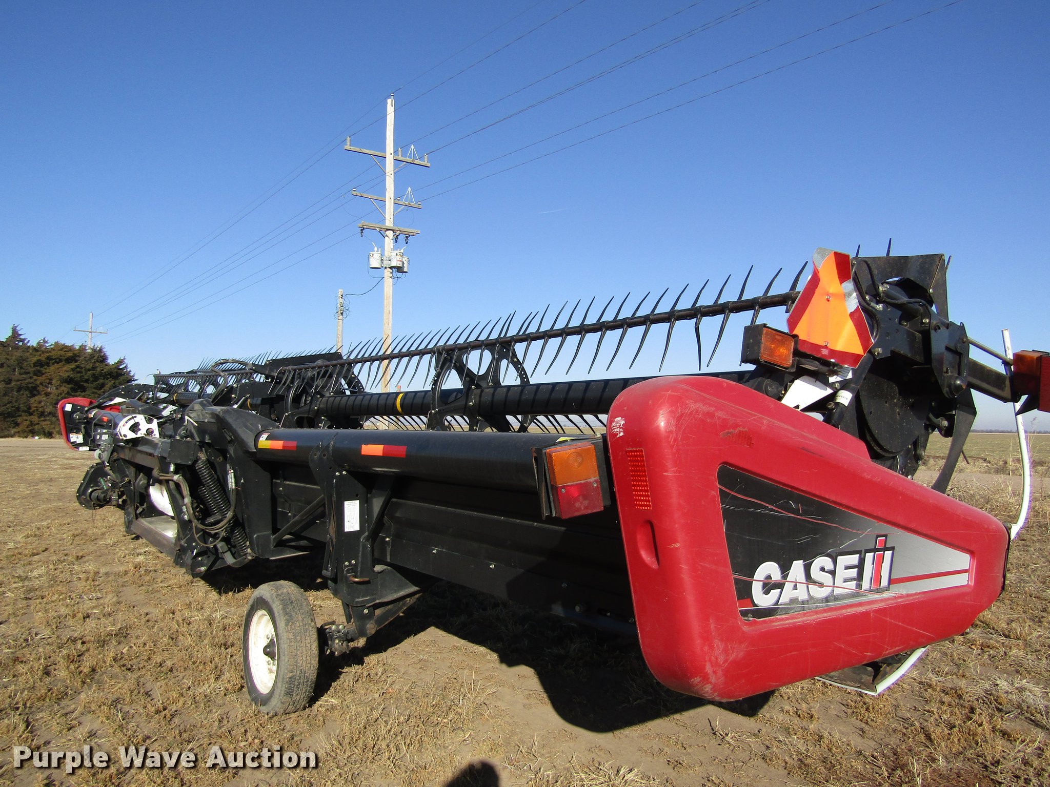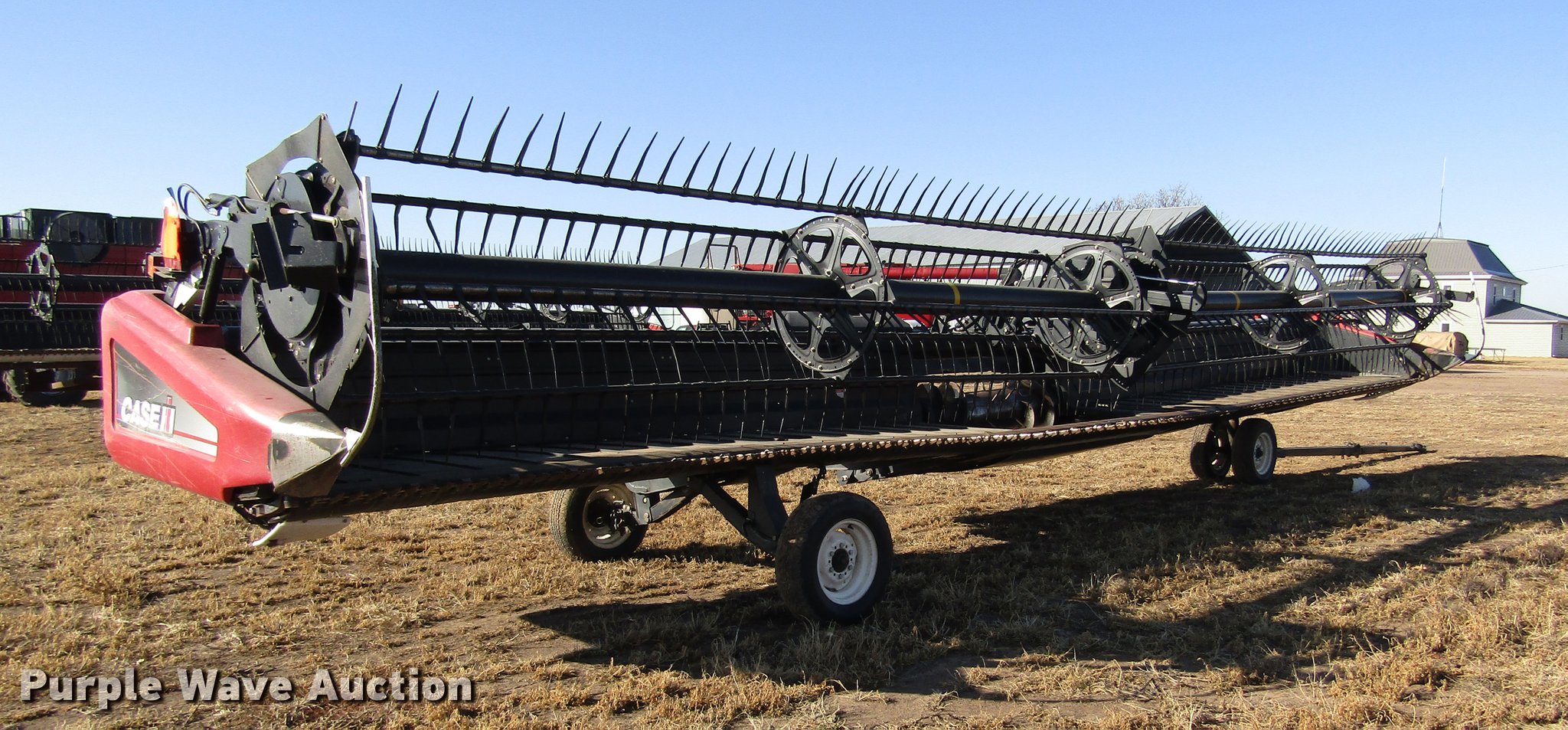 Purple Wave is selling a used Platform or Stripper Head in Kansas. This item is a 2009 Case IH 2162 flex draper head with the following: 40'W, Finger reel, Hydraulic fore/aft, Hydraulic reel height control, Poly skid plates, Single point header coupler, Single driveline, Transport package, 205/75R15 tires, Serial Y9ZN22228