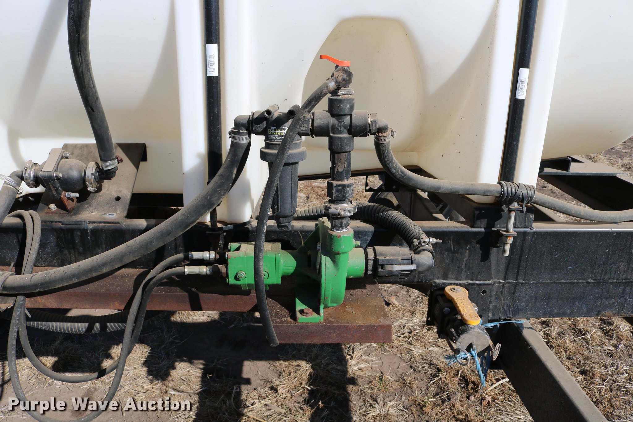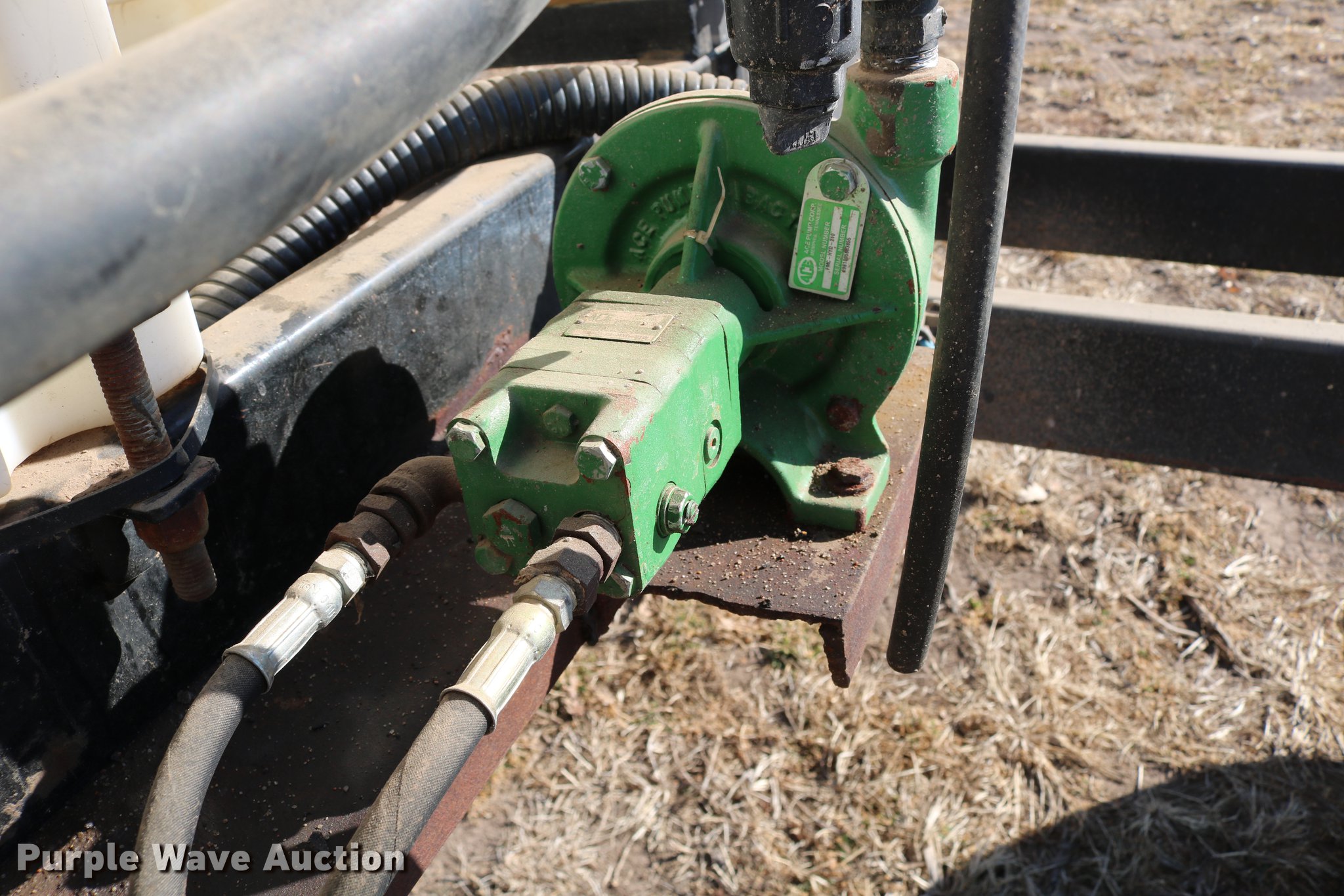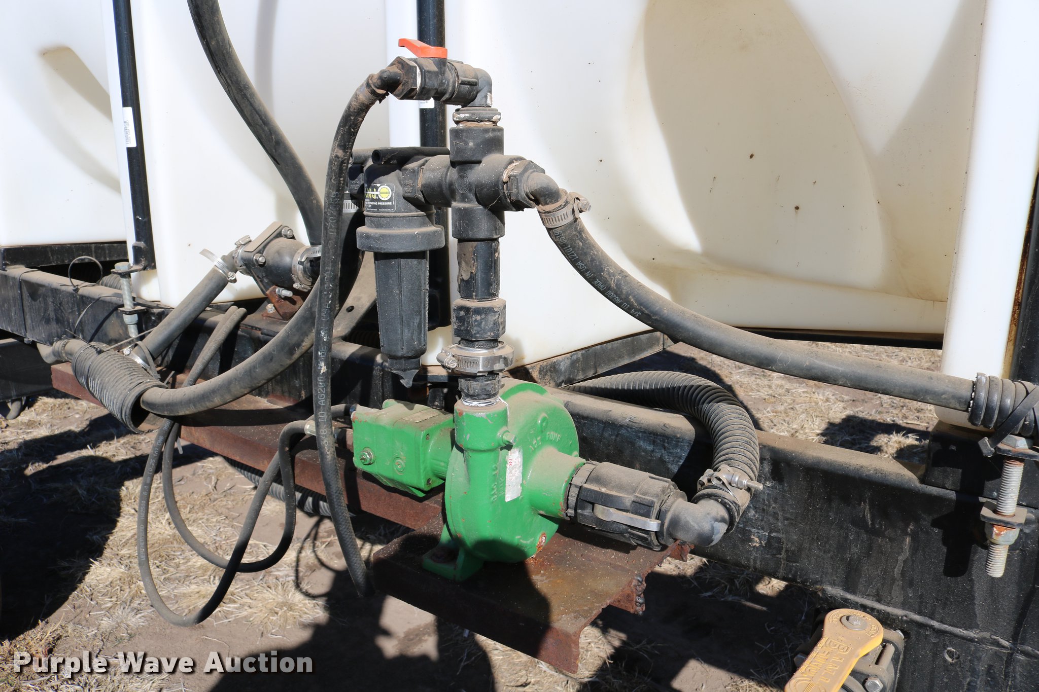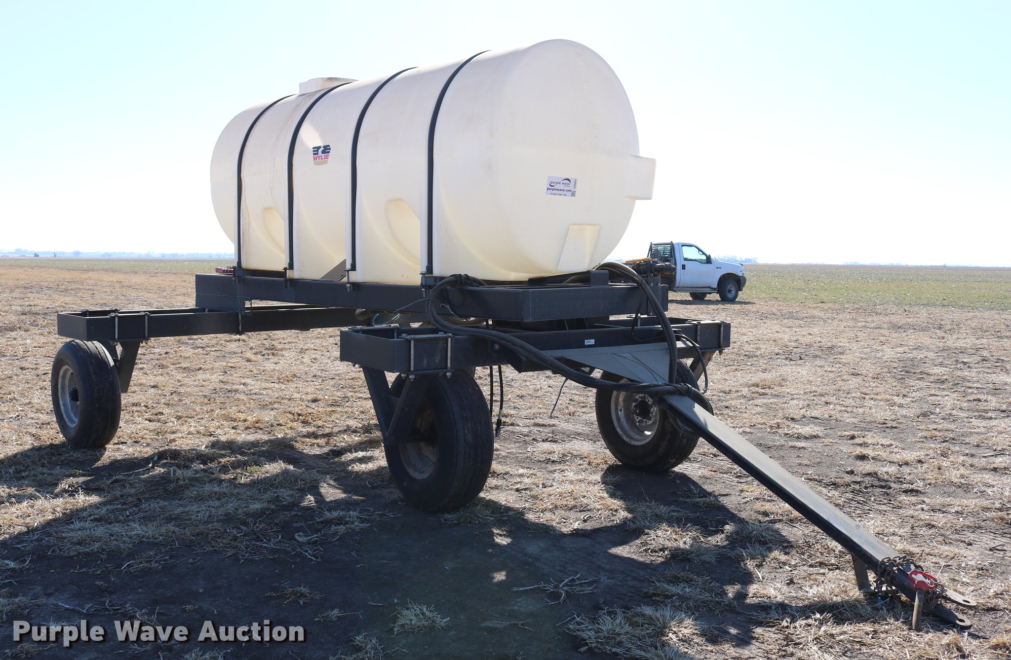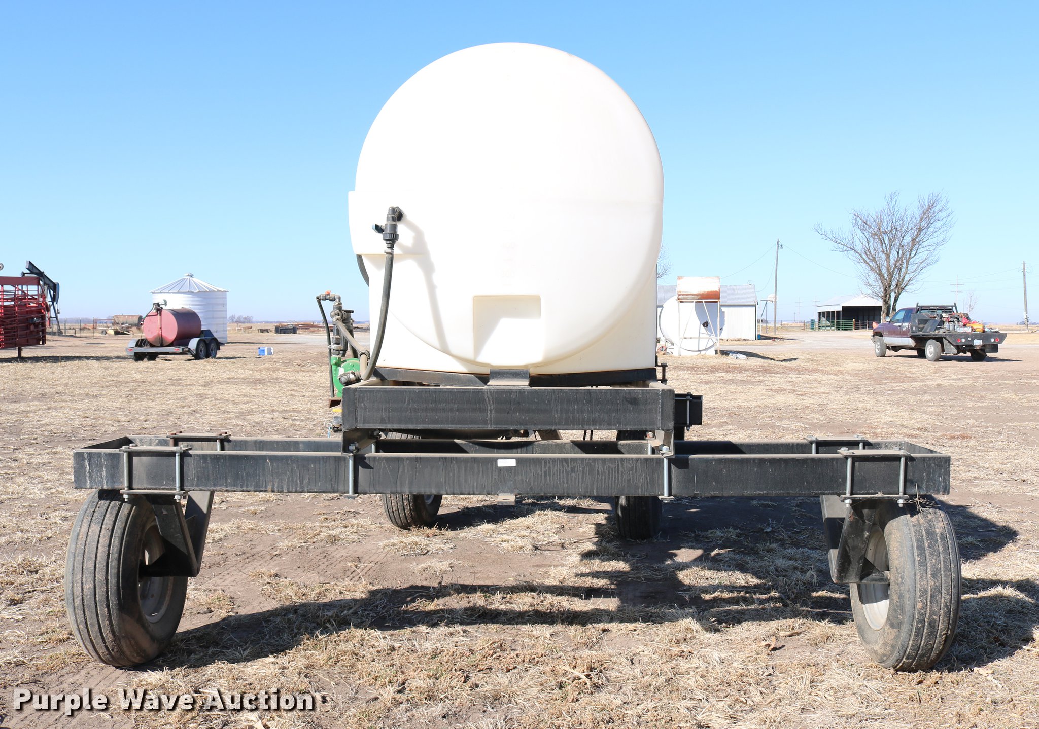 Wylie nurse tank trailer. 223.5"L overall, 134"L x 134"W, 1,000 gallon capacity, Hydraulic driven pump, Clevis hitch, (4) 11L-15SL tires, Tank lid missing, Serial 035377. Sieker Ag, LLC Redirection Auction. Open inspection March 21 and 27. US 56 and 2nd Rd. Ellinwood, KS 67526