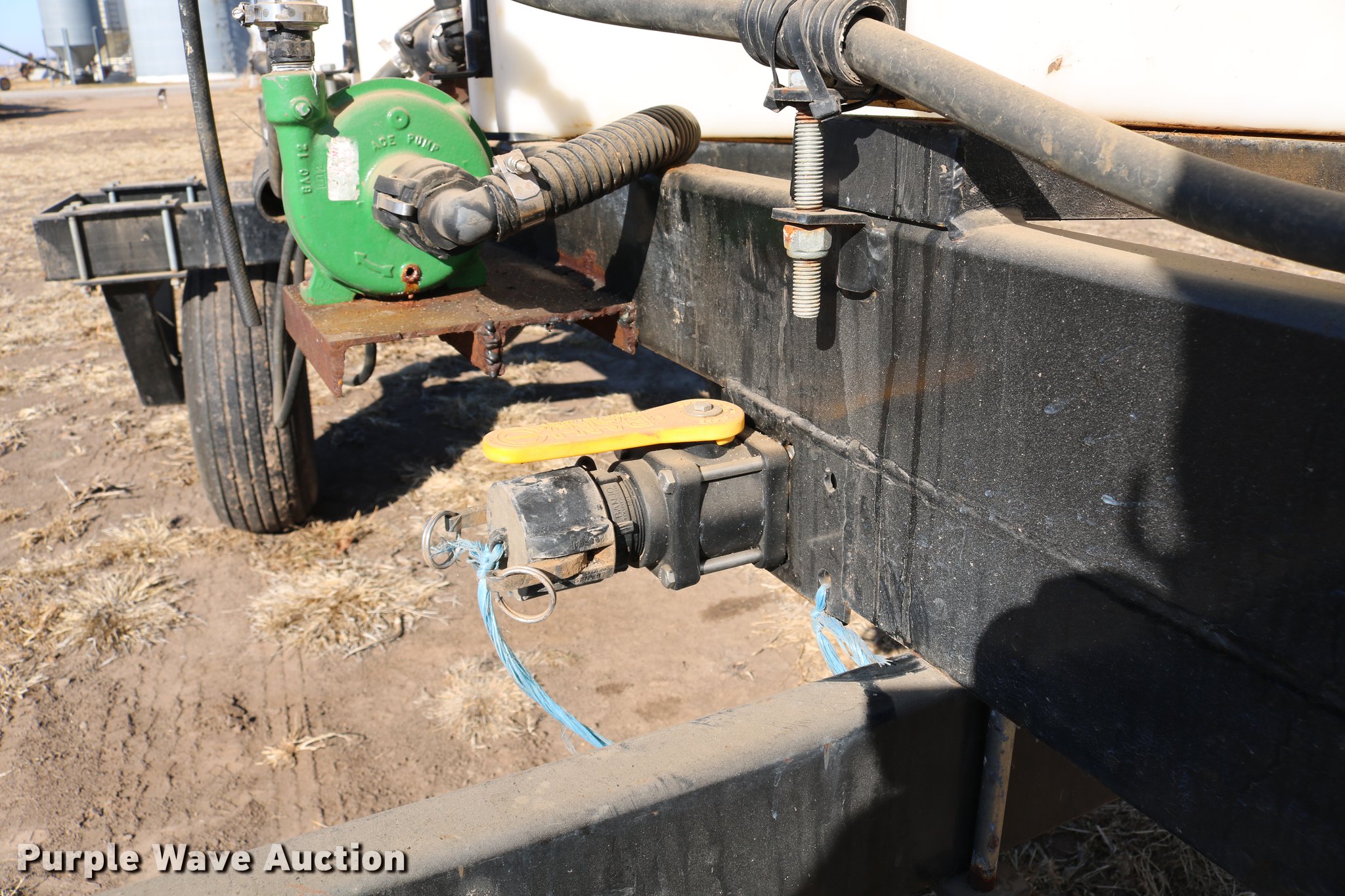 Purple Wave is selling a used Tank Trailer in Kansas. This item is a Wylie nurse tank trailer with the following: 223.5"L overall, 134"L x 134"W, 1,000 gallon capacity, Hydraulic driven pump, Clevis hitch, (4) 11L-15SL tires, Tank lid missing, Serial 035377