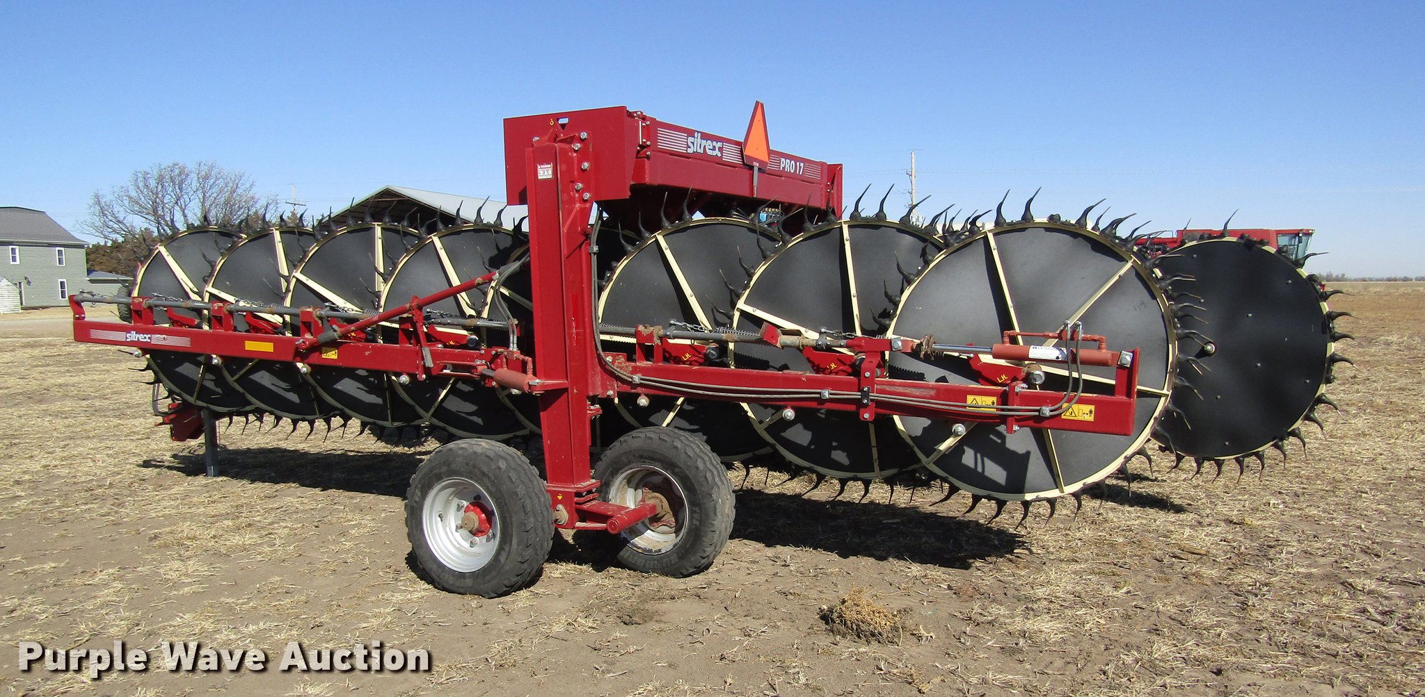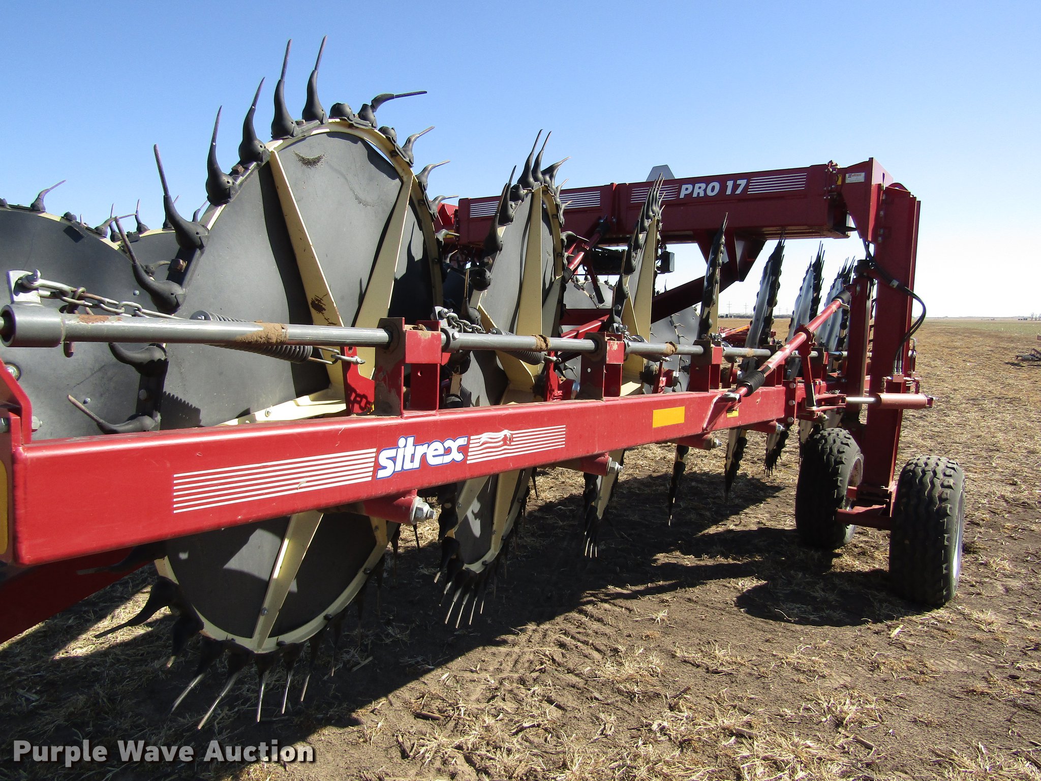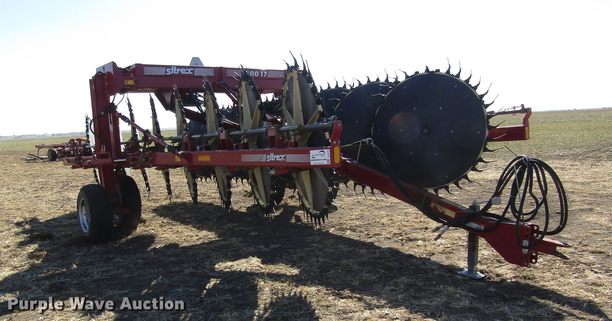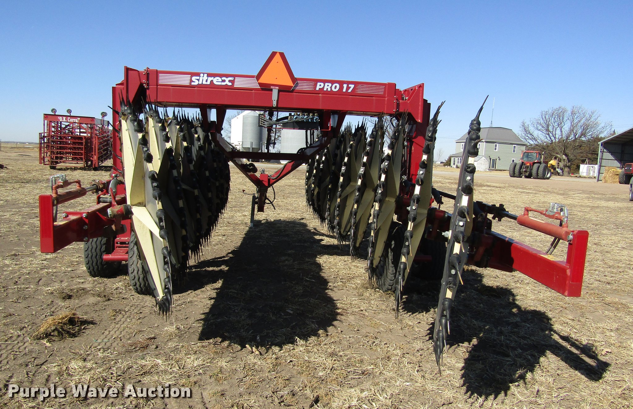 Purple Wave is selling a used Hay Rake in Kansas. This item is a Sitrex Pro 17 hay rake with the following: (18) windshield rake wheels, Rubber mounted steel tips, Independent side operation, Sitrex electric/hydraulic control panel, Pin hitch, Jack stand, Walking beam axles, 10.0-75-15.3 tires, Serial 232820