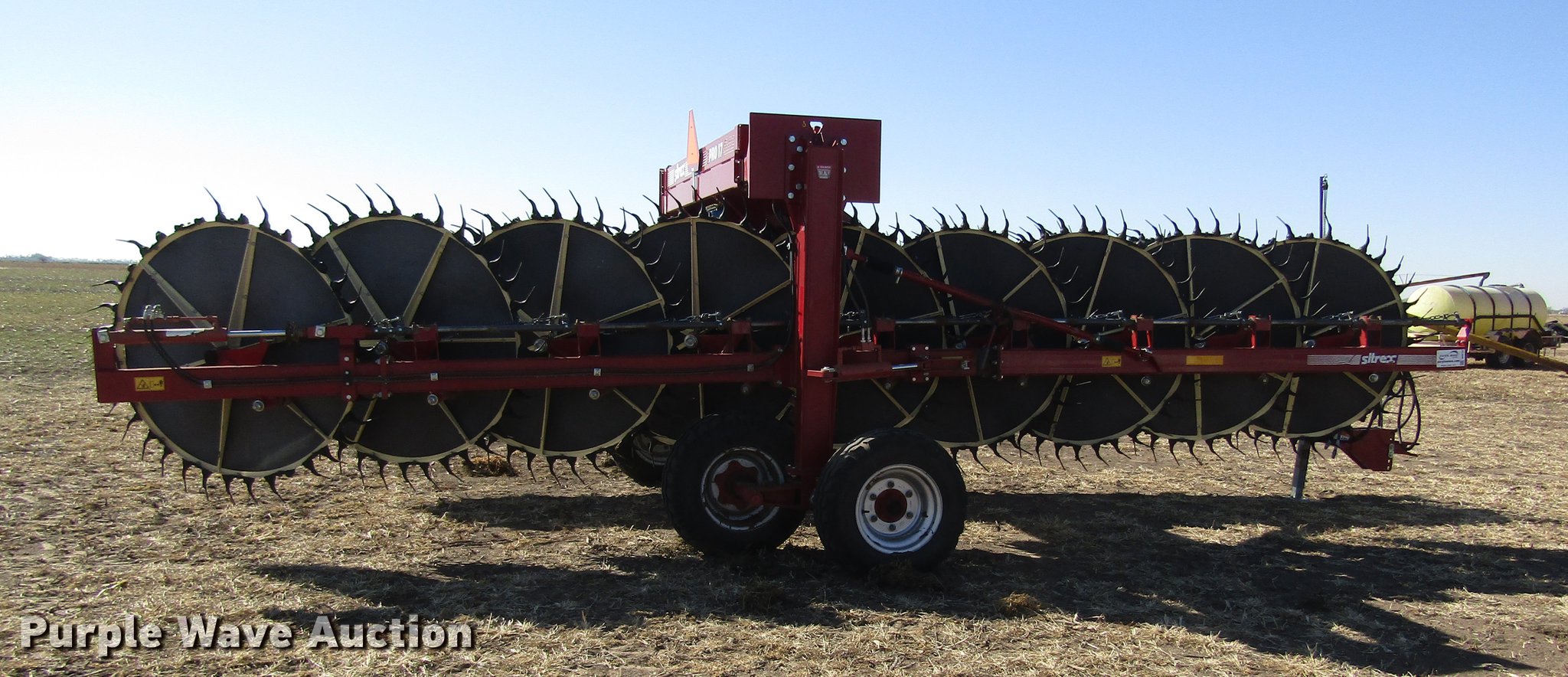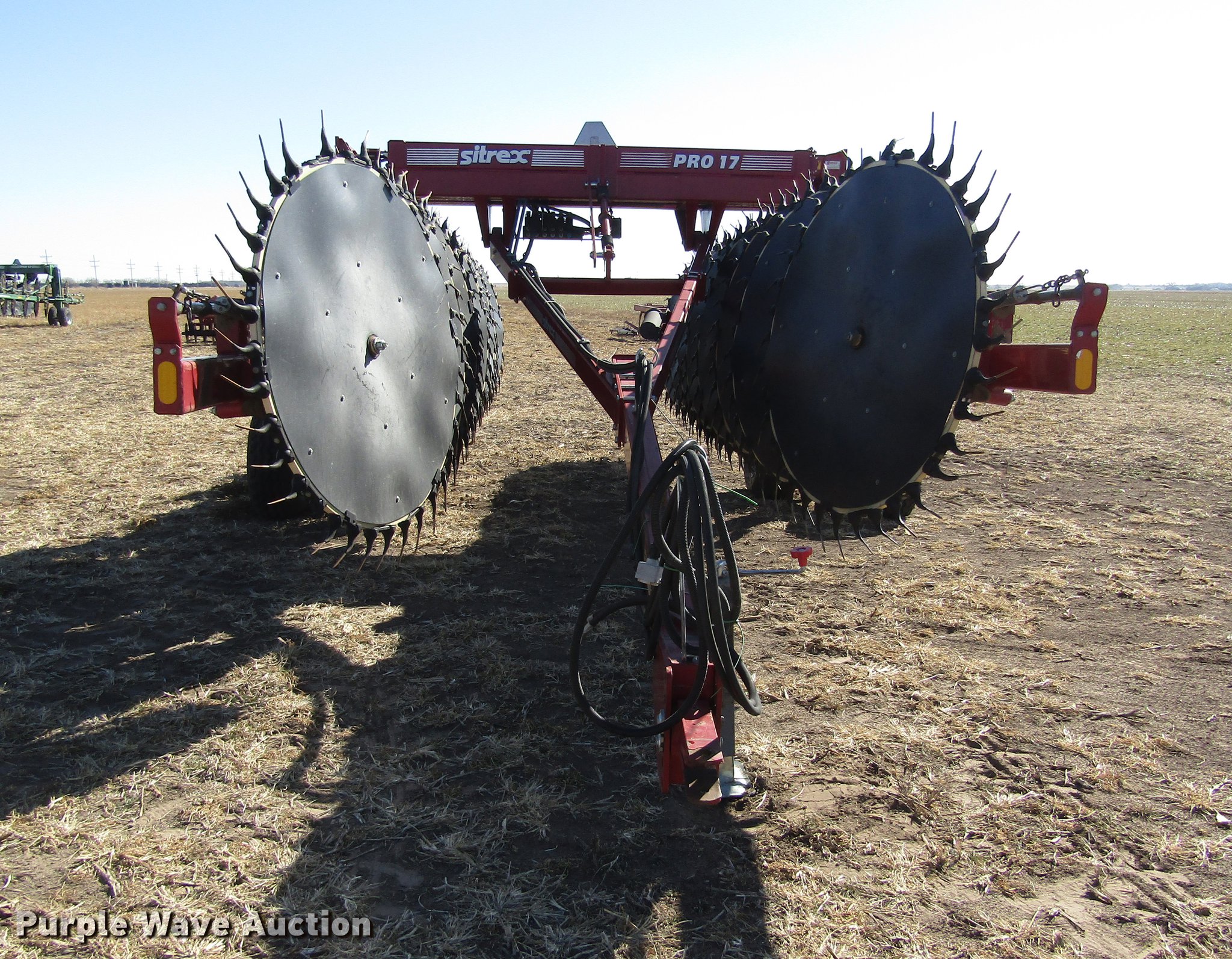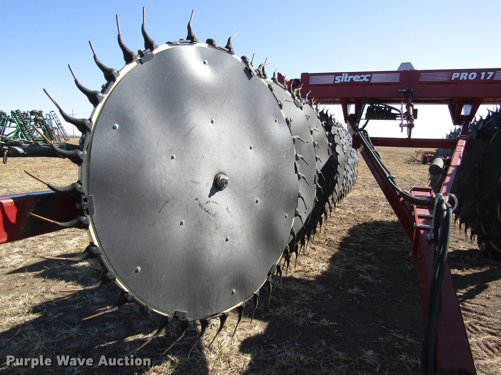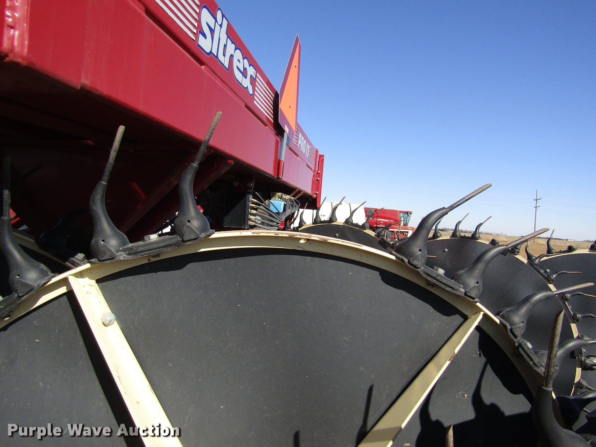 Purple Wave is selling a used Hay Rake in Kansas. This item is a Sitrex Pro 17 hay rake with the following: (18) windshield rake wheels, Rubber mounted steel tips, Independent side operation, Sitrex electric/hydraulic control panel, Pin hitch, Jack stand, Walking beam axles, 10.0-75-15.3 tires, Serial 232820