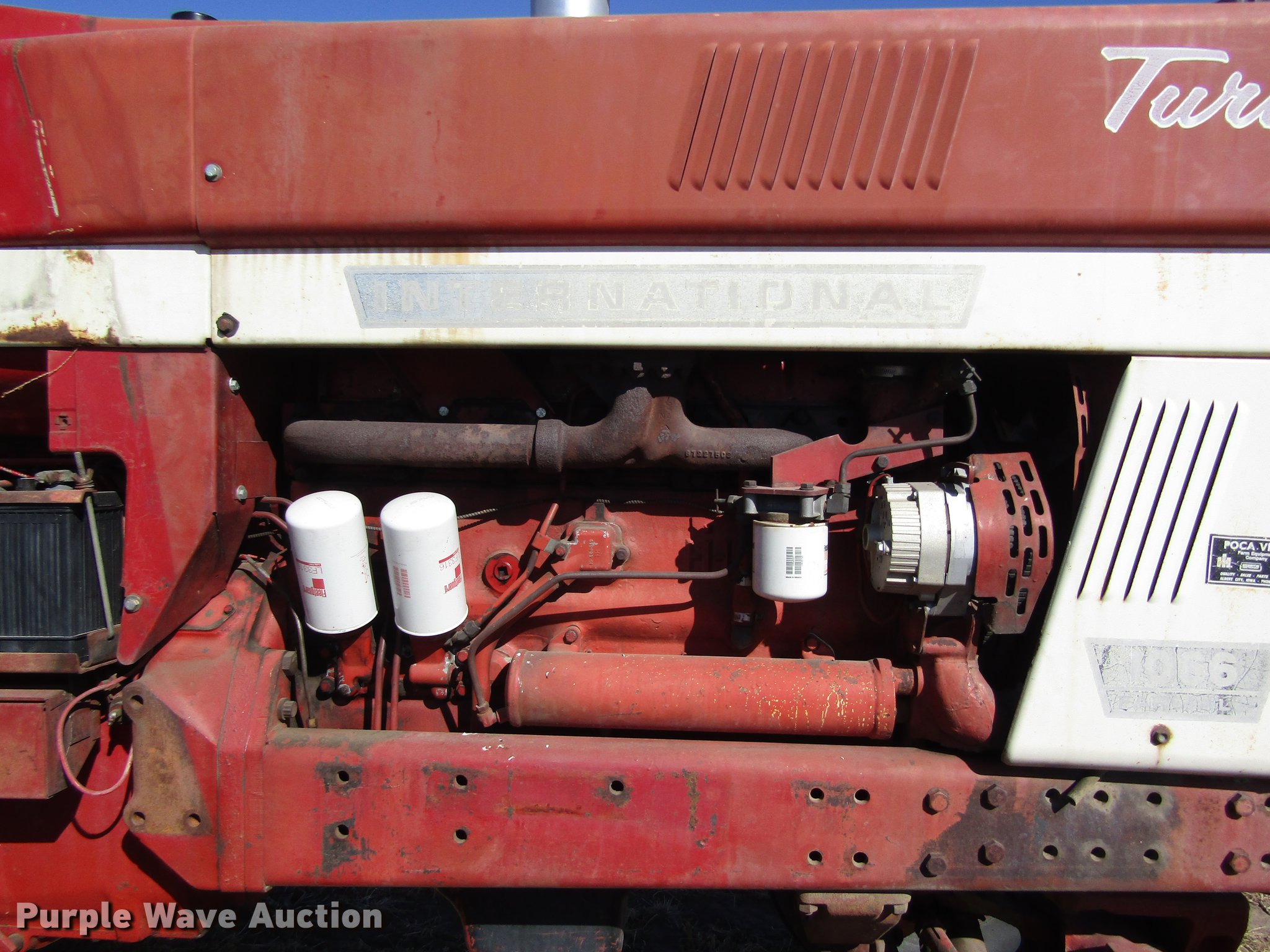 Purple Wave is selling a used Tractor in Kansas. This item is a 1974 International 1066 tractor with the following: 4,279 hours on meter, International 6.8L six cylinder turbo diesel engine, Torque amplifier transmission, 16F-8R gears, Suspension seat, Ether start, Three point, 540/1000 PTO, (2) rear hydraulic remote sets, (6) rear wheel weights, 10.00-16 front tires, 18.4-38 rear tires, Serial 2610172U041863