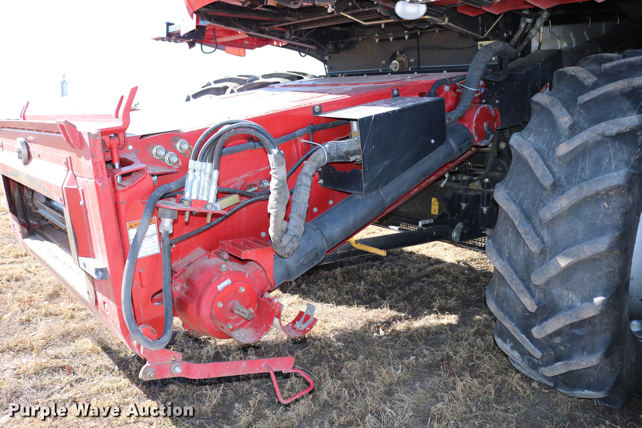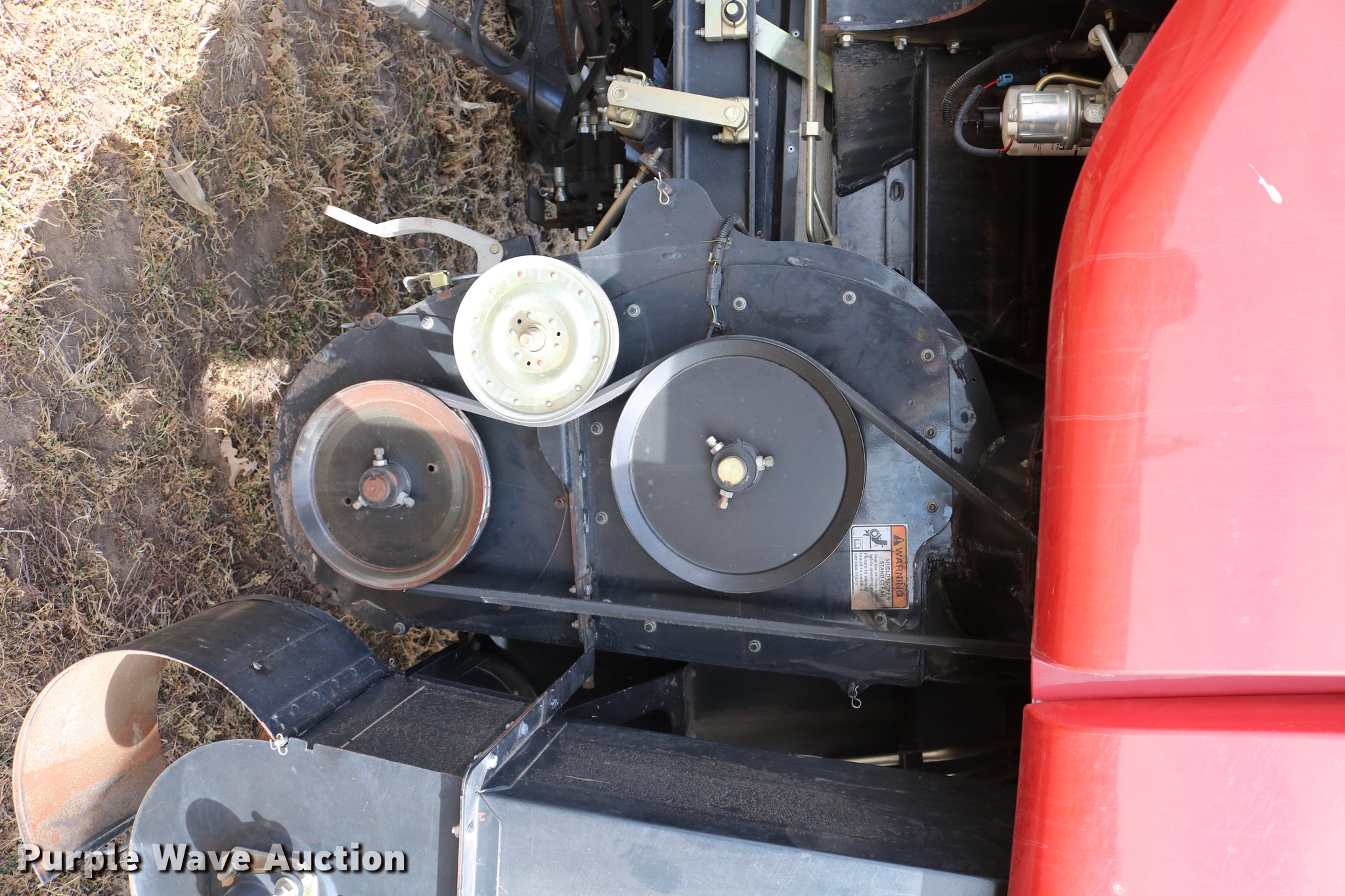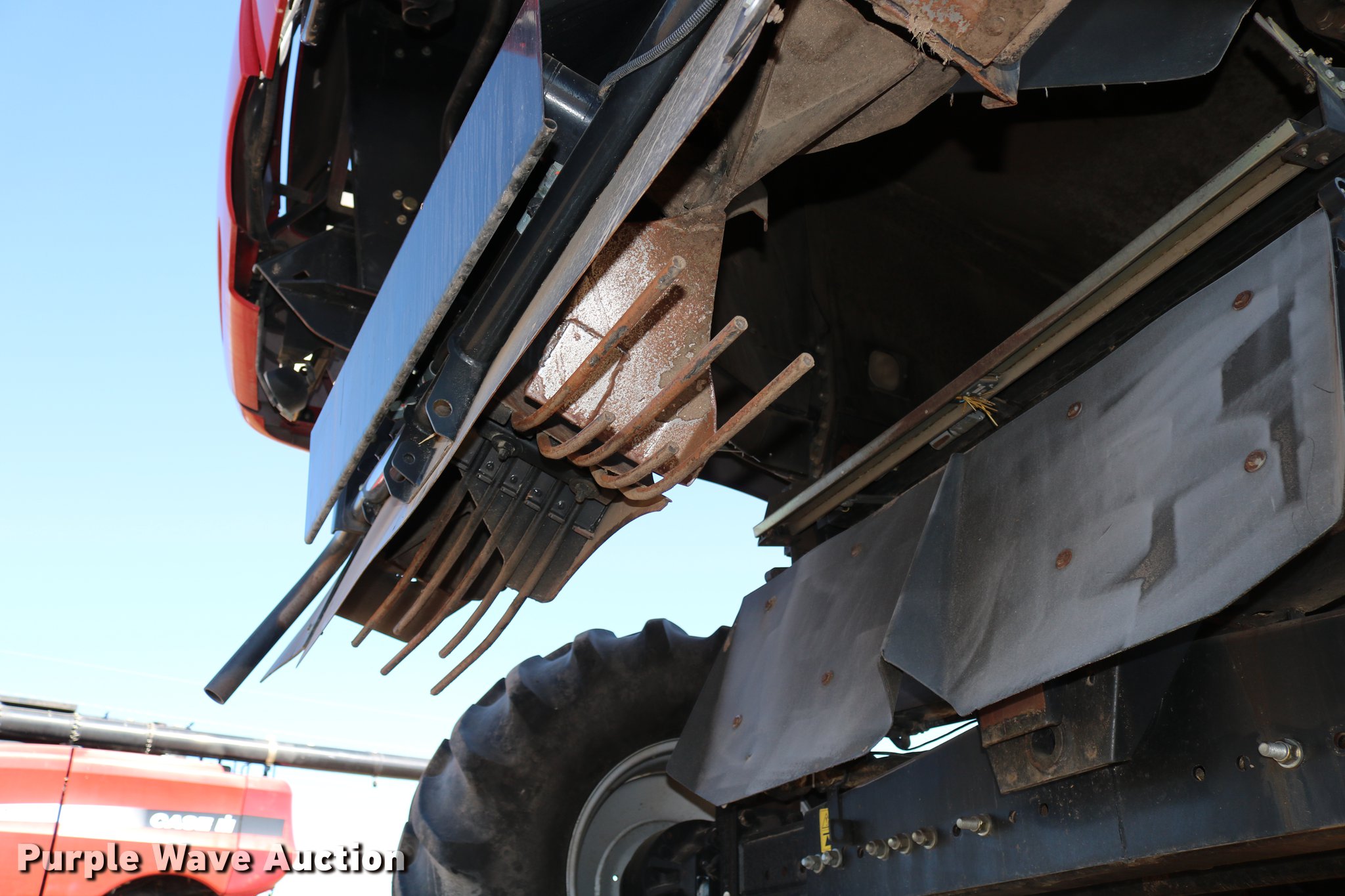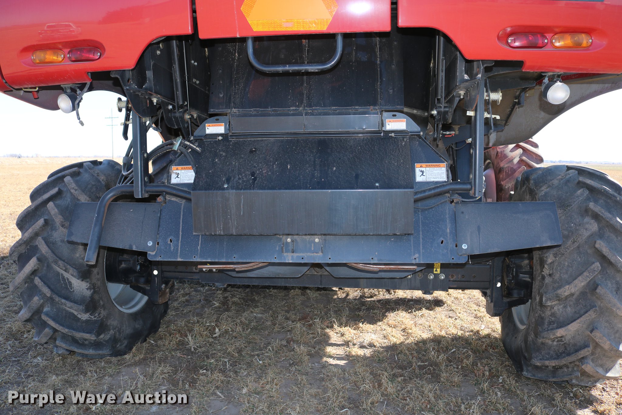 Purple Wave is selling a used Combine in Kansas. This item is a 2010 Case IH 7120 RWA combine with the following: 1,757 engine hours on meter, 1,297 separator hours on meter, Case IH six cylinder turbo diesel engine, Hydrostatic transmission, 4F-4R gears, Feederhouse, Lateral tilt, Variable speed, Reverser, Single point header coupler, AC and heat, Tilt steering wheel, AM/FM, Air suspension seat, Instructor's seat, Shade, Power and heated mirrors, AFS Pro 600 monitor, Yield monitor, Auto steer, Round concaves, Three speed rotor, Chaff spreader, Bin extensions, 21'L unloading auger, Work lights, 620/70R42 dual front tires, 600/65R28 rear tires, Serial YAG208738