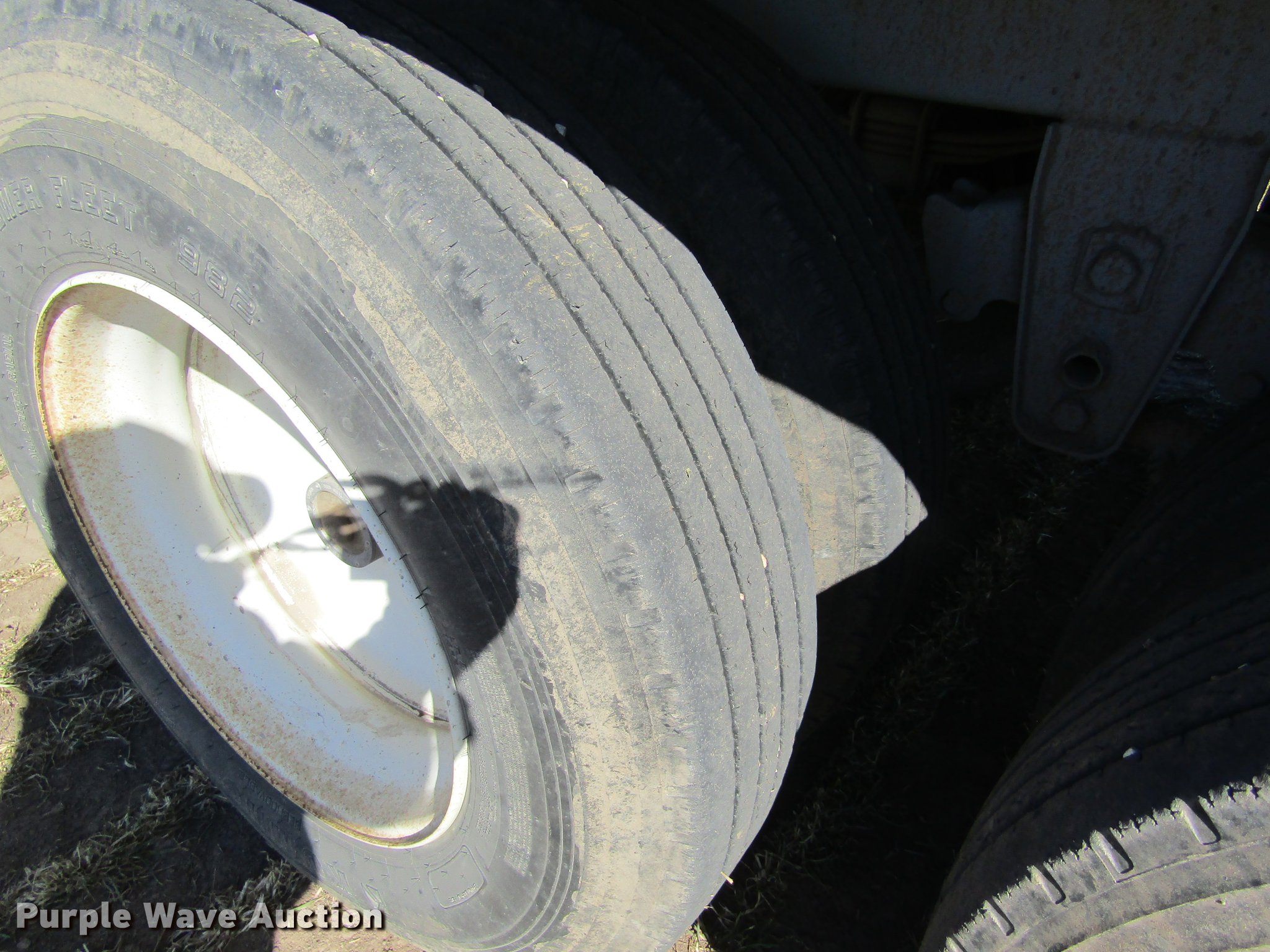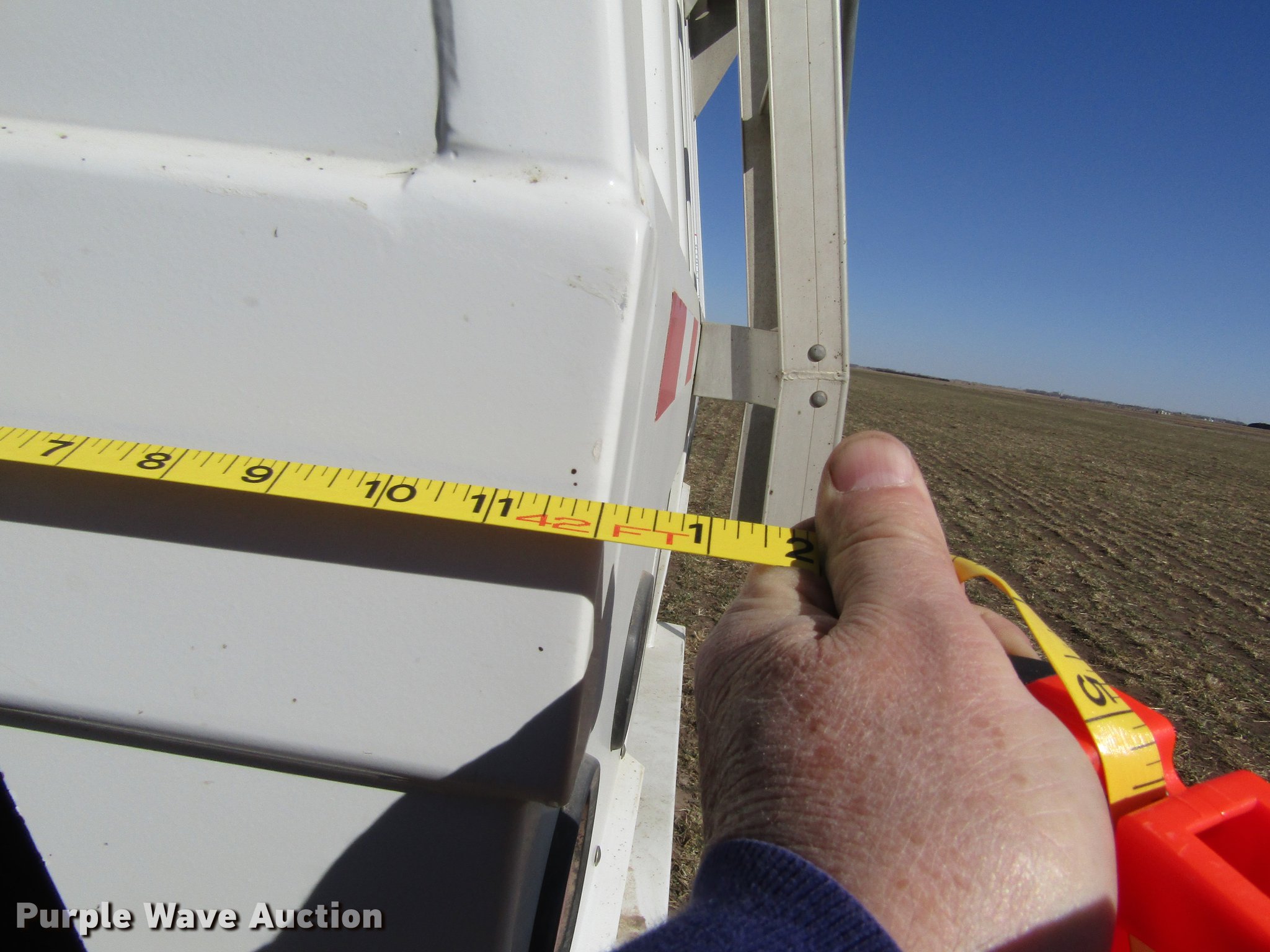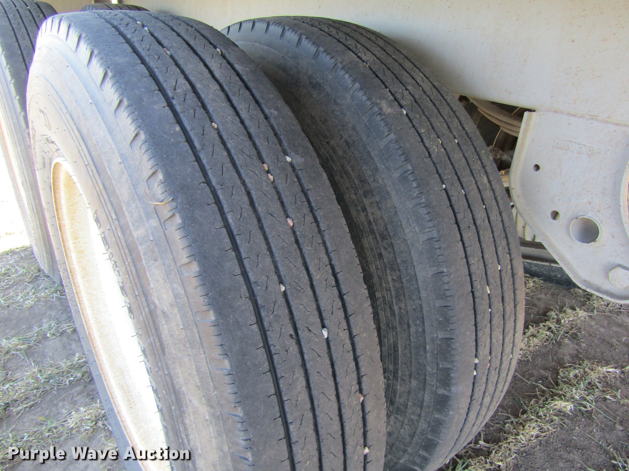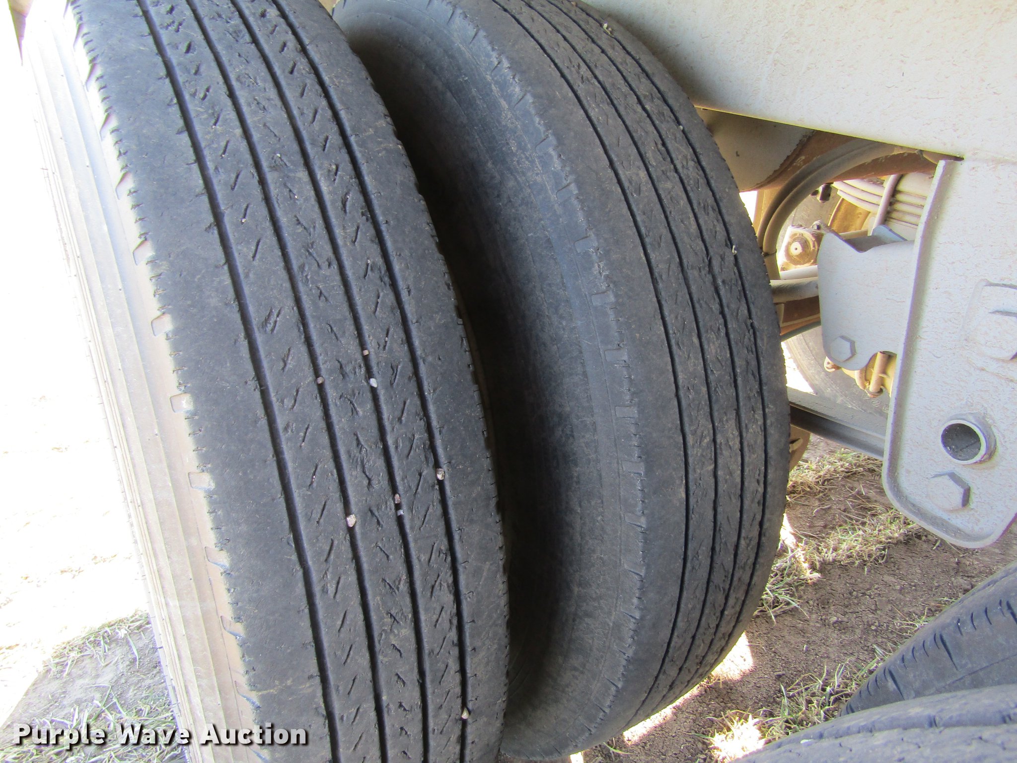 Purple Wave is selling a used Grain or Commodity Trailer in Kansas. This item is a 2005 Jet double hopper bottom grain trailer with the following: 42'L x 96"W, 60" side height, Manual trap gates, Side chutes, Sight windows, Front and rear ladders, Front and rear platforms, Shurco Shur-Lok roll tarp, Steel construction, Fifth wheel plate, Dual leg two speed landing gear, Spring suspension, Air brakes, Tandem axle, Steel wheels, 11R24.5 tires, GVWR 68,000 lbs, GAWR 20,000 lbs