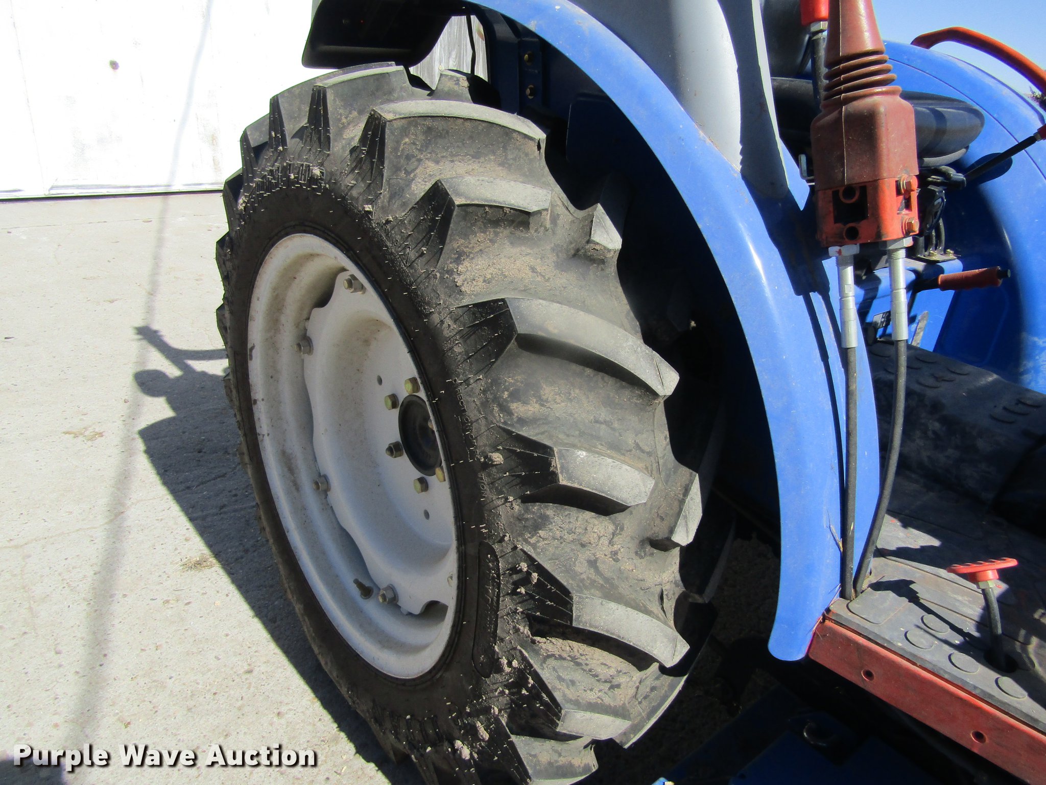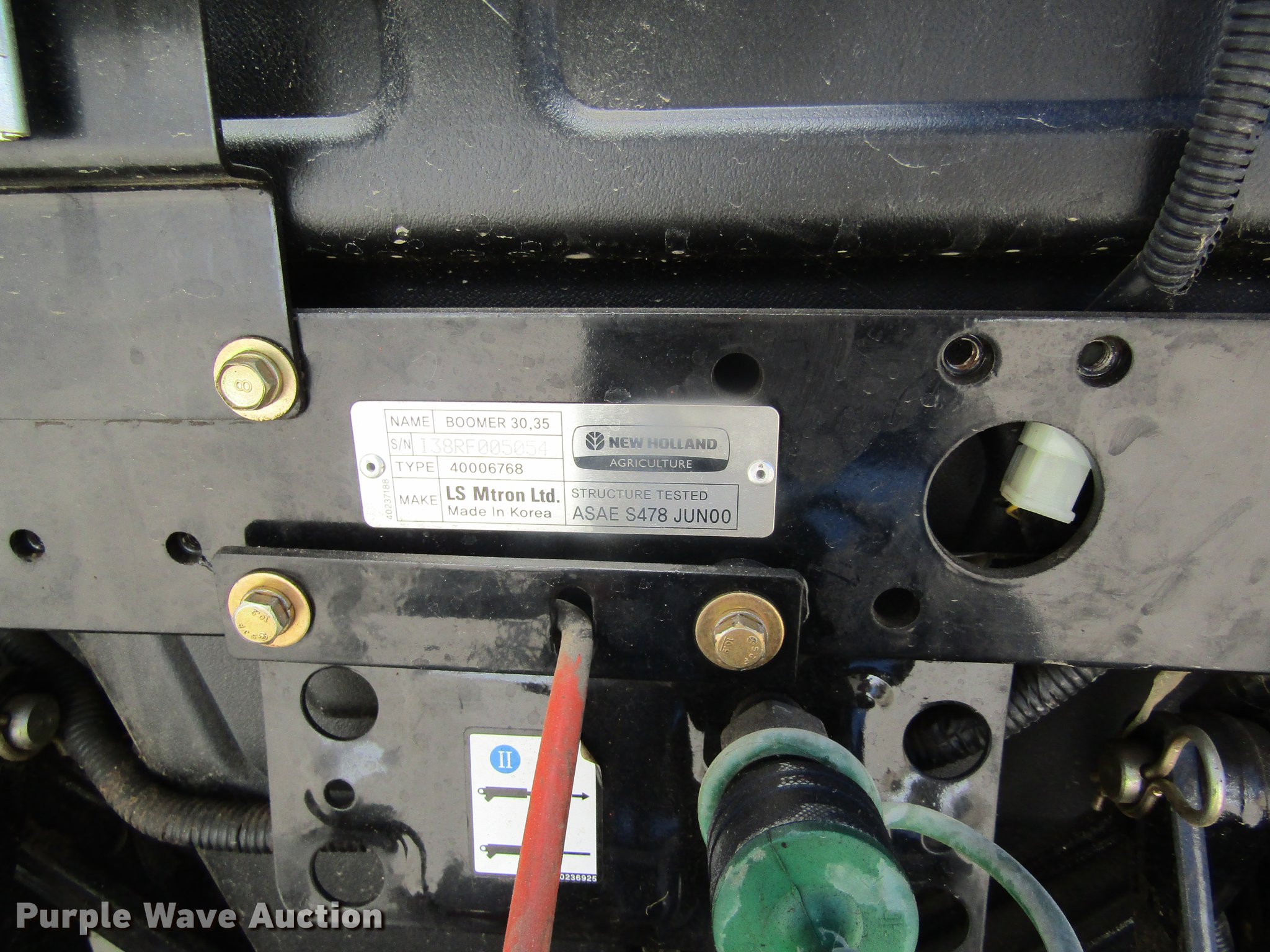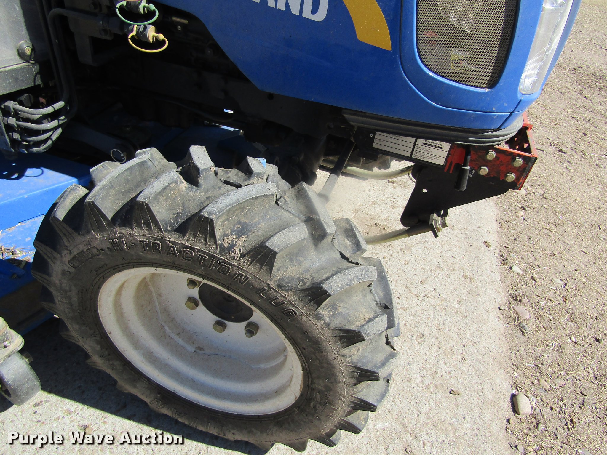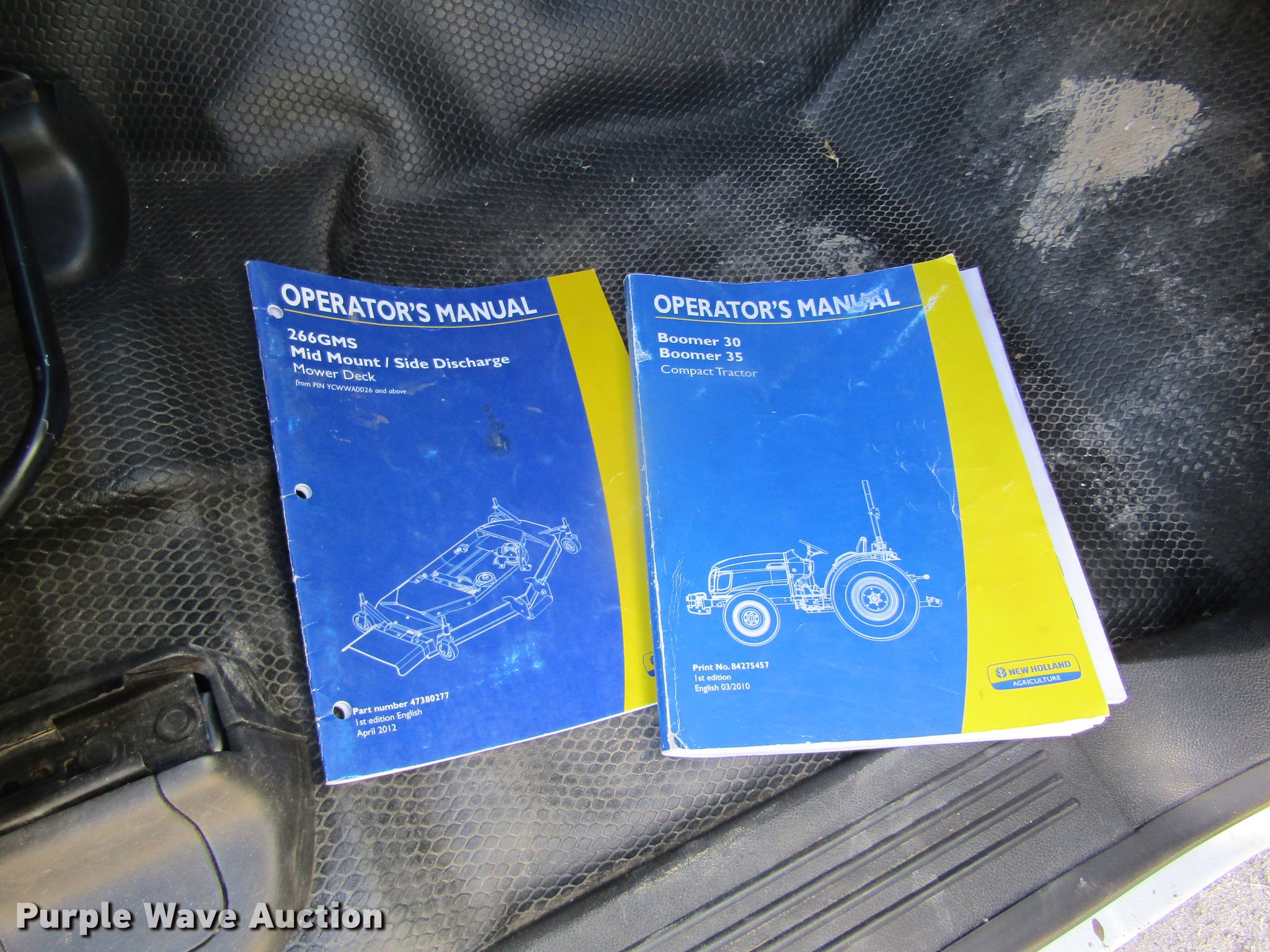 Purple Wave is selling a used Tractor in Kansas. This item is a 2012 New Holland Boomer 30 HFWD tractor with the following: 146 hours on meter, Mitsubishi S4L 1.5L four cylinder diesel engine, 28 HP, Serial 31A9307806, Synchro transmission, 12F-12R gears, Left-hand reverser, Differential lock, ROPS, Suspension seat, Three point, Top link, 540 PTO, Draw bar, (2) front hydraulic remote sets, Rear hydraulic remote set, New Holland 266GMS mower deck, 66"W, 66" wheelbase, 7-14R front tires, 11.2-24 rear tires, Manuals, Serial 2107013994