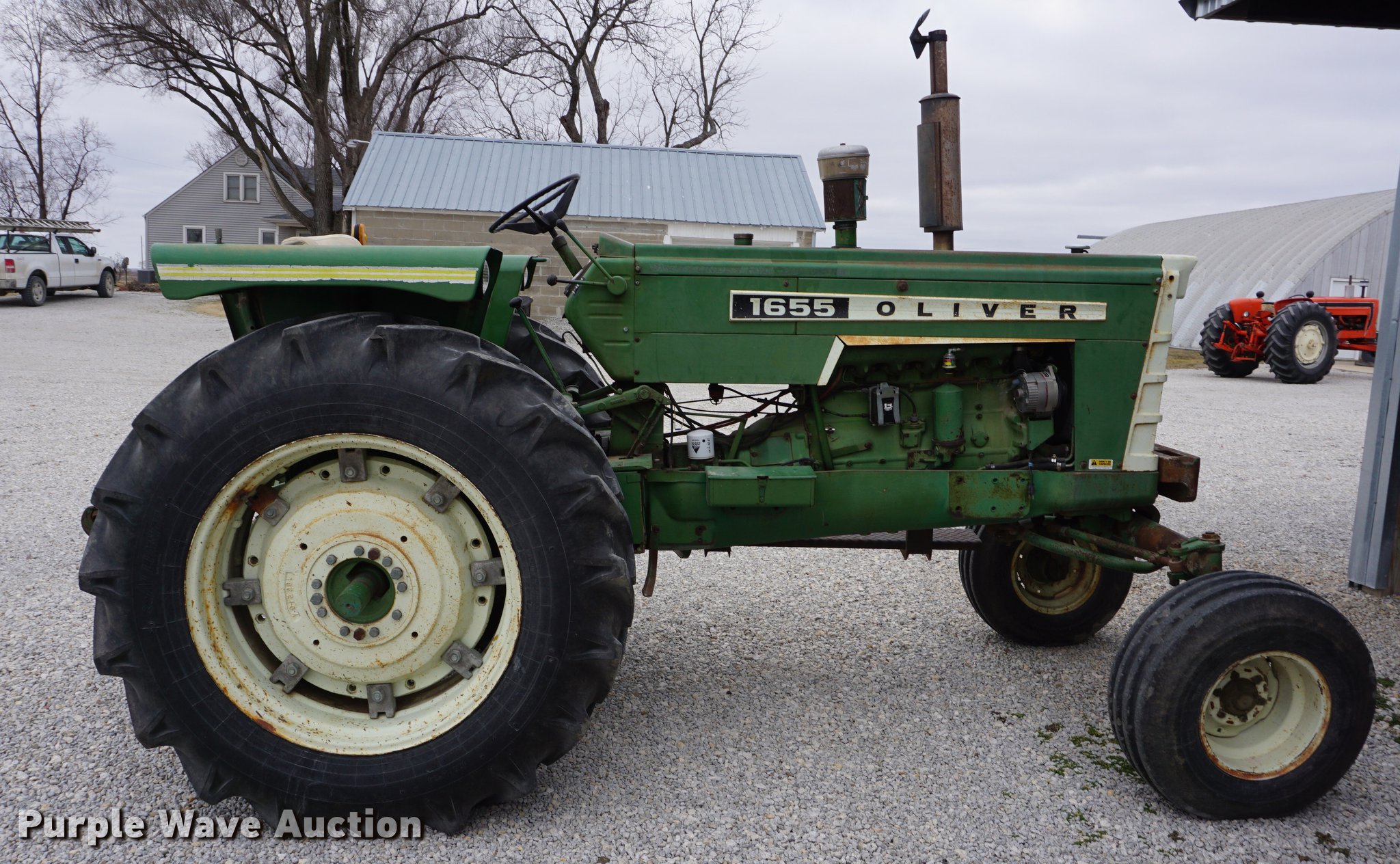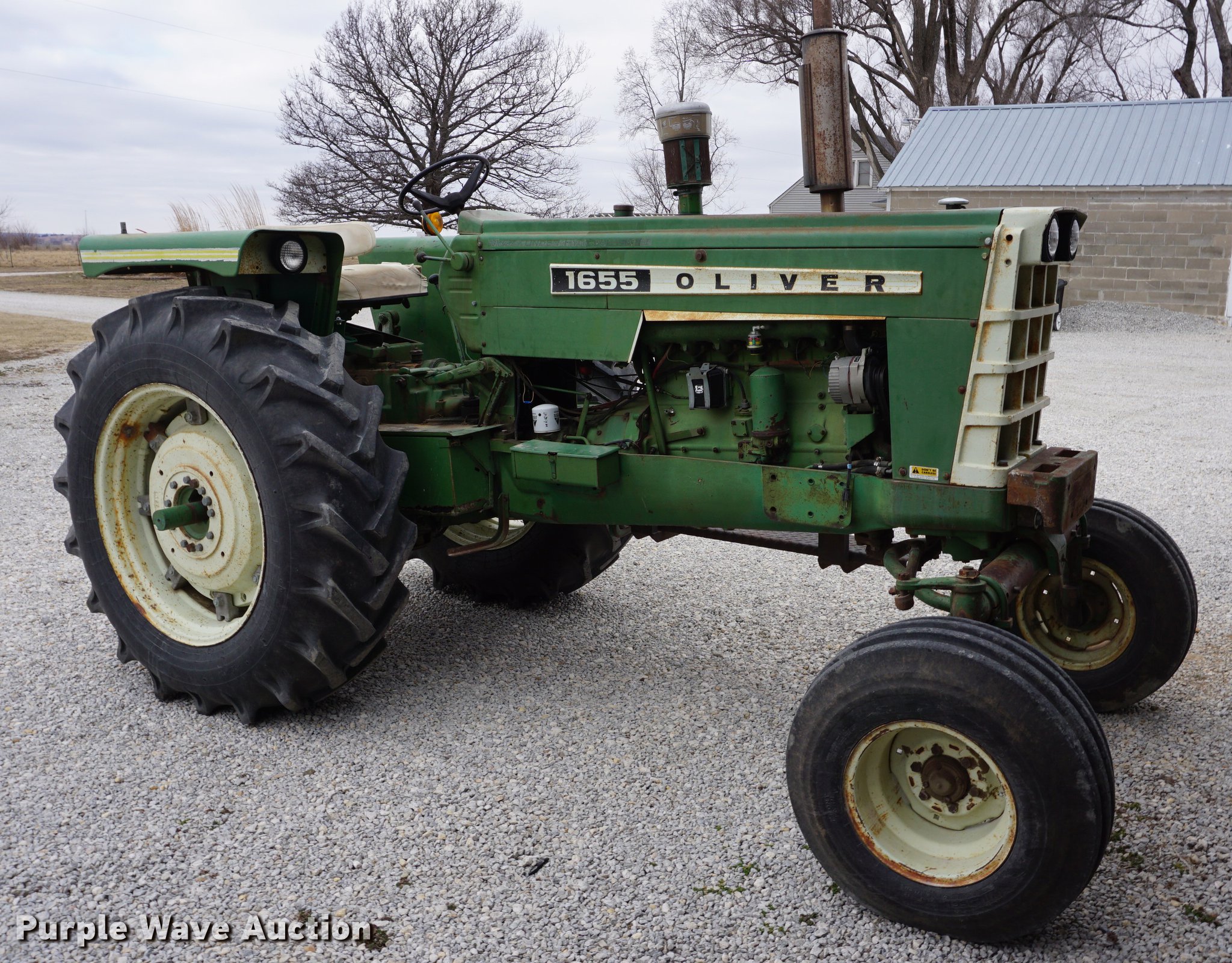 Purple Wave is selling a used Tractor in Kansas. This item is a 1974 Oliver 1655 tractor with the following: 4,578 hours on meter, Oliver 4.6L six cylinder diesel engine, 77 HP, Hydraul-Shift transmission, 18F-6R gears, Tilt steering wheel, Three point, 540 PTO, (2) rear hydraulic remote sets, Rhino rotary mower, 7'W, 540 PTO, Three point, Serial 014085HH, 11L-15 front tires, 16.9/14-34 rear tires, Serial 254473
