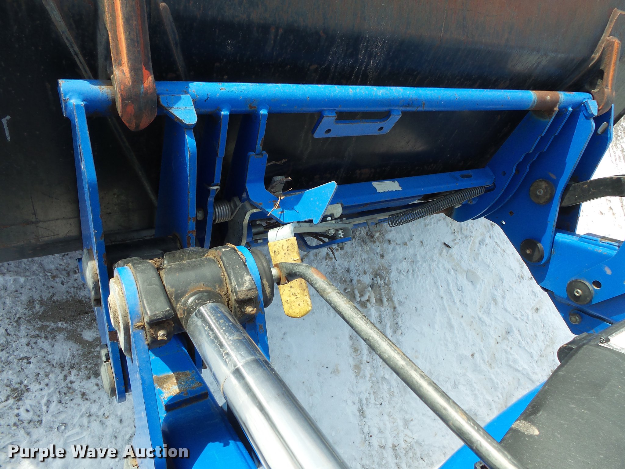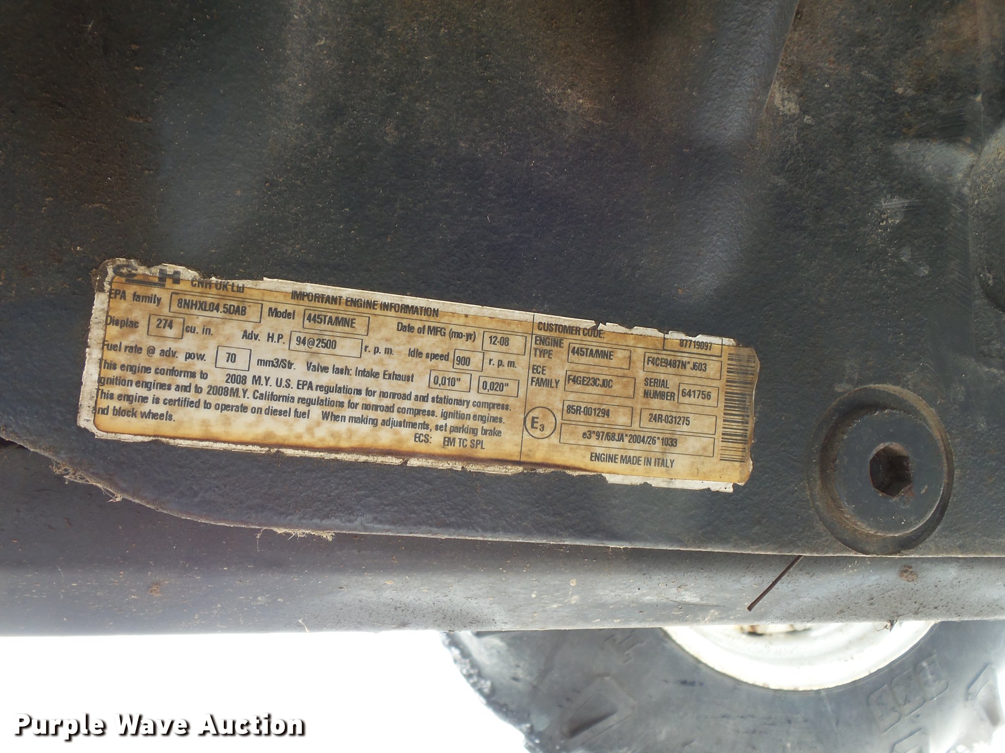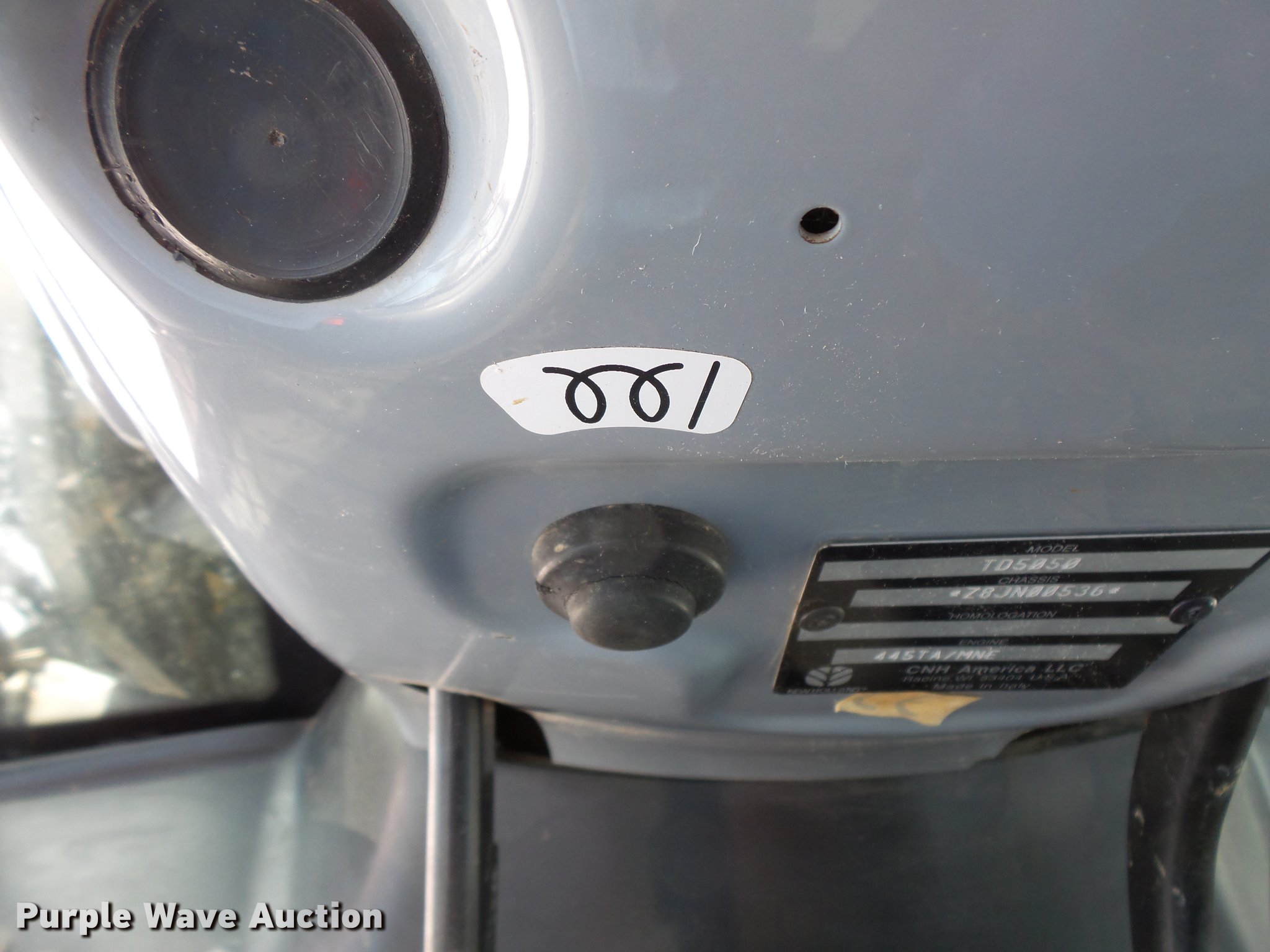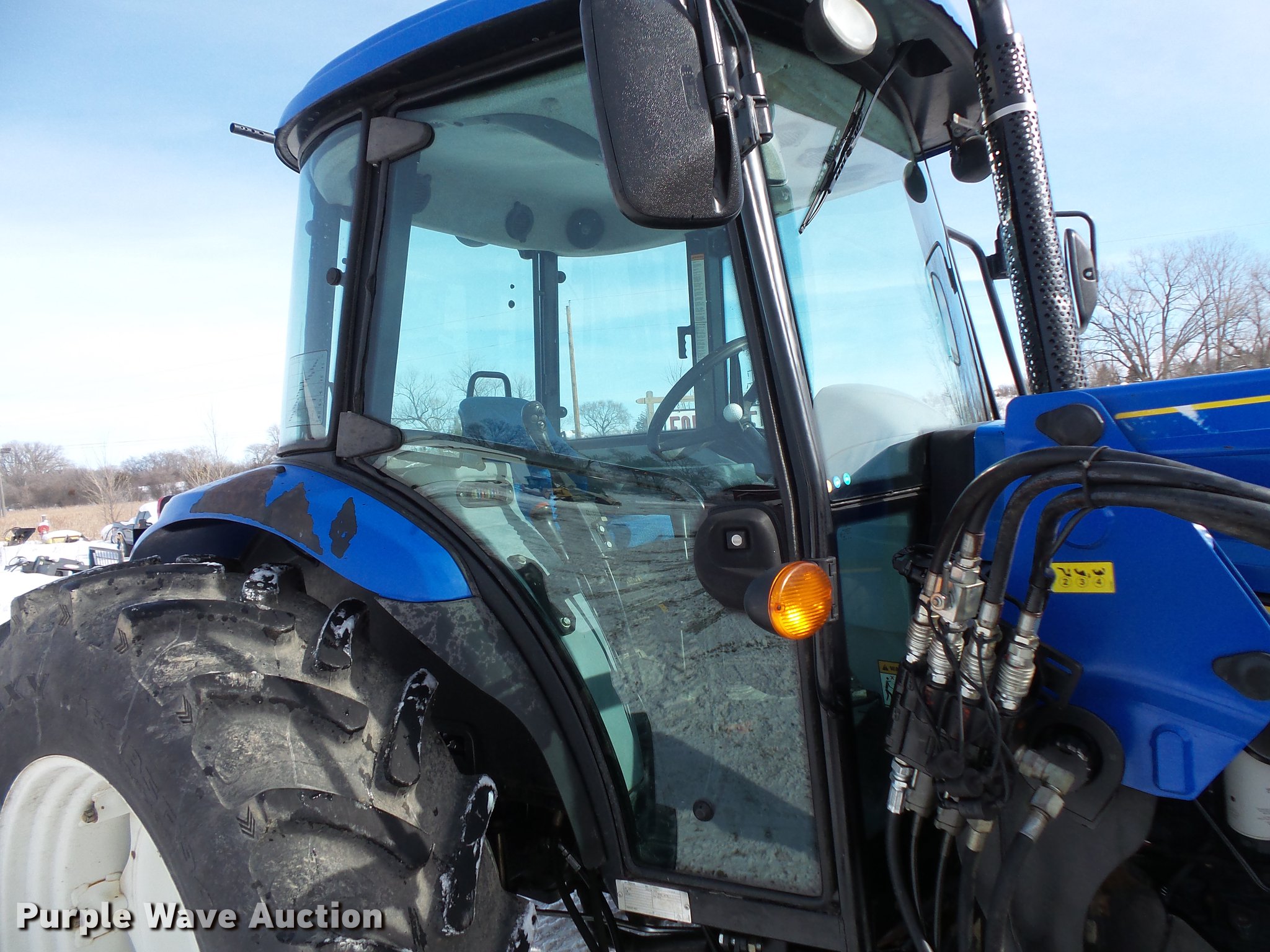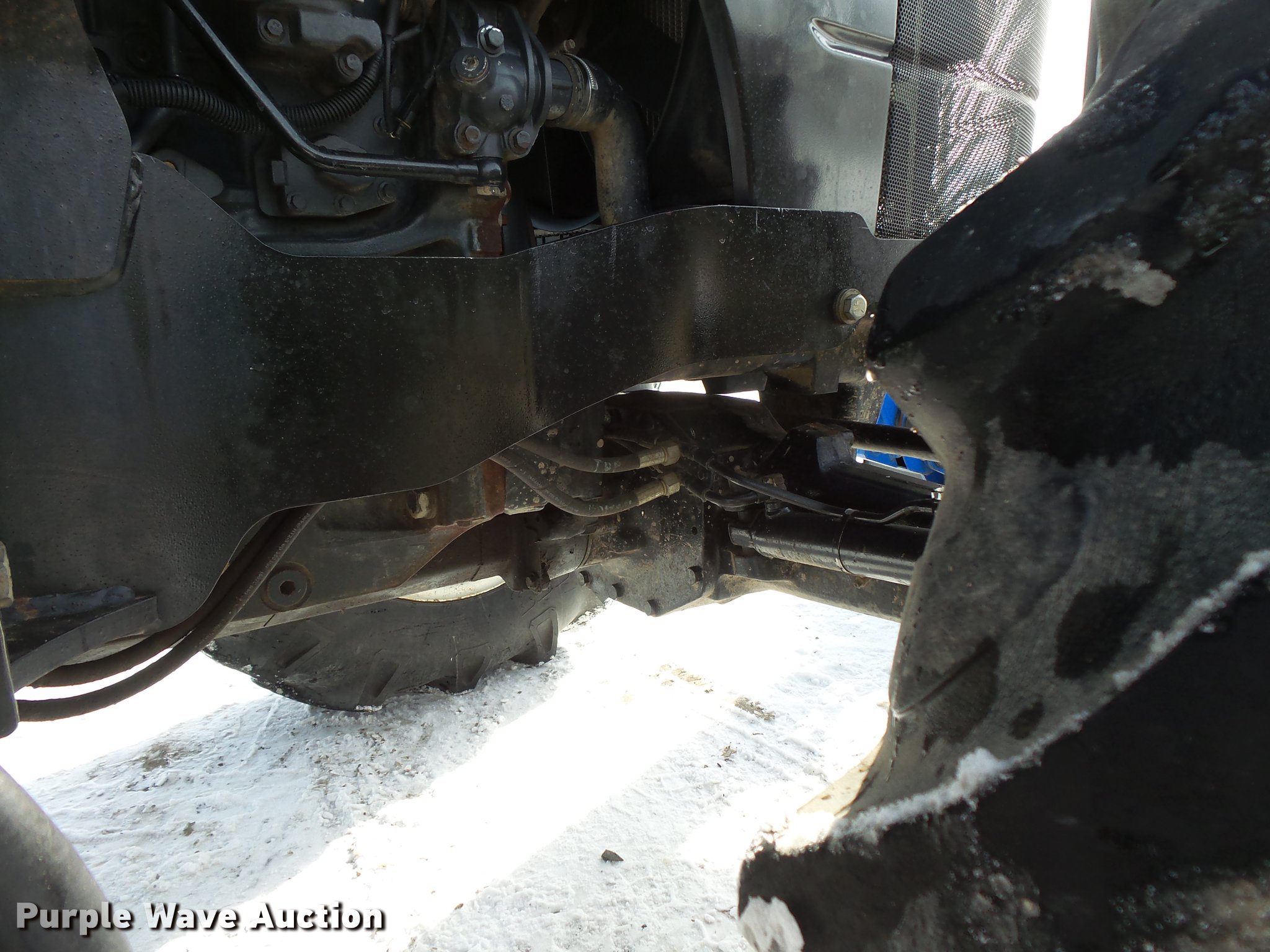 Purple Wave is selling a used Tractor in Minnesota. This item is a 2009 New Holland TD5050 MFWD tractor with the following: 111 hours on meter, 274 C.I.D. four cylinder turbo diesel engine, Model 445TA/MNE, Serial 641756, Manual transmission, 12F-12R gears, Differential lock, AC and heat, Tilt steering wheel, AM/FM, Suspension seat, Shade, New Holland 820TL loader, 72"W bucket, Quick attach, Joystick controls, Serial Y8WLE0389, Three point, Quick attach, Seven pin outlet, 540 PTO, Rear hydraulic remote sets, 340/85R24 front tires, 460/85R34 rear tires, Serial Z8JN00536