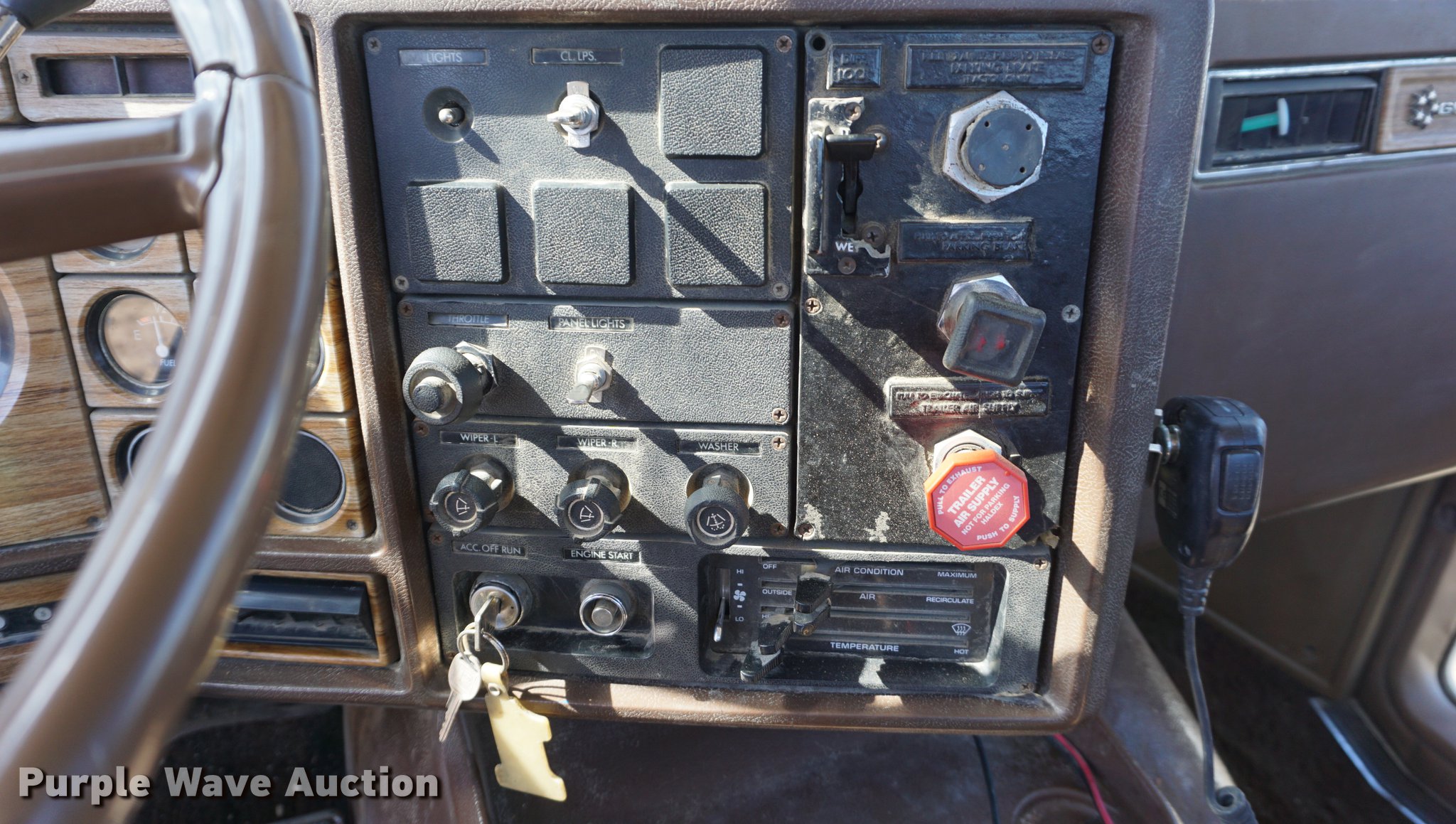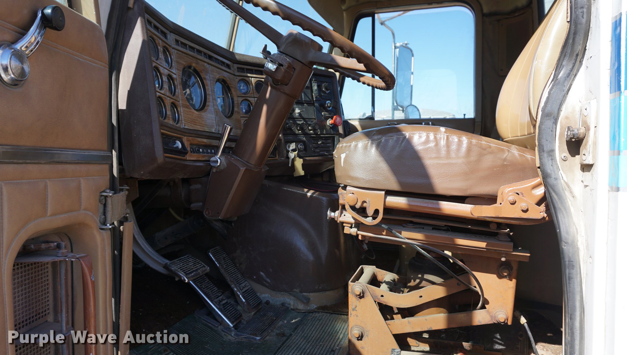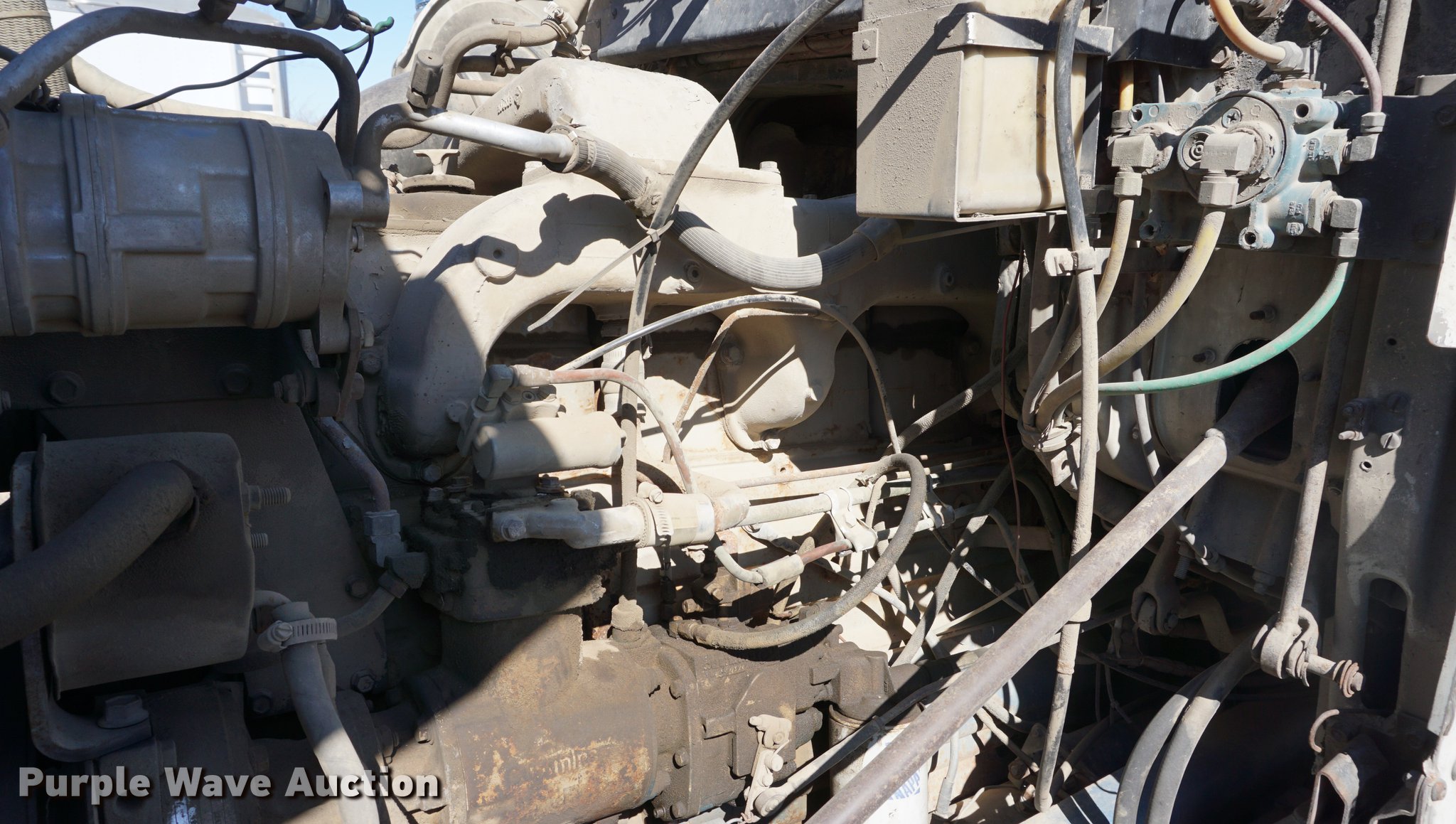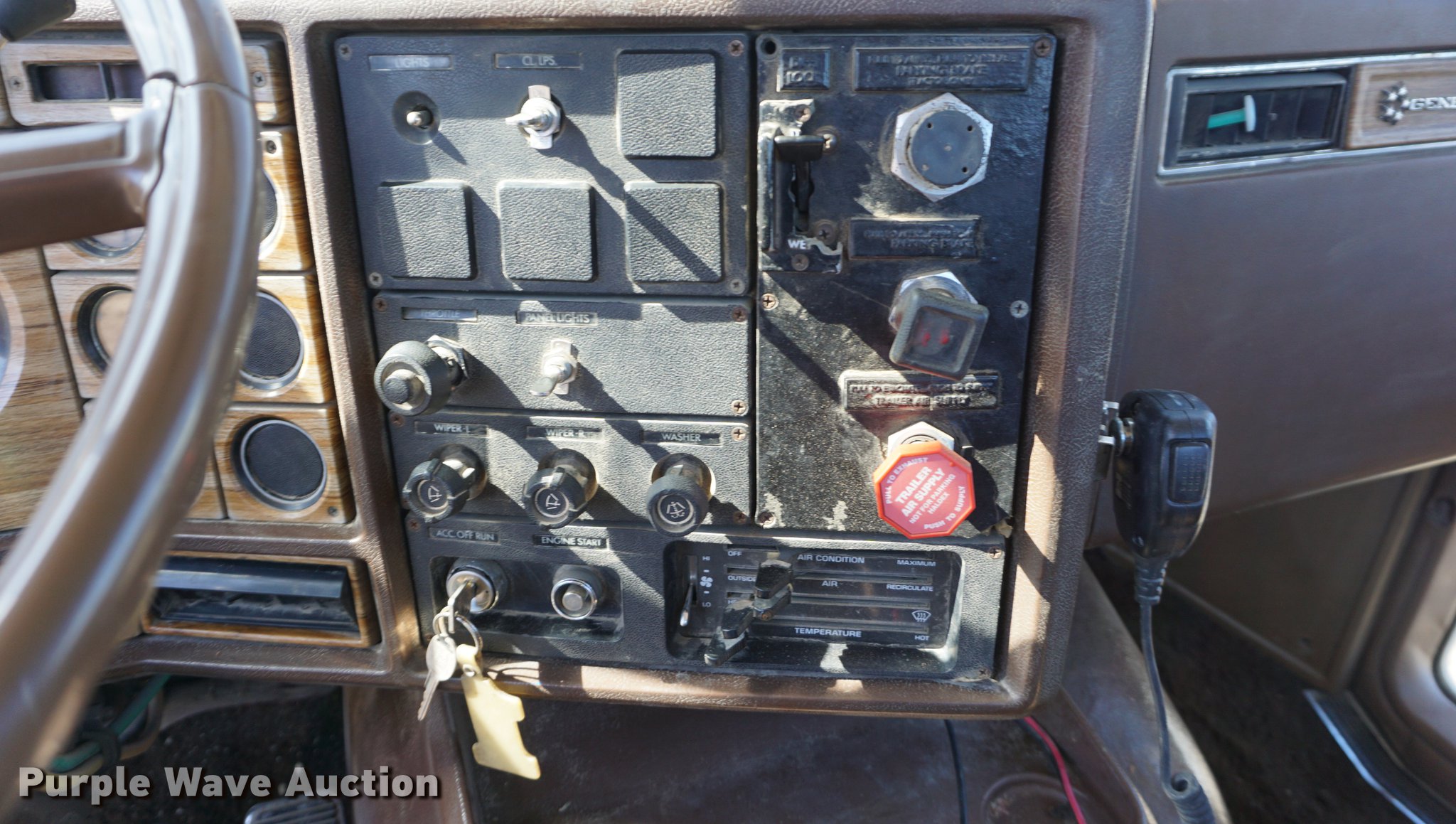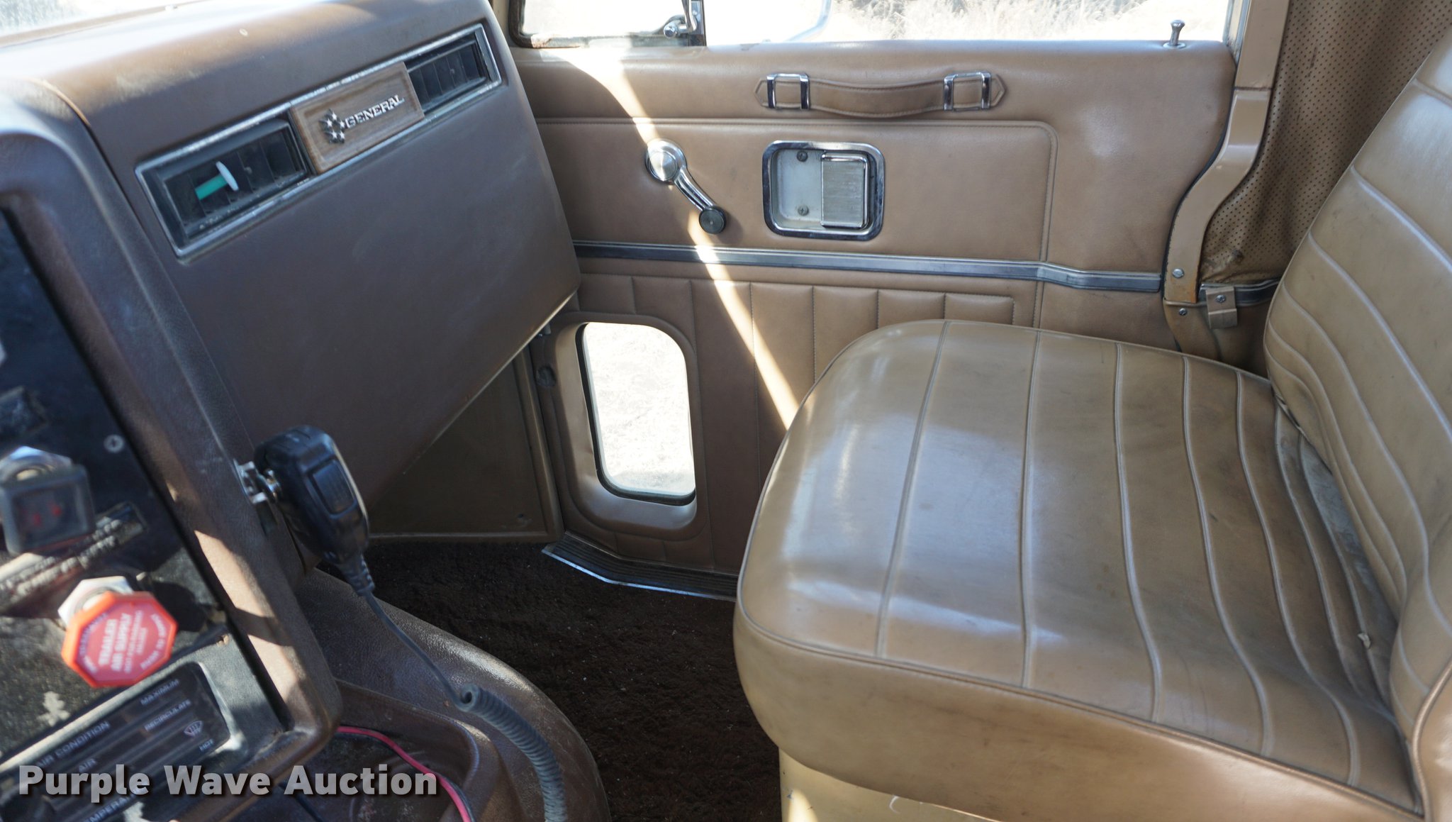 Purple Wave is selling a used Truck Tractor in Kansas. This item is a 1978 GMC General semi truck with the following: 425,138 miles on odometer, 9,727 hours on meter, Cummins NTC six cylinder turbo diesel engine, 290 HP, Eaton Fuller nine speed manual transmission, Tandem axle, Inter-axle differential lock, AC and heat, Tilt, AM/FM, Air suspension seat, PTO, Wet kit, Single exhaust stack, Steel deck plate, Sliding fifth wheel plate, Dual fuel tanks, Spring suspension, Air brakes, 10.00R20 front tires, 295/75R22.5 rear tires, GVWR 44,860 lbs, FAWR 10,860 lbs, IAWR 17,000 lbs, RAWR 17,000 lbs
