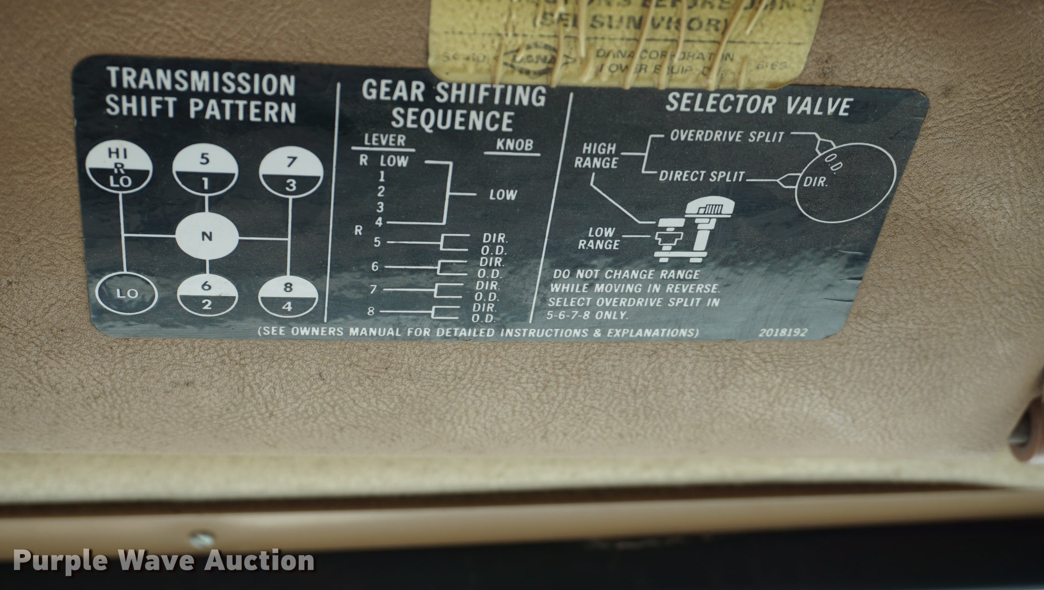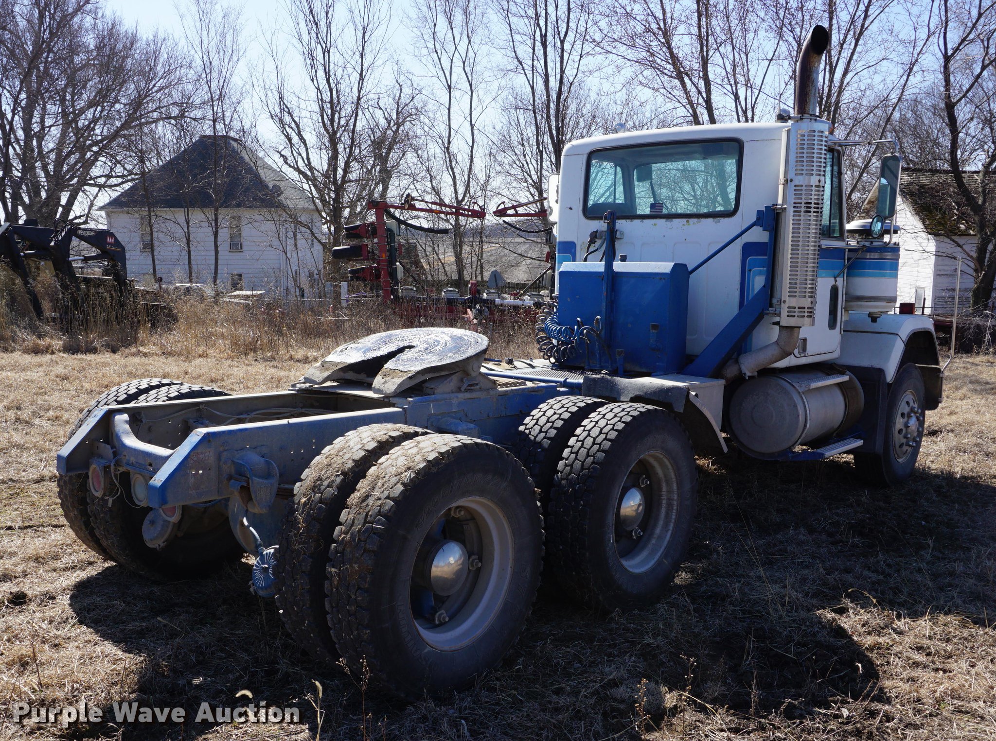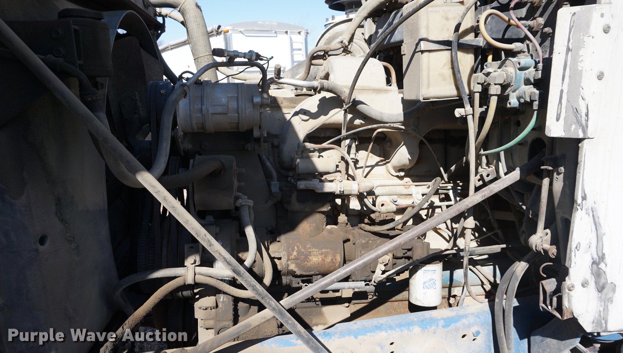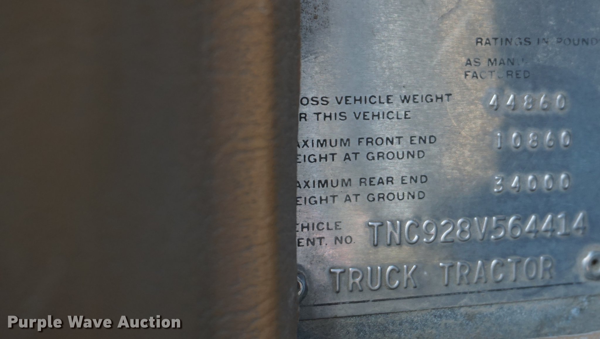 Purple Wave is selling a used Truck Tractor in Kansas. This item is a 1978 GMC General semi truck with the following: 425,138 miles on odometer, 9,727 hours on meter, Cummins NTC six cylinder turbo diesel engine, 290 HP, Eaton Fuller nine speed manual transmission, Tandem axle, Inter-axle differential lock, AC and heat, Tilt, AM/FM, Air suspension seat, PTO, Wet kit, Single exhaust stack, Steel deck plate, Sliding fifth wheel plate, Dual fuel tanks, Spring suspension, Air brakes, 10.00R20 front tires, 295/75R22.5 rear tires, GVWR 44,860 lbs, FAWR 10,860 lbs, IAWR 17,000 lbs, RAWR 17,000 lbs