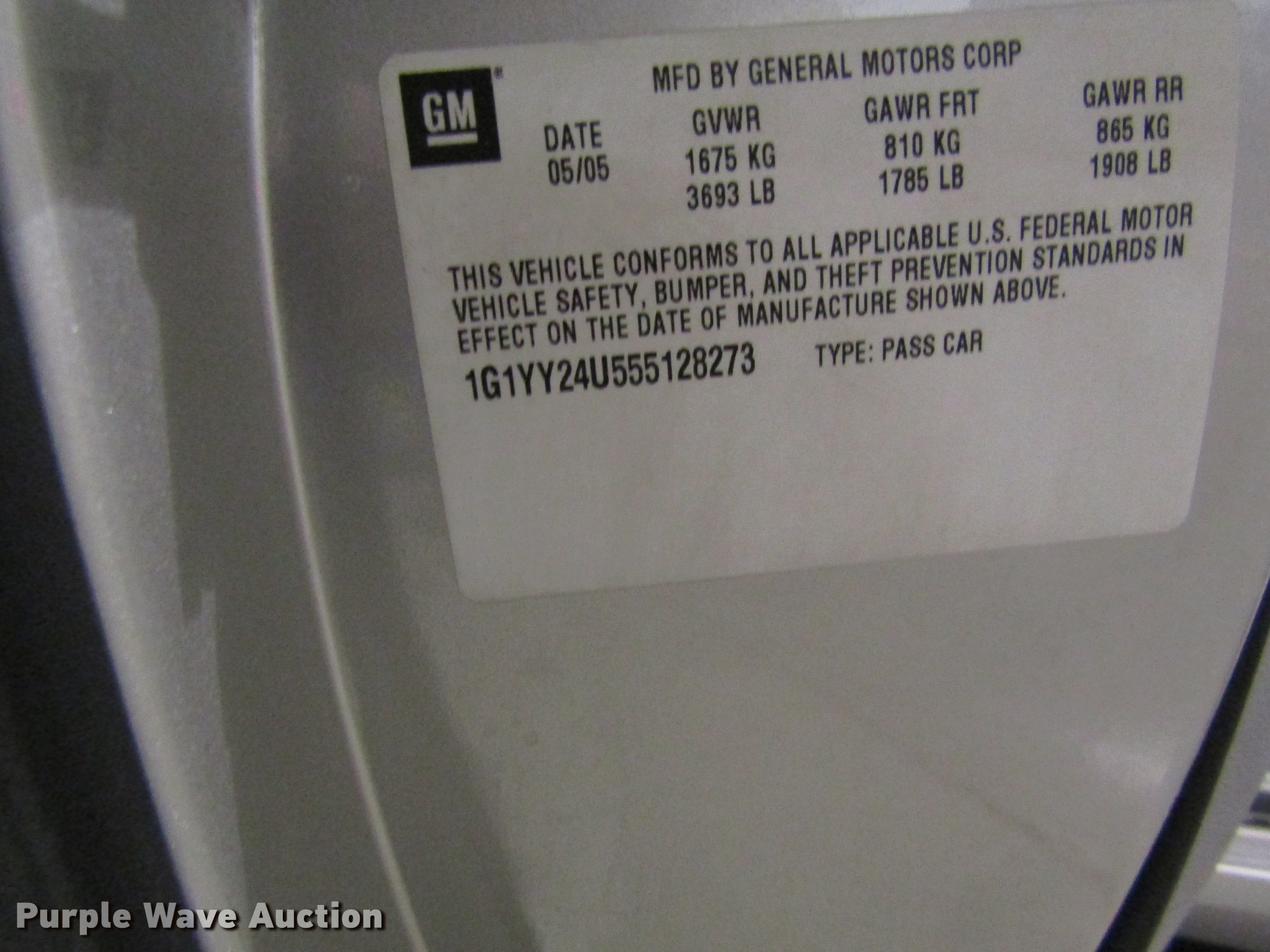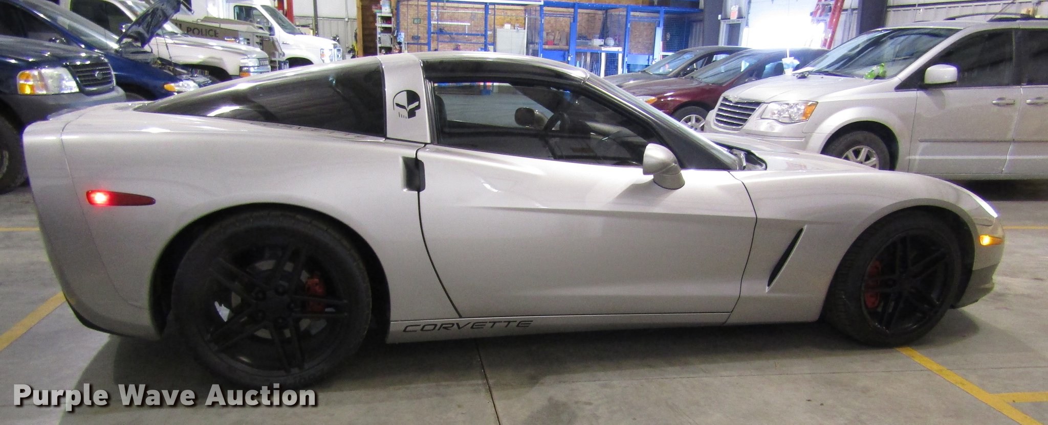 Purple Wave is selling a used Passenger Vehicle in Kansas. This item is a 2005 Chevrolet Corvette with the following: 84,299 miles on odometer, 6.0L V8 OHV 16V gas engine, Automatic transmission, AC and heat, Tilt, Cruise, AM/FM/CD, Power windows, locks, mirrors, and seats, Leather interior, 245/40ZR18 front tires, 325/30R19 rear tires, Radar detector not included