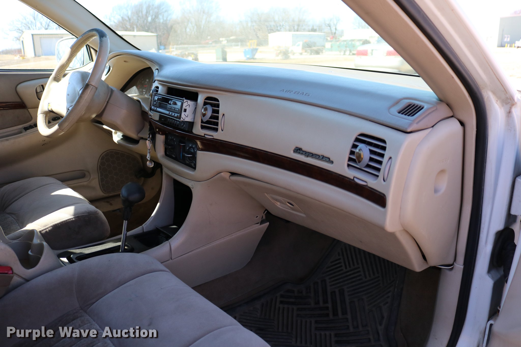 Purple Wave is selling a used Passenger Vehicle in Kansas. This item is a 2003 Chevrolet Impala with the following: 261,168 miles on odometer, 3.8L V6 OHV 12V gas engine, Automatic transmission, AC and heat, Tilt, Cruise, Power windows, locks, mirrors, and seat, Cloth interior, 225/60R16 tires, ABS light on, Windshield cracked, Hood and left rear door dented, Front bumper wired to vehicle