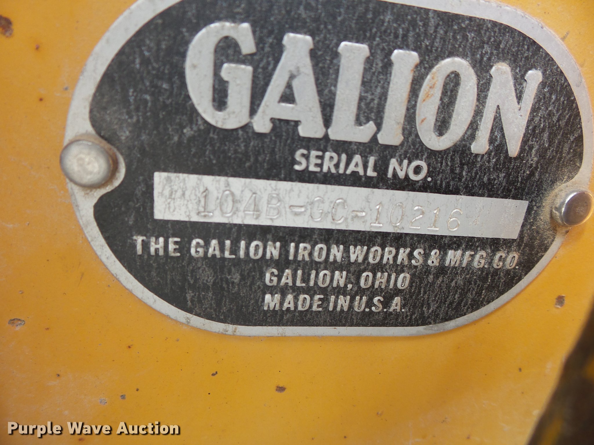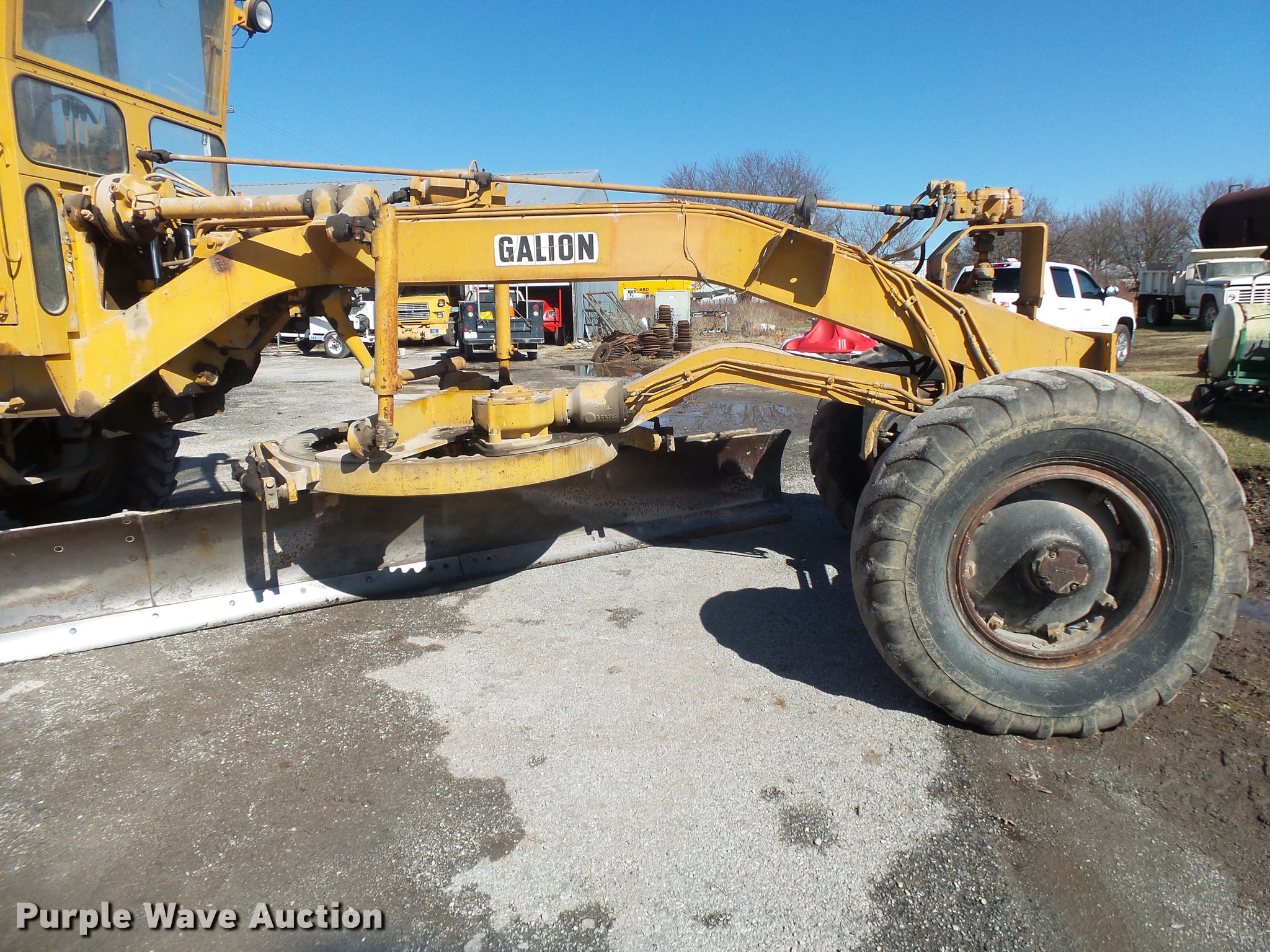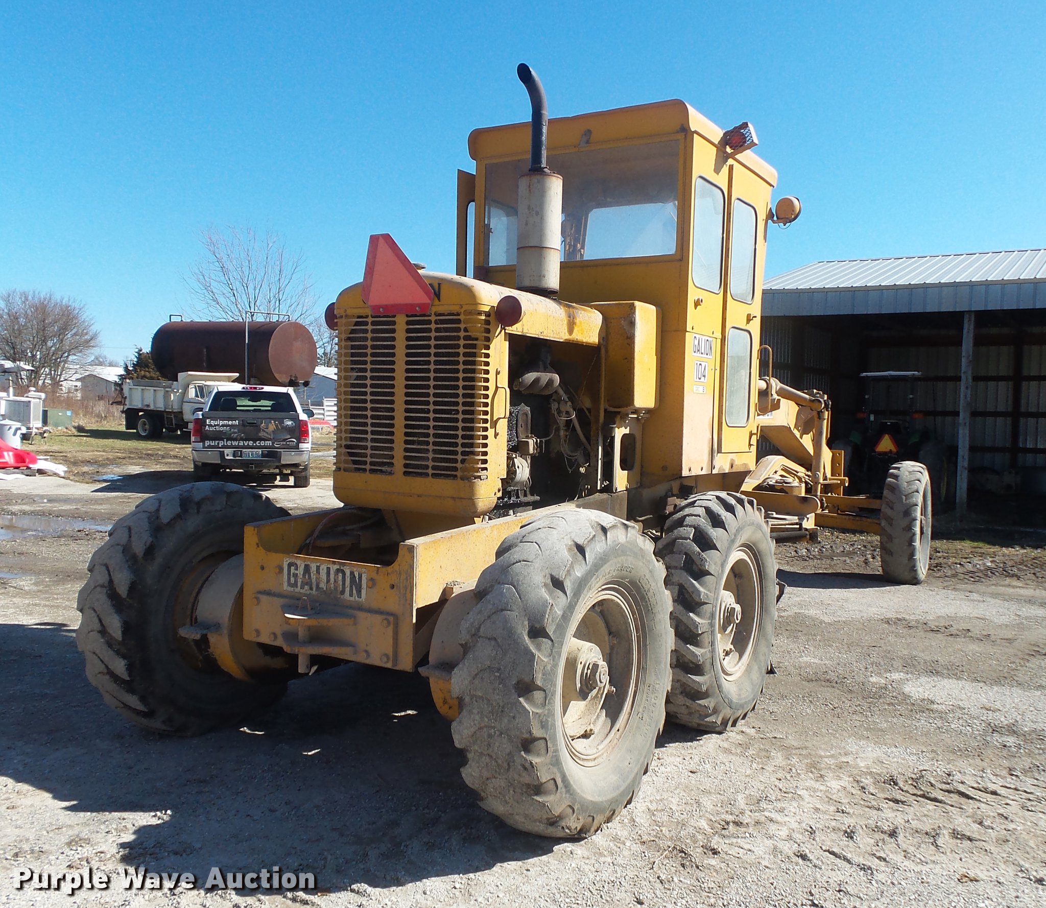 Purple Wave is selling a used Motor Grader in Missouri. This item is a 1969 Galion 104B rigid frame motor grader with the following: 1,444 hours on meter, GM 43 diesel engine, 6F-2R gears, Heat, Suspension seat, Seven control valves, Front work lights, 14'W moldboard, Side shift, 13.00-24TG tires, Oil leaks, Hydraulic cylinder leaks, Blade damaged, Tires dry rotted, Serial 104B-GC10216