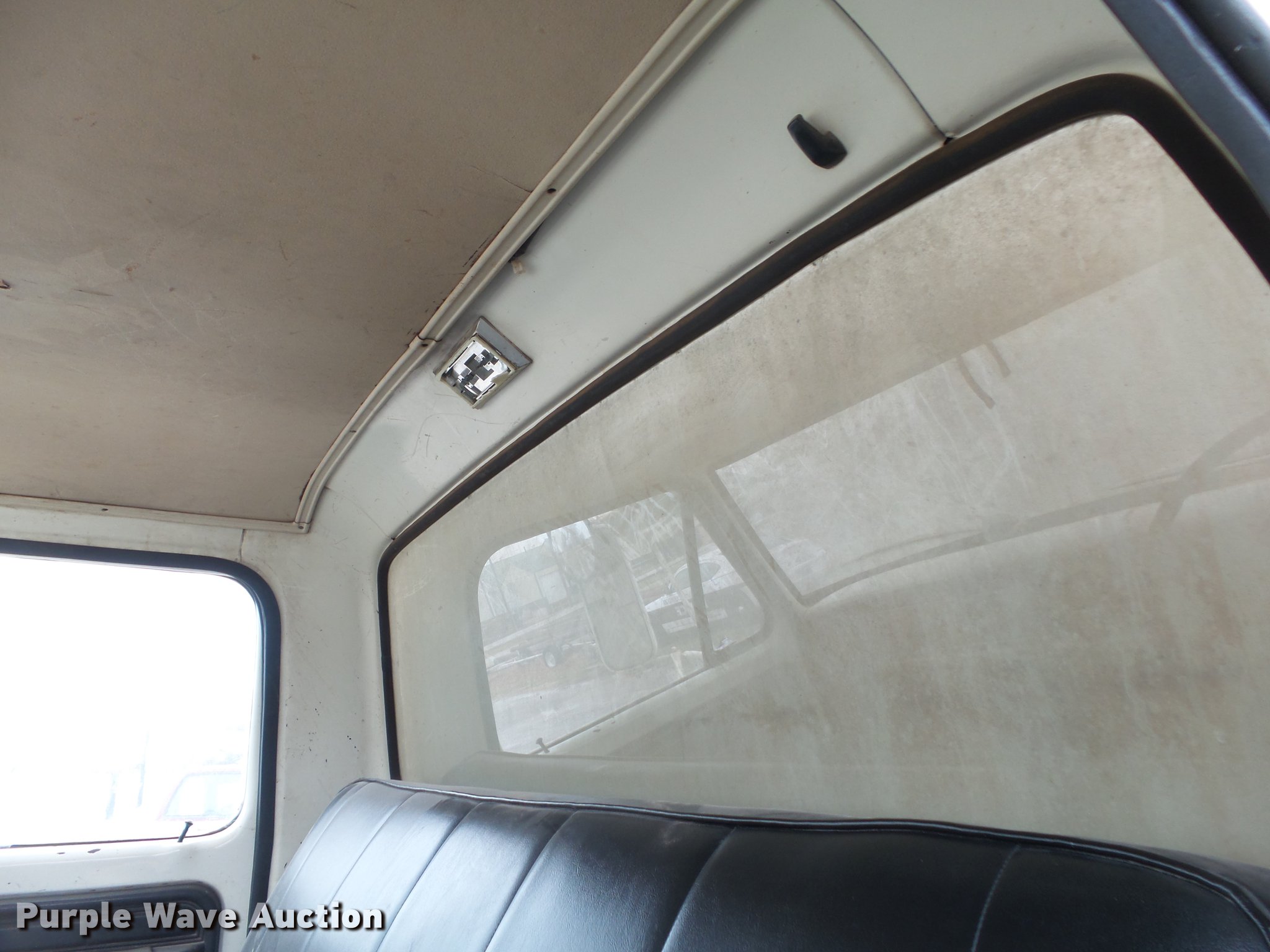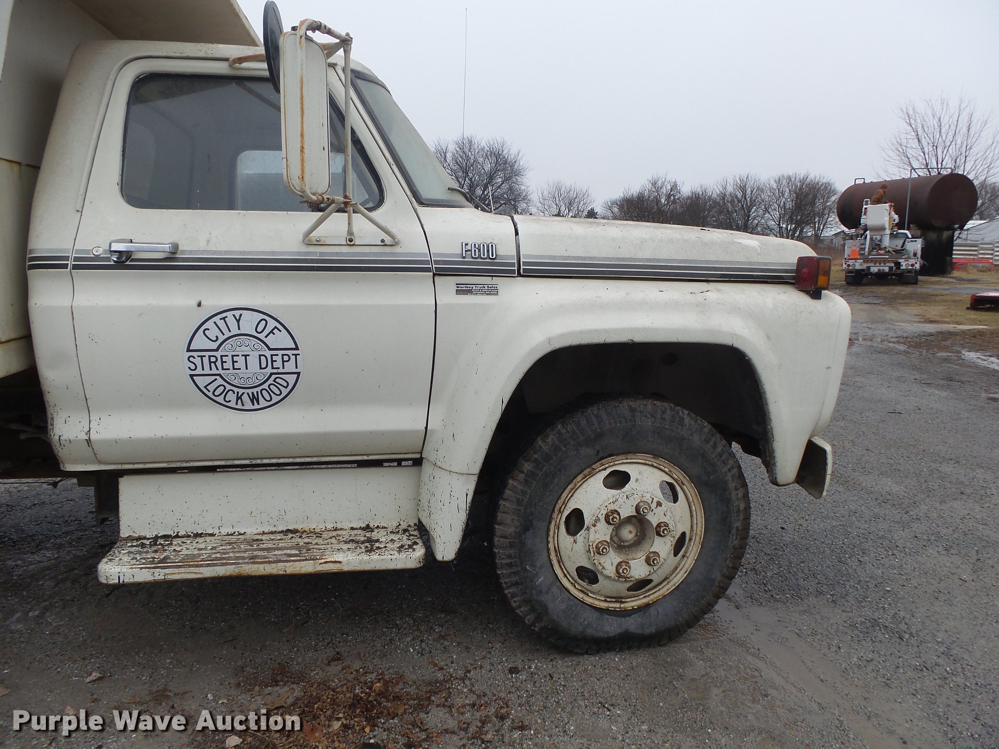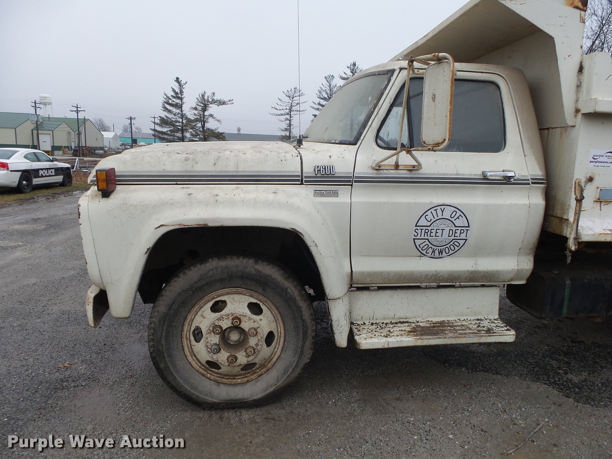 Purple Wave is selling a used Construction Dump Truck in Missouri. This item is a 1978 Ford F600 dump truck with the following: 437 miles on odometer, Non-operational odometer, Eight cylinder gas engine, Eight speed manual transmission, Single axle, Heat, Manual windows and locks, Suspension seat, PTO, Smith 9X87 steel dump bed, 9'L x 87"W, 31" side height, 12" side board height, Single ram hoist, Manual operated end gate, Single fuel tank, 176" wheelbase, Spring suspension, Air brakes, 8.25-20 tires, GVWR 19,200 lbs, Unknown operating condition, Possible transmission issues, Oil leaks