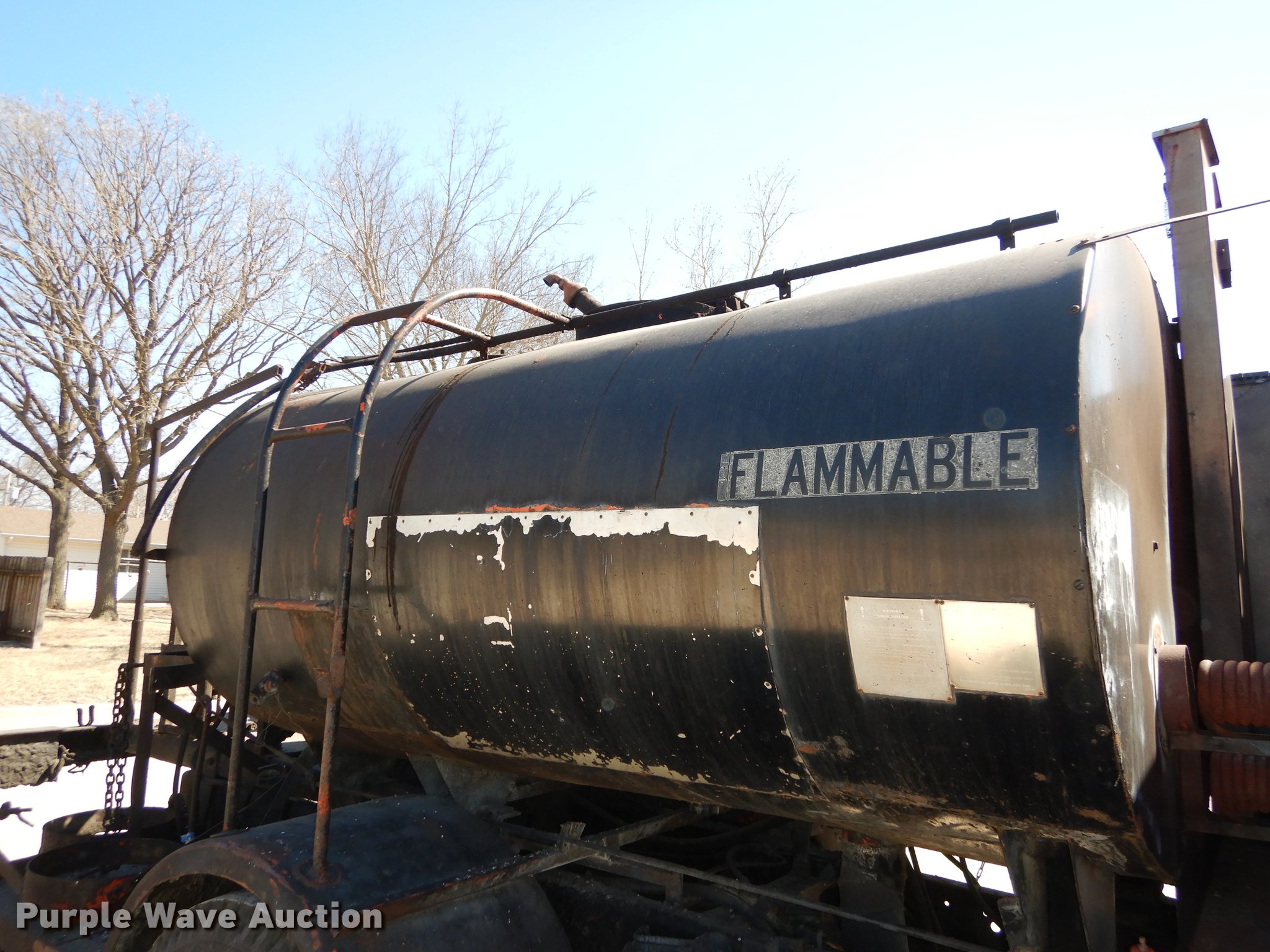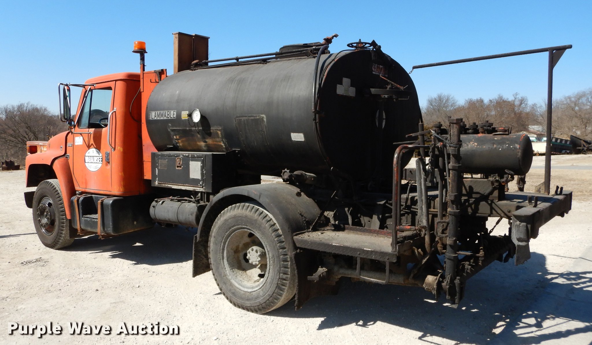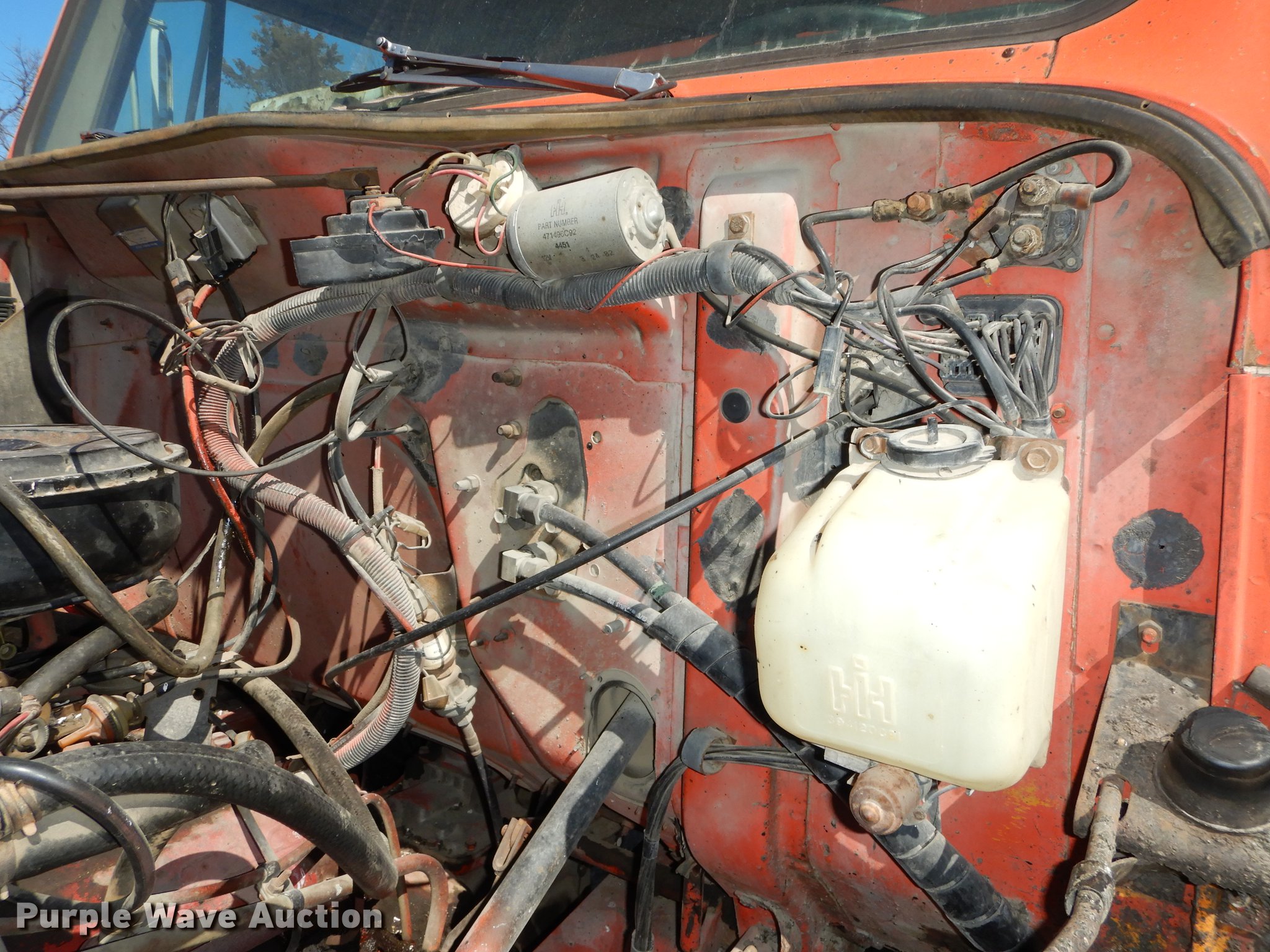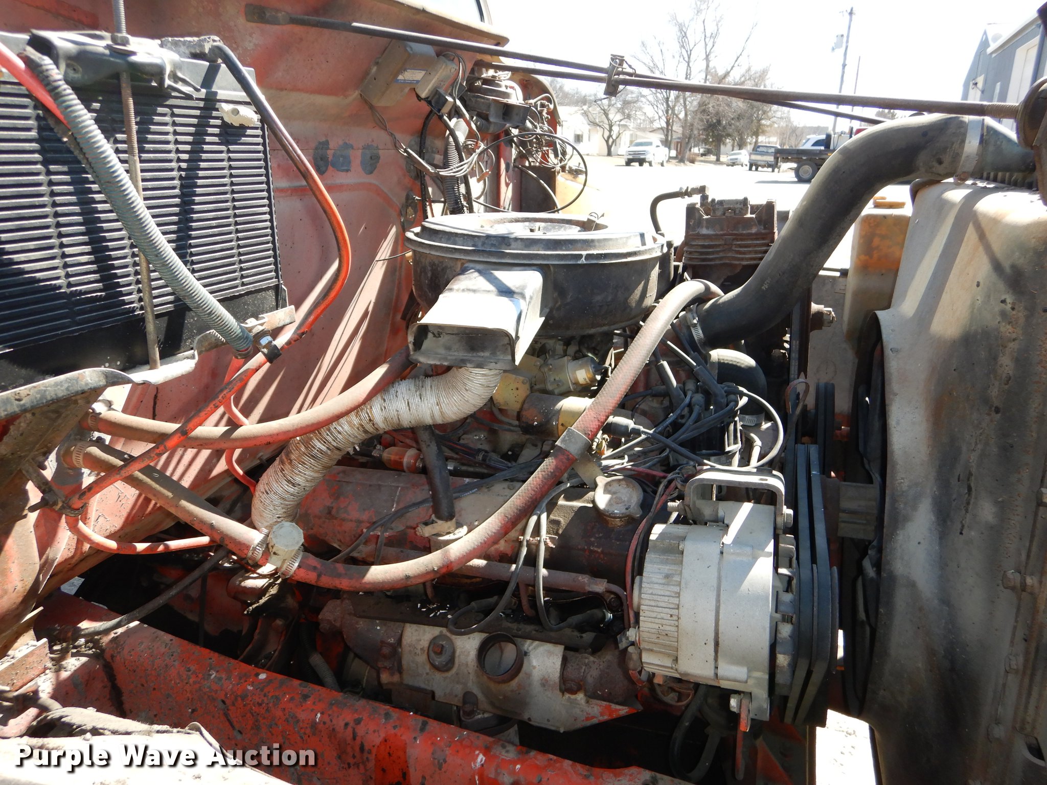 Purple Wave is selling a used Oil Distributor Truck in Kansas. This item is a 1982 International S1700 oil distributor truck with the following: 6,504 miles on odometer, 3,201 hours on meter, International 354 eight cylinder gas engine, Five speed manual transmission, Two speed rear end, Single axle, Heat, Vinyl interior, Beacon light, Toolbox, Chelsea PTO, 1,000 gallon tank, Approx. 200 gallon of oil in tank, Propane burner, In-cab controls, 14'W folding spray boom, (4) extensions, 12", (3) 2',, Diesel tank for nozzle washing, Single fuel tank, Spring suspension, Air brakes, 152" wheelbase, Goodyear 9.00-20 tires, Carburetor issues, Decals will be painted over, Nozzles missing, Propane tanks not included, Last used one and a half years ago