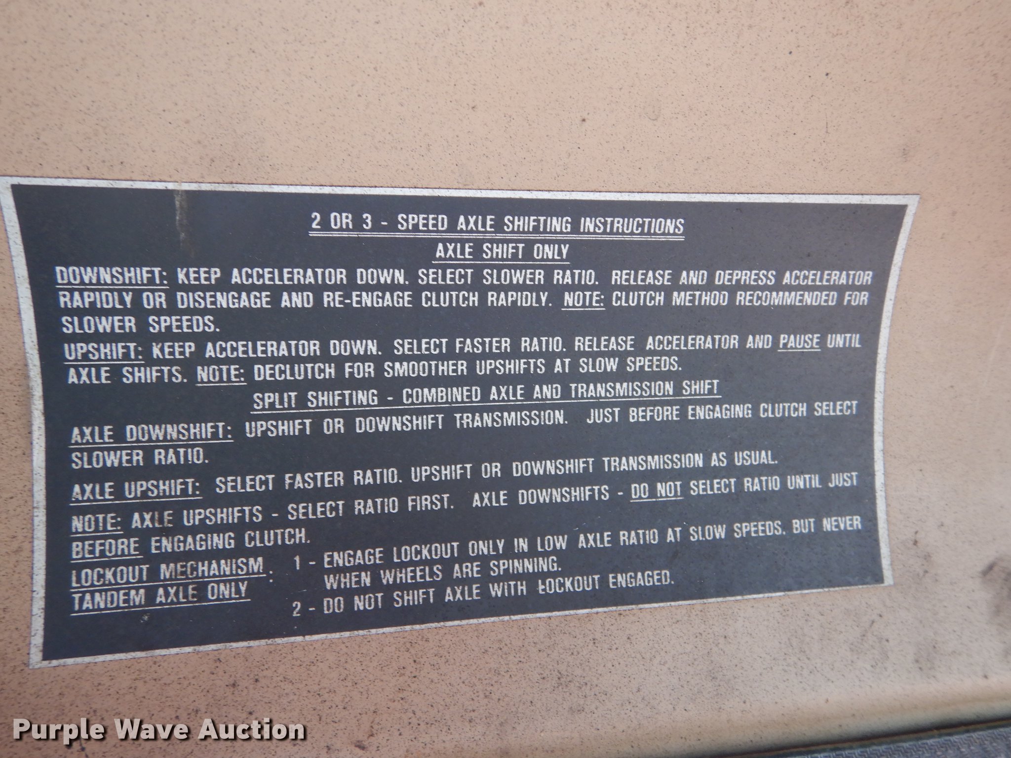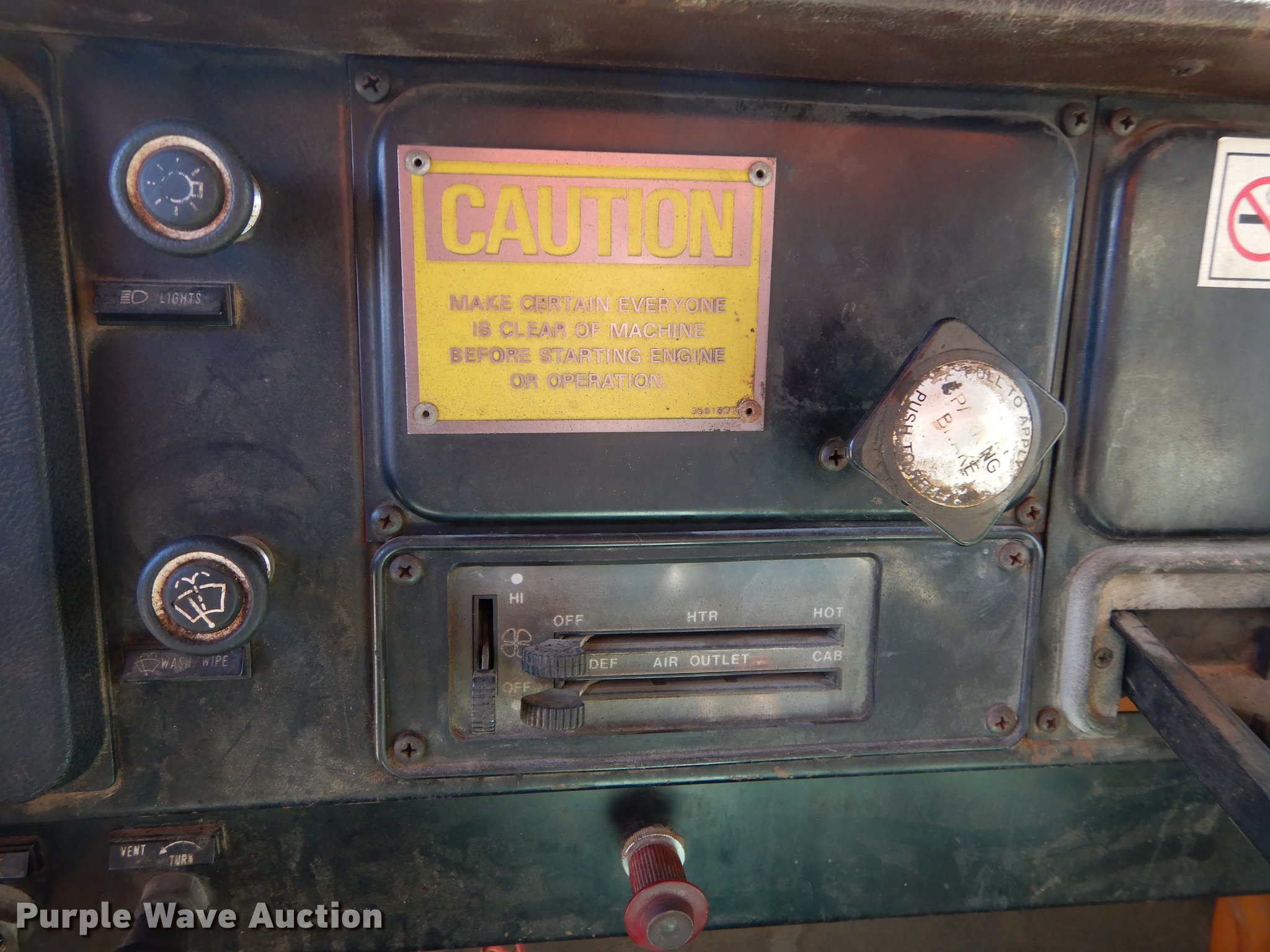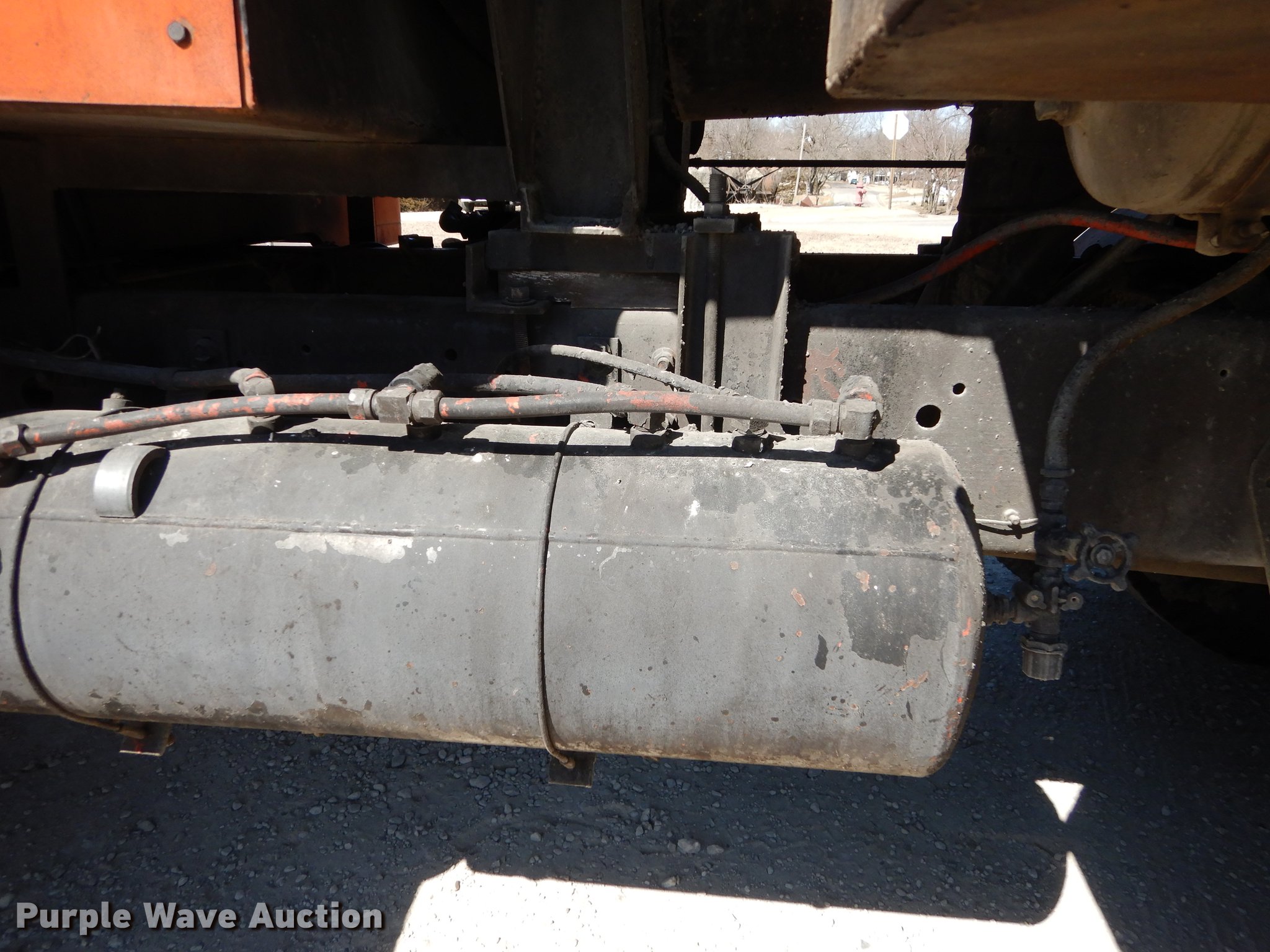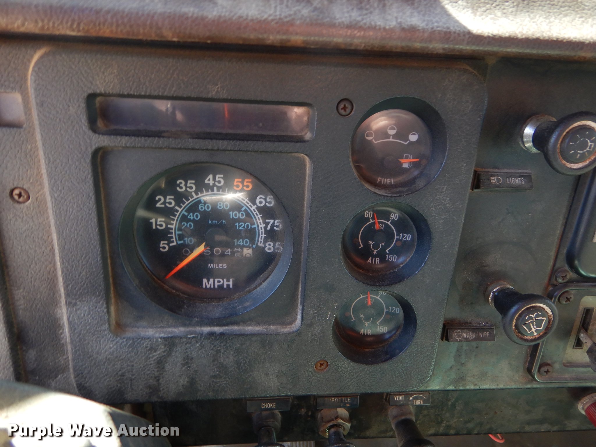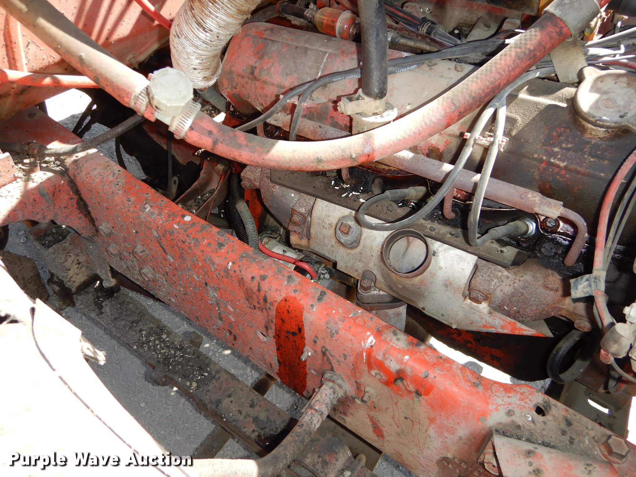 Purple Wave is selling a used Oil Distributor Truck in Kansas. This item is a 1982 International S1700 oil distributor truck with the following: 6,504 miles on odometer, 3,201 hours on meter, International 354 eight cylinder gas engine, Five speed manual transmission, Two speed rear end, Single axle, Heat, Vinyl interior, Beacon light, Toolbox, Chelsea PTO, 1,000 gallon tank, Approx. 200 gallon of oil in tank, Propane burner, In-cab controls, 14'W folding spray boom, (4) extensions, 12", (3) 2',, Diesel tank for nozzle washing, Single fuel tank, Spring suspension, Air brakes, 152" wheelbase, Goodyear 9.00-20 tires, Carburetor issues, Decals will be painted over, Nozzles missing, Propane tanks not included, Last used one and a half years ago