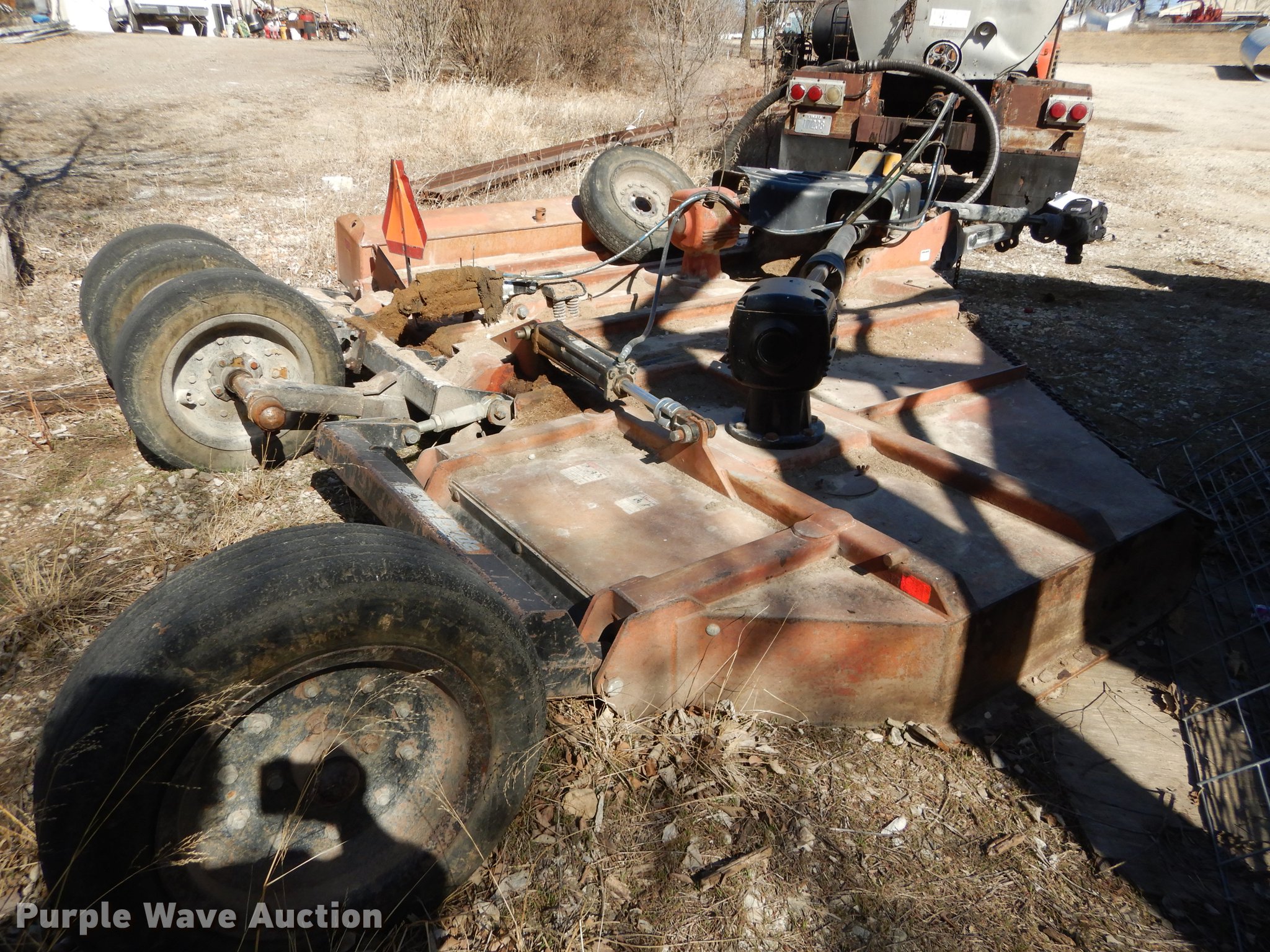 Purple Wave is selling a used Mower, Cutter, Shredder in Kansas. This item is a Land Pride ditch rotary mower with the following: 10'W, 540 PTO, Foam-filled tires, Worn, One hub broken