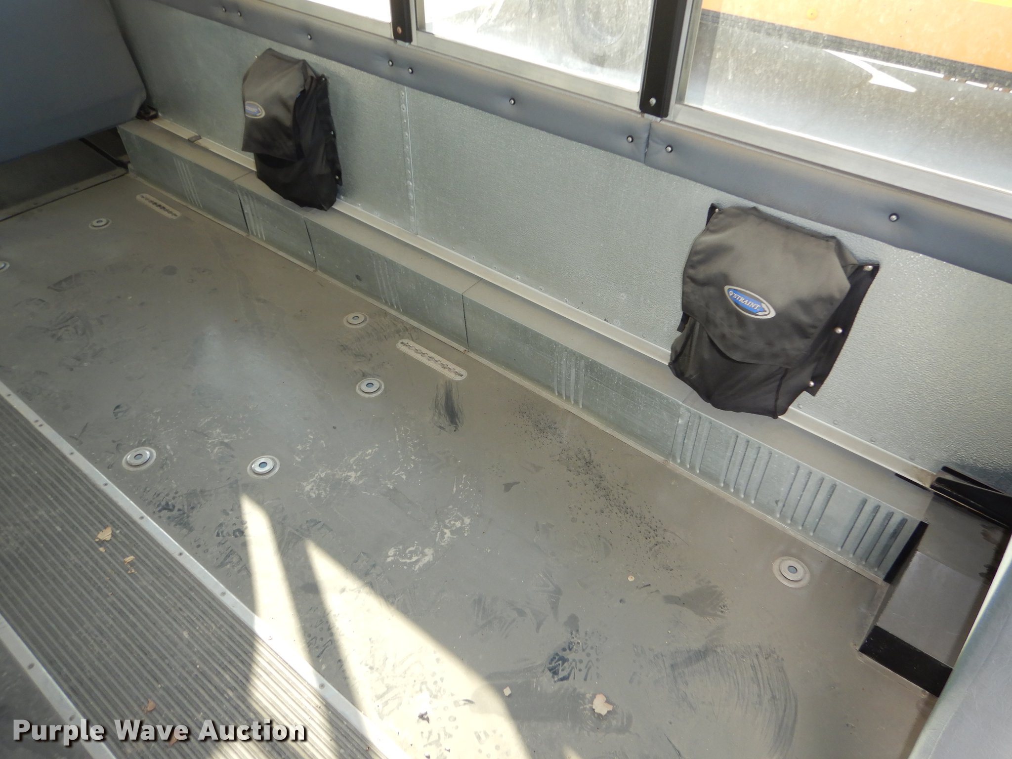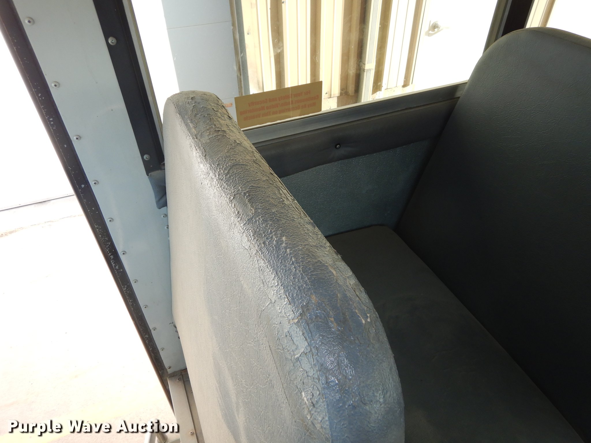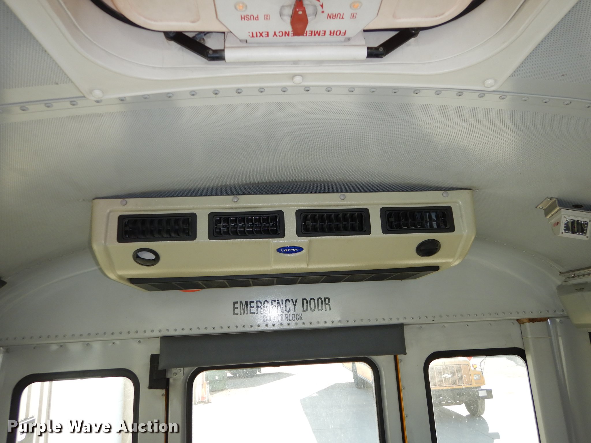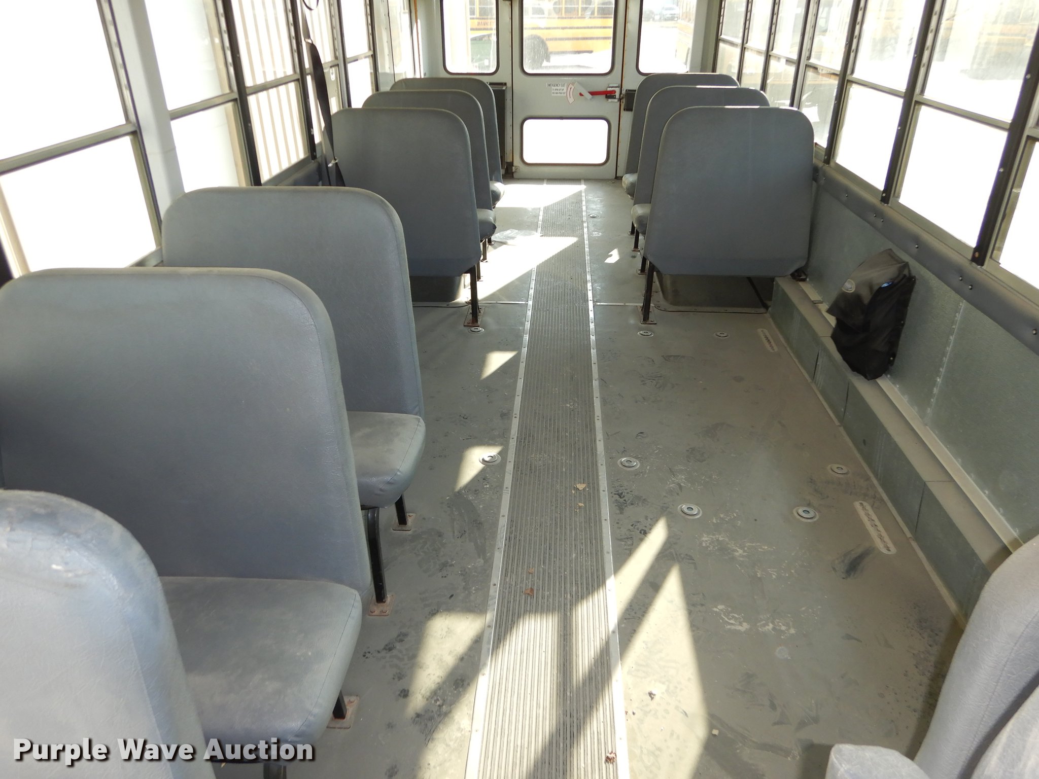 Purple Wave is selling a used Bus in Kansas. This item is a 2006 International CE200 school bus with the following: 123,609 miles on odometer, 8,871 hours on meter, International VT365 6.0L V8 turbo diesel engine, Automatic transmission, Single axle, Heat, Cruise, AM/FM/cassette, Heated mirrors, Air suspension drivers seat, Vinyl interior, 10 passenger capacity, One set of seat belts, (4) wheelchair tie down areas, Ceiling, rear, and side emergency exits, Lighted stop sign, Crossing bar, Carrier roof AC unit, Block heater, Backup alarm, Fear tow hooks, Spring suspension, Hydraulic brakes, 218" wheelbase, Goodyear 10R22.5 tires, GVWR 27,500 lbs, Unit# 35