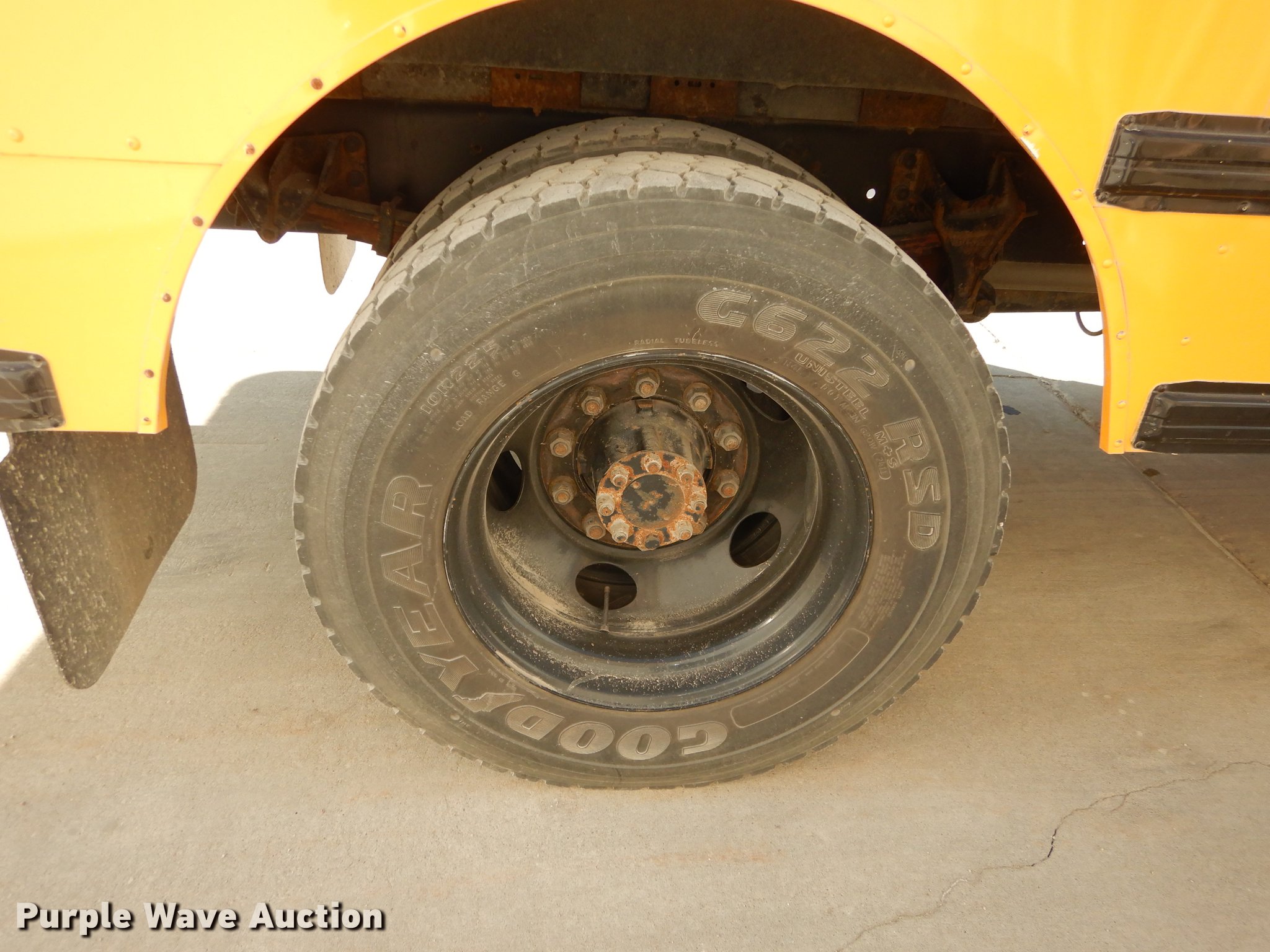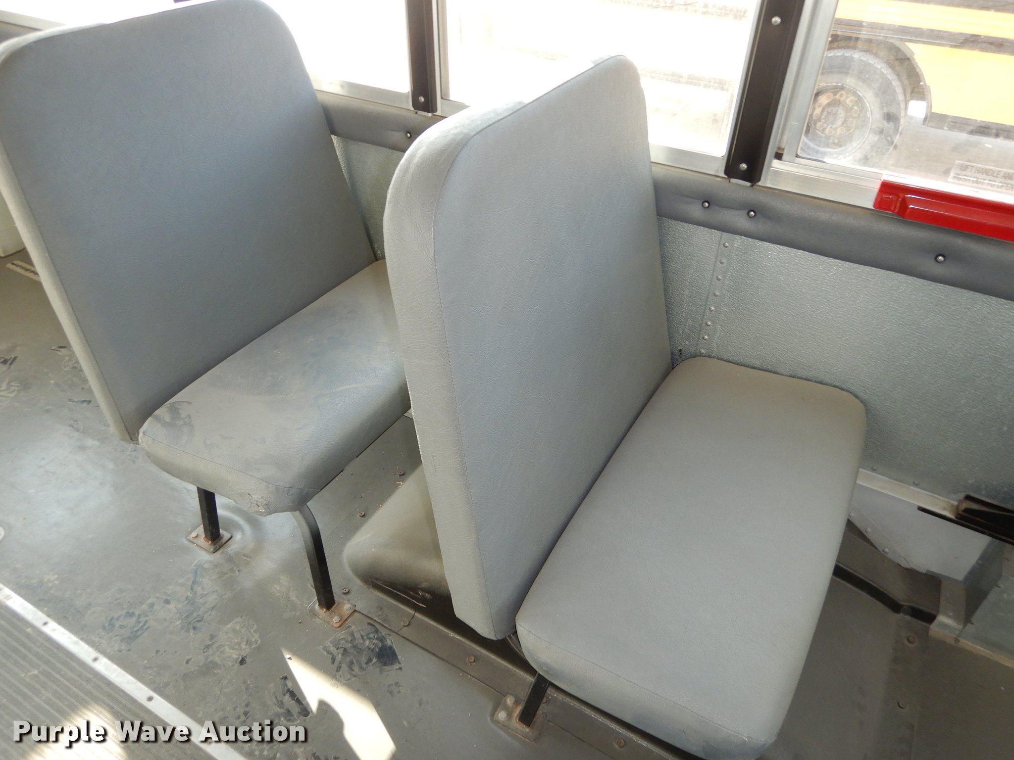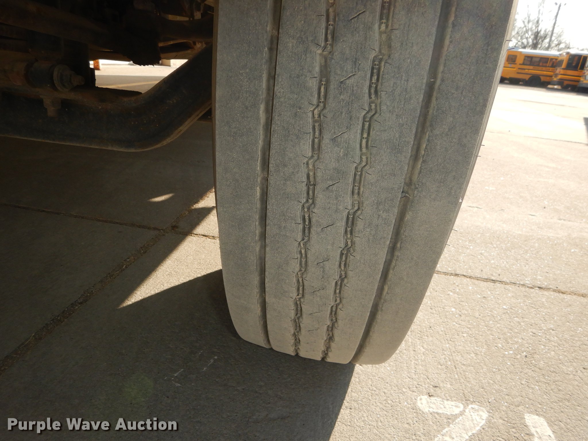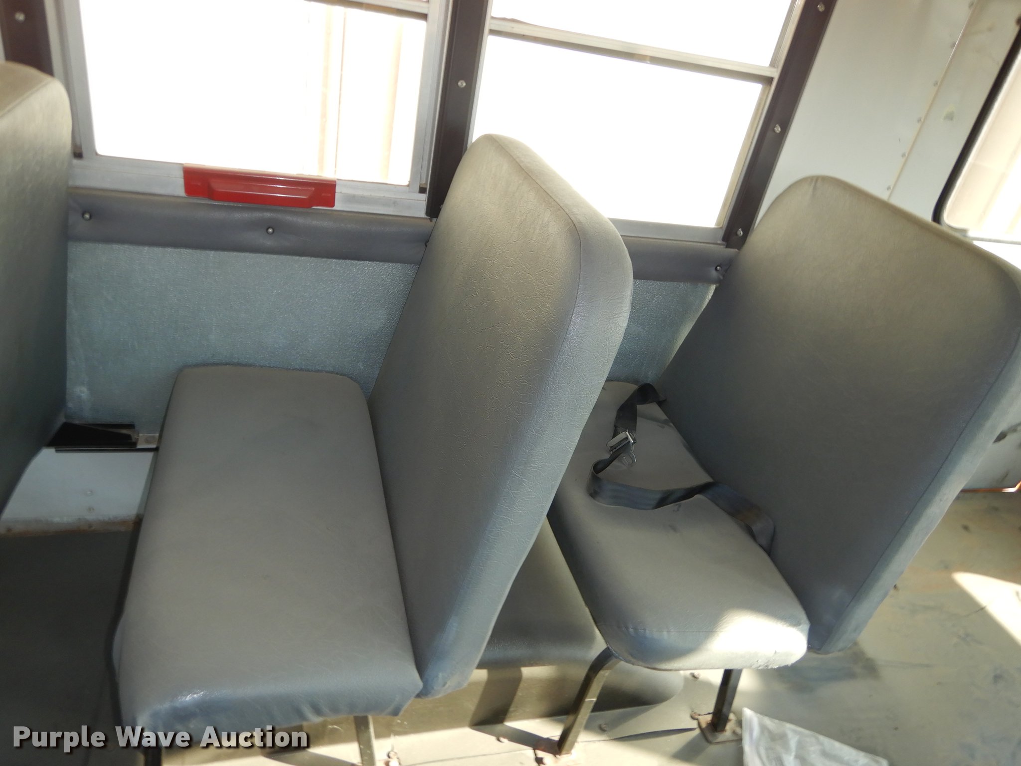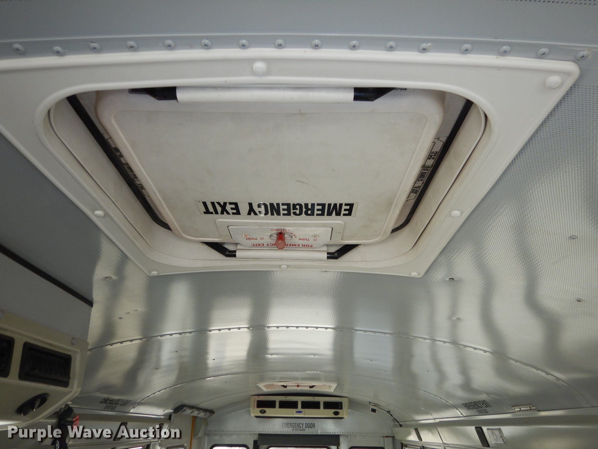 Purple Wave is selling a used Bus in Kansas. This item is a 2006 International CE200 school bus with the following: 123,609 miles on odometer, 8,871 hours on meter, International VT365 6.0L V8 turbo diesel engine, Automatic transmission, Single axle, Heat, Cruise, AM/FM/cassette, Heated mirrors, Air suspension drivers seat, Vinyl interior, 10 passenger capacity, One set of seat belts, (4) wheelchair tie down areas, Ceiling, rear, and side emergency exits, Lighted stop sign, Crossing bar, Carrier roof AC unit, Block heater, Backup alarm, Fear tow hooks, Spring suspension, Hydraulic brakes, 218" wheelbase, Goodyear 10R22.5 tires, GVWR 27,500 lbs, Unit# 35