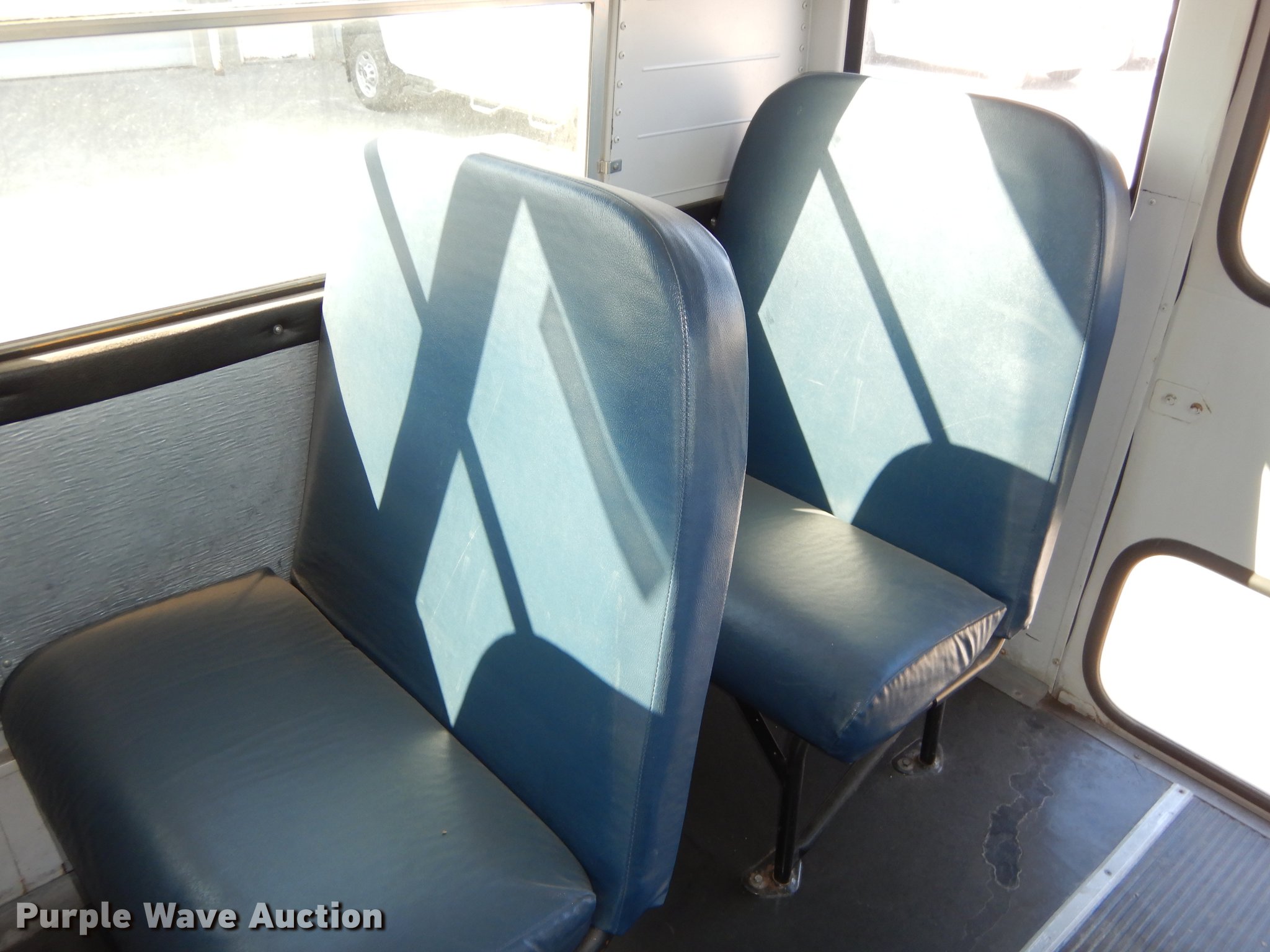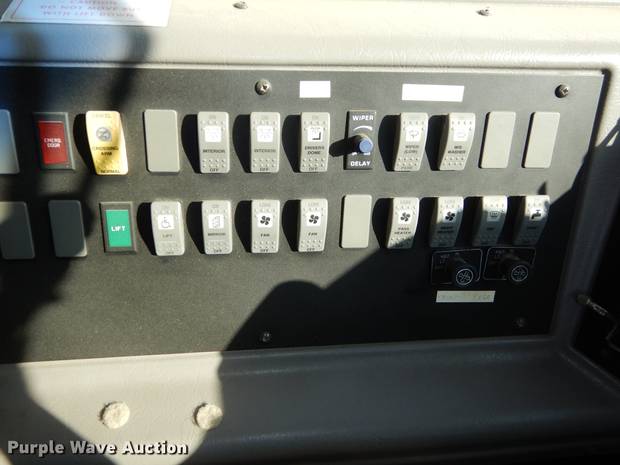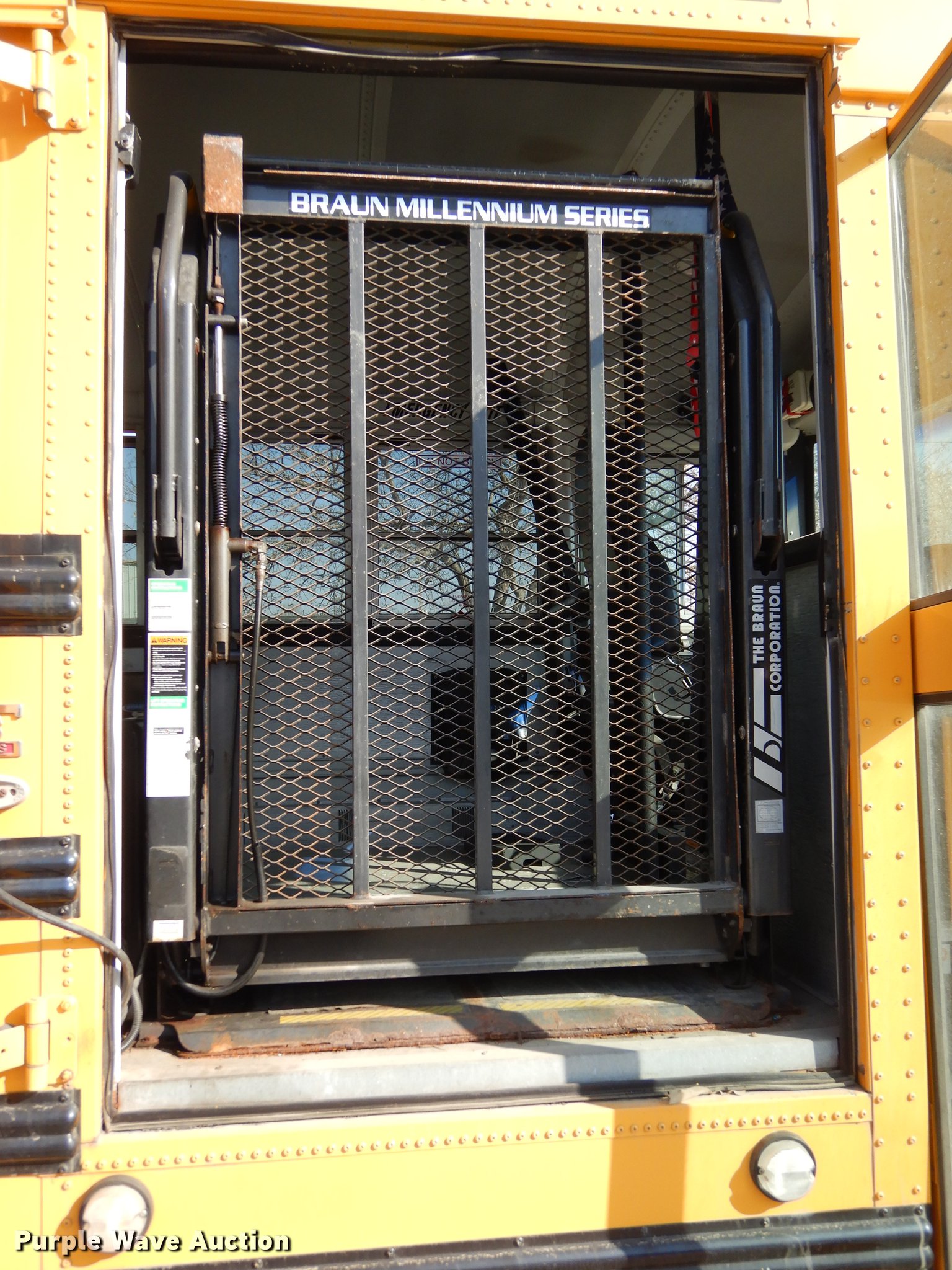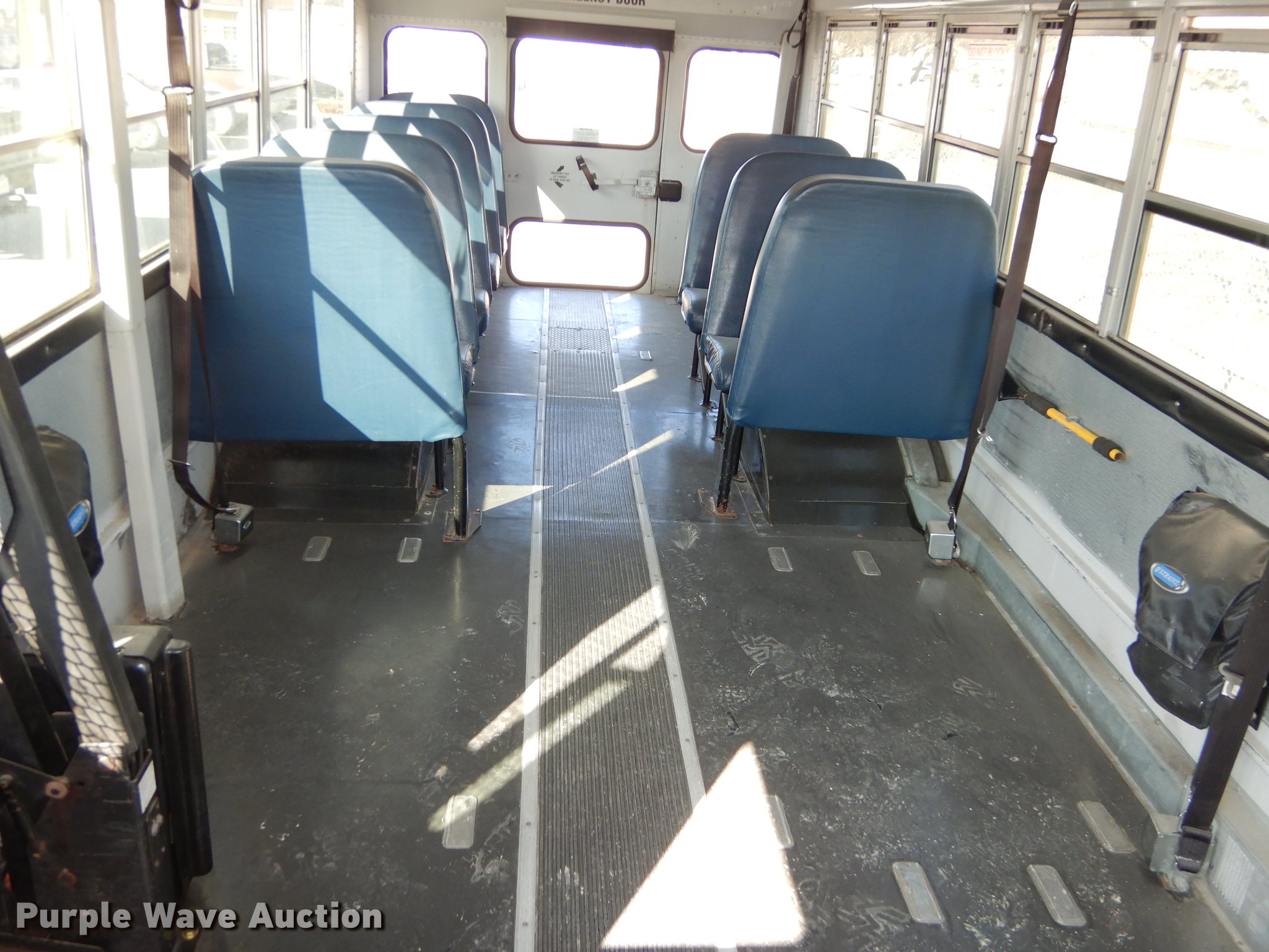 Purple Wave is selling a used Bus in Kansas. This item is a 2004 Freightliner FS65 Thomas school bus with the following: 153,414 miles on odometer, 9,624 hours on meter, Caterpillar C7 7.2L L6 turbo diesel engine, Automatic transmission, Single axle, Heat, Cruise, AM/FM/cassette, Heated mirrors, Leather air suspension drivers seat, Vinyl passenger seat, 10 passenger capacity, Braun wheelchair lift, (4) wheelchair tie down areas, Ceiling, rear, and side emergency exits, Lighted stop sign, TransAir roof AC unit, Block heater, Backup alarm, Front and rear tow hooks, Spring suspension, Hydraulic brakes, 192" wheelbase, 10R22.5 tires, GVWR 25,500 lbs, Unit# 39