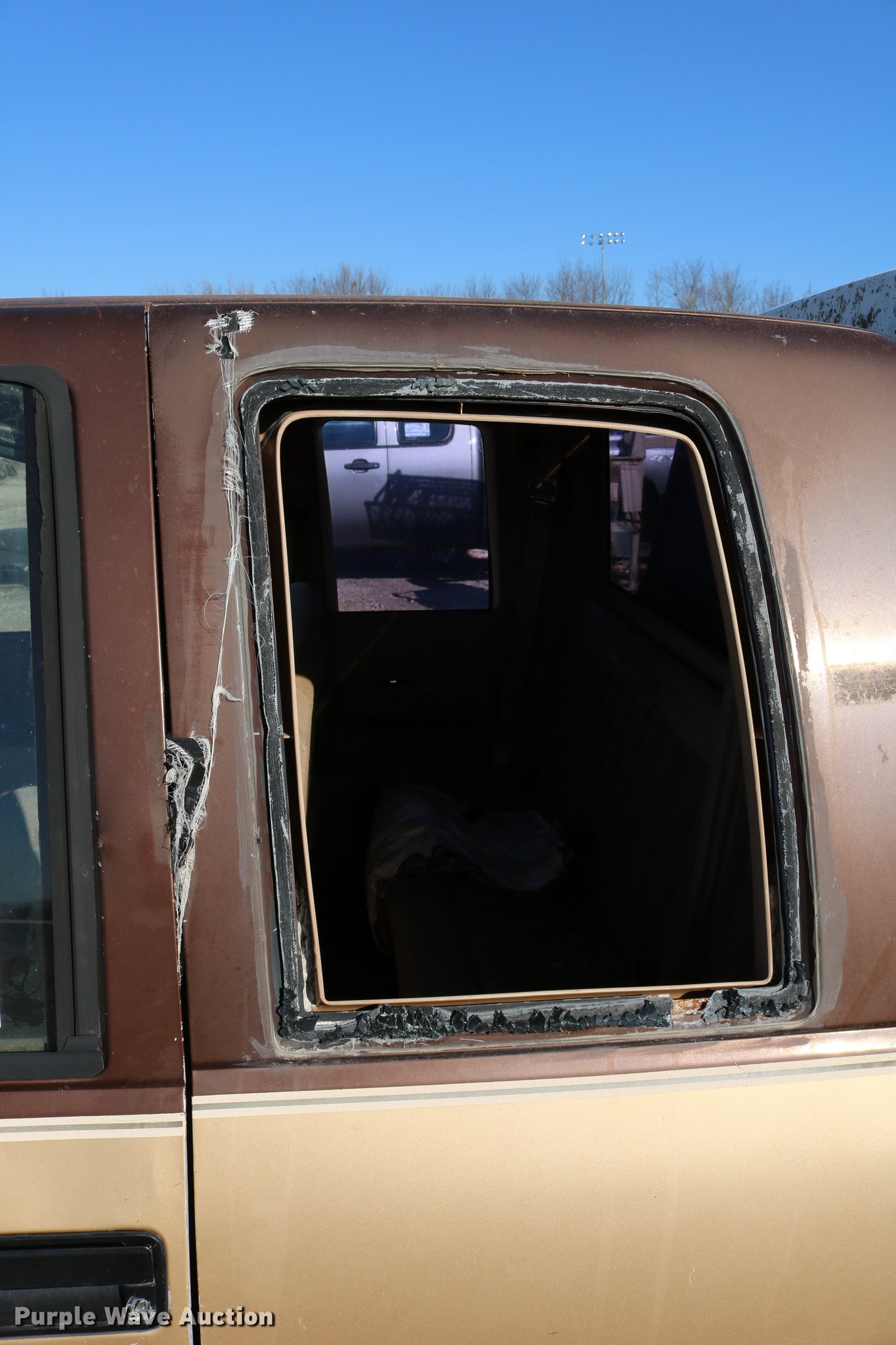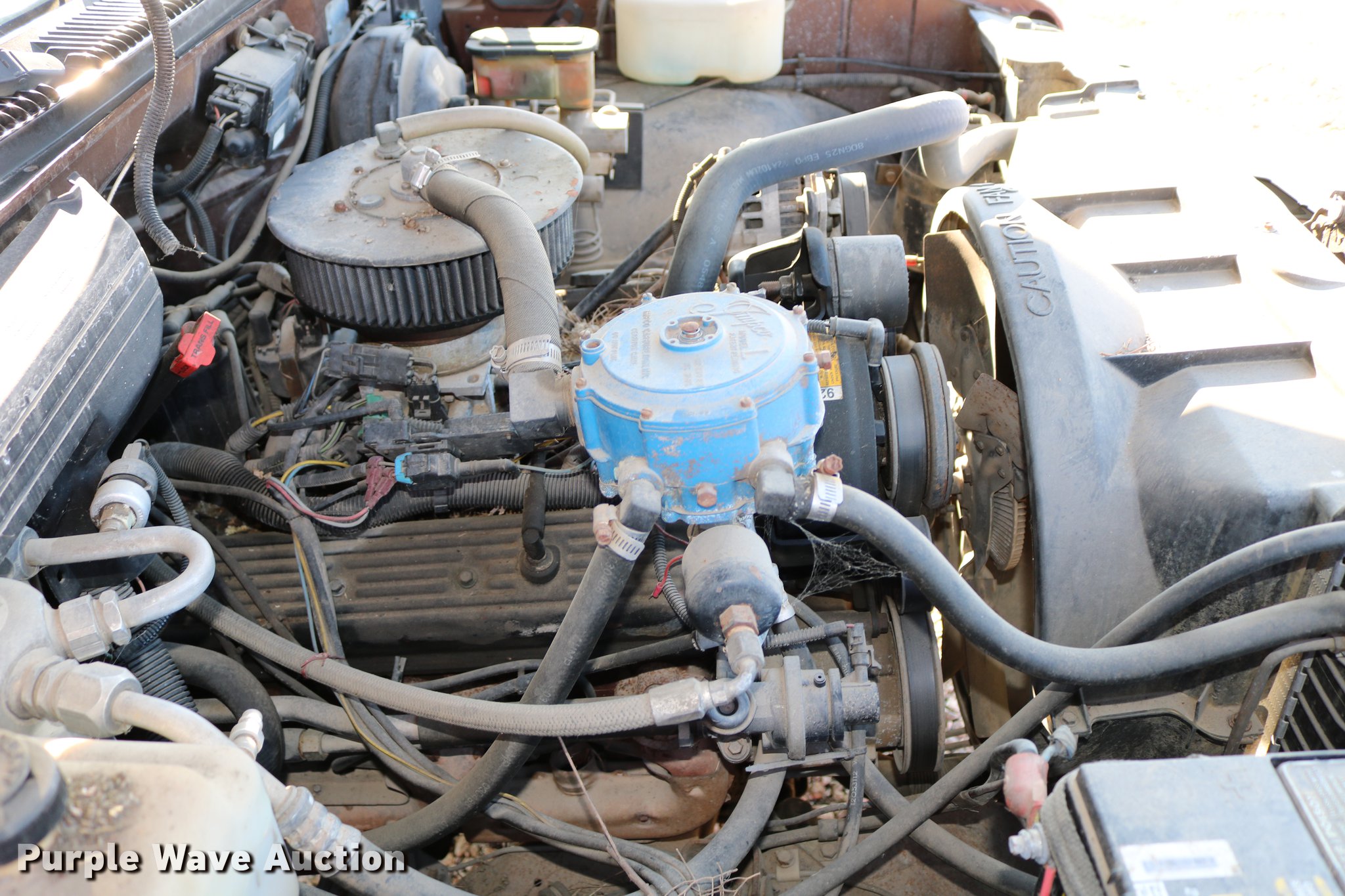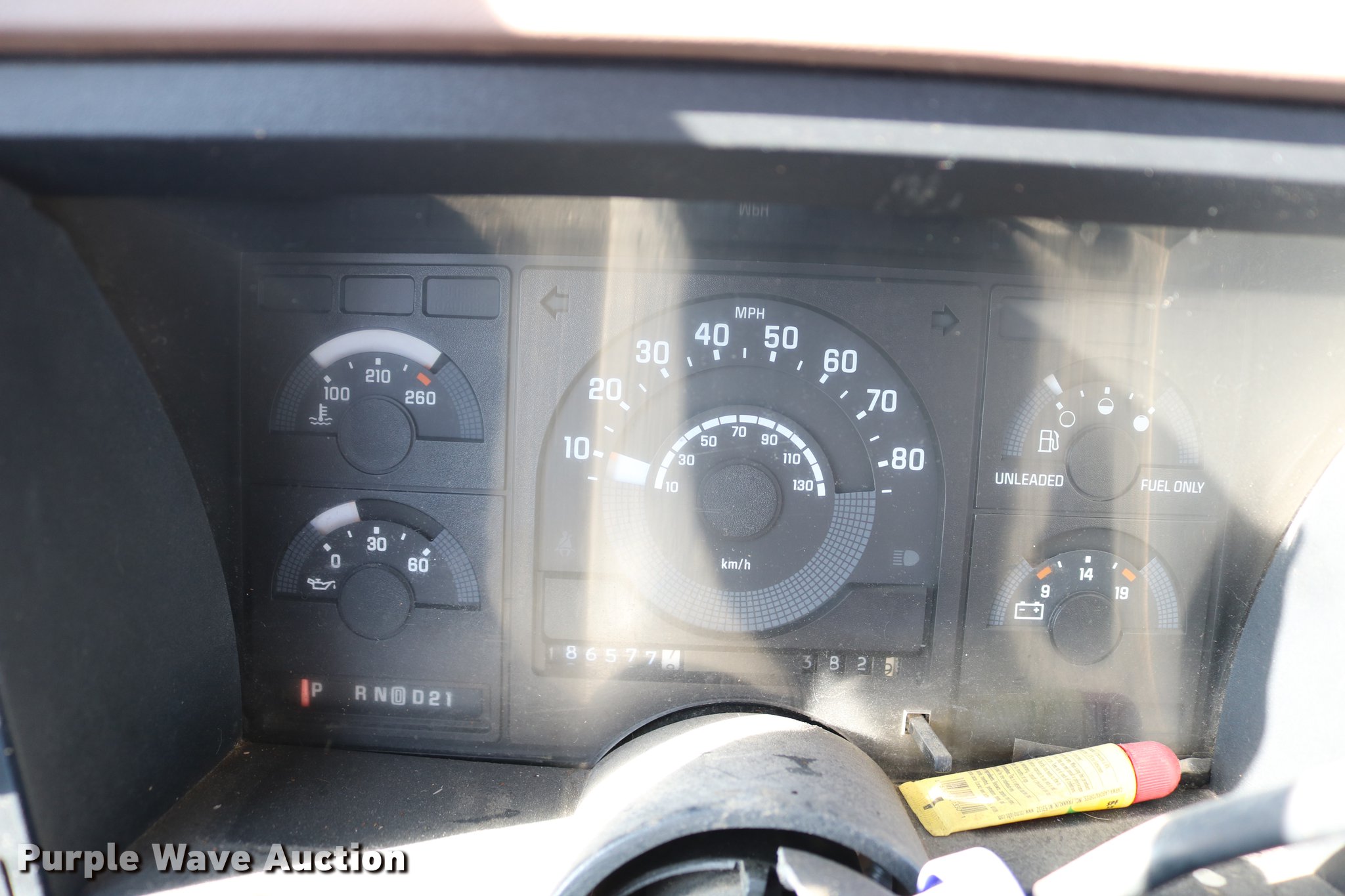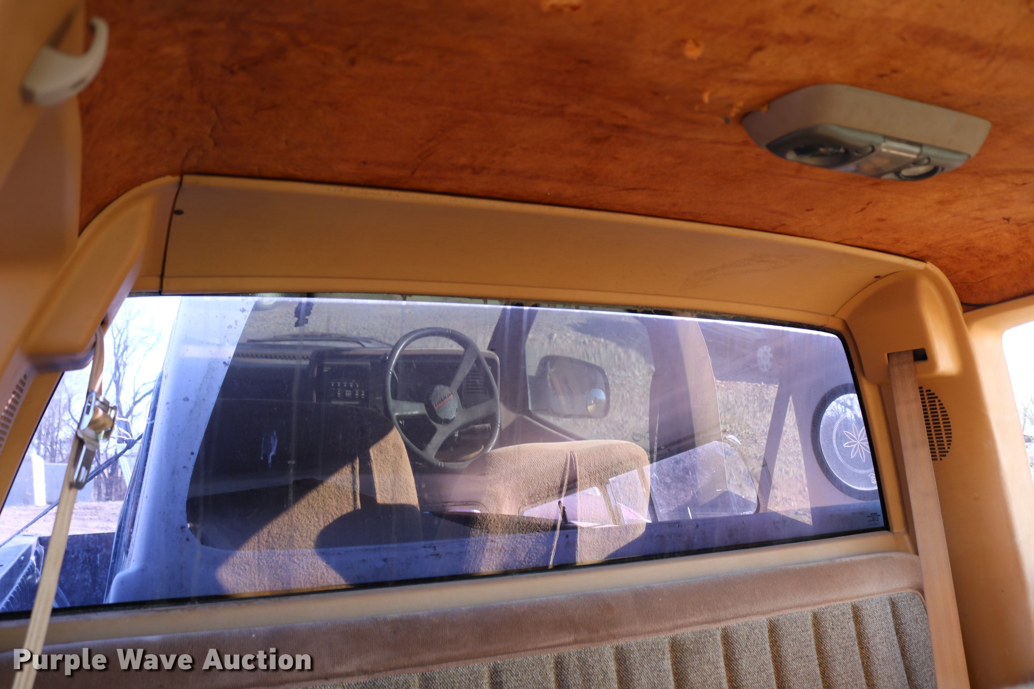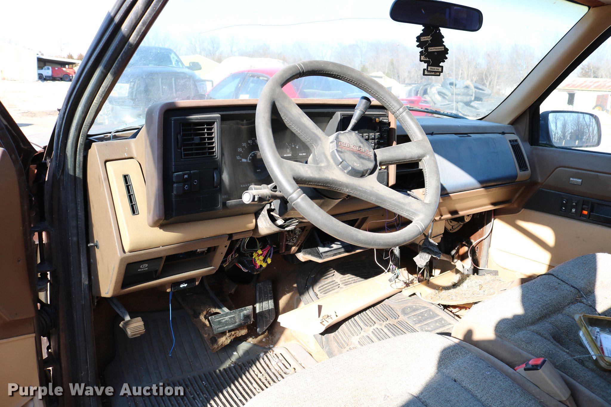 Purple Wave is selling a used 1/2 Ton Pickup or Van in Kansas. This item is a 1988 Chevrolet 1500 Ext. Cab pickup truck with the following: 186,578 miles on odometer, 5.7L V8 OHV 16V propane engine, Automatic transmission, Tilt, AM/FM, Power windows and locks, Cloth interior, Long bed, 31x10.50R15 front tires, 205/65R15 rear tire, Contents included, No keys, Rear drivers window broken, Dash damaged, No headliner, Cracked windshield, No AC or heat controls, Non-operational unit
