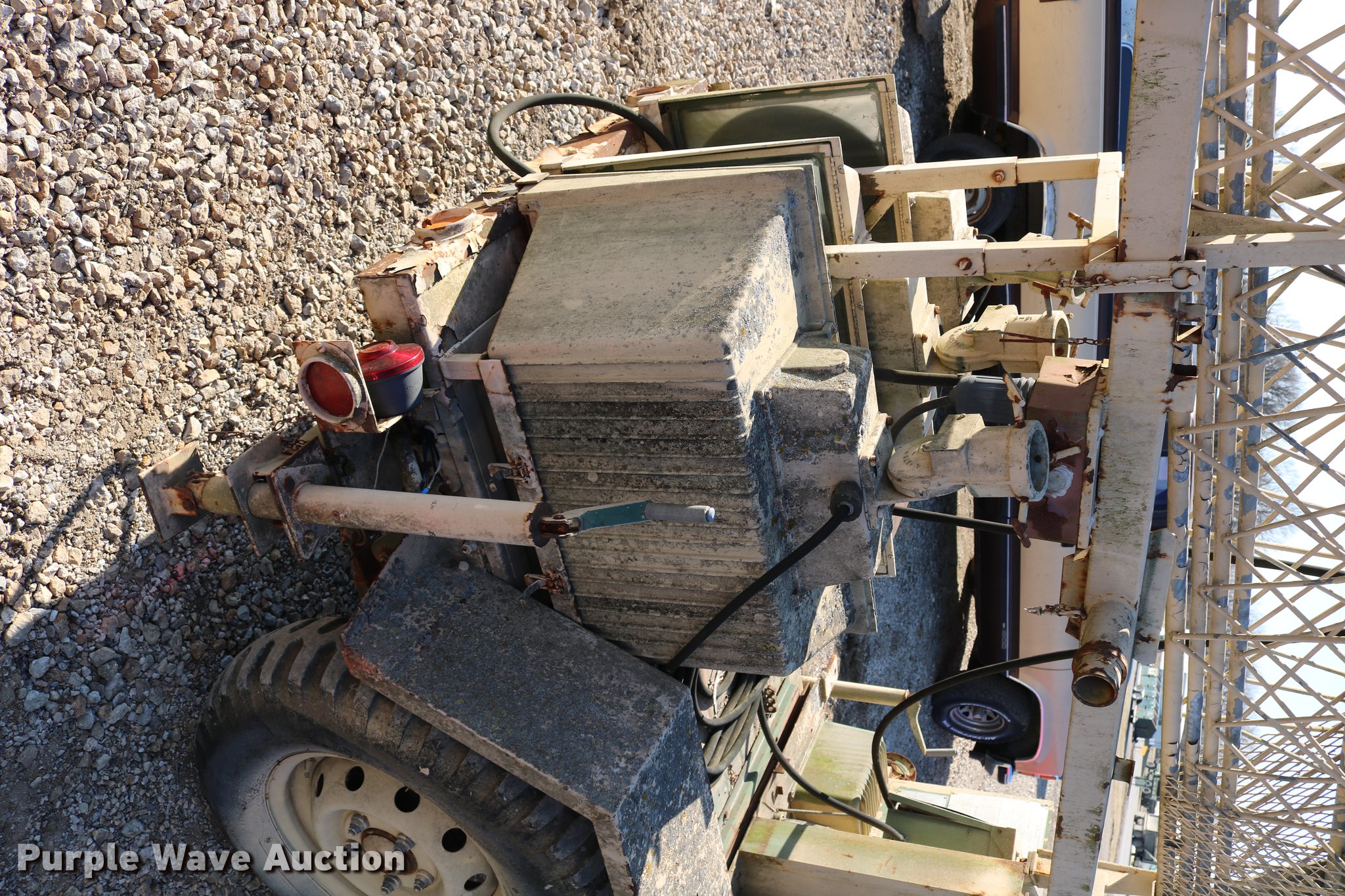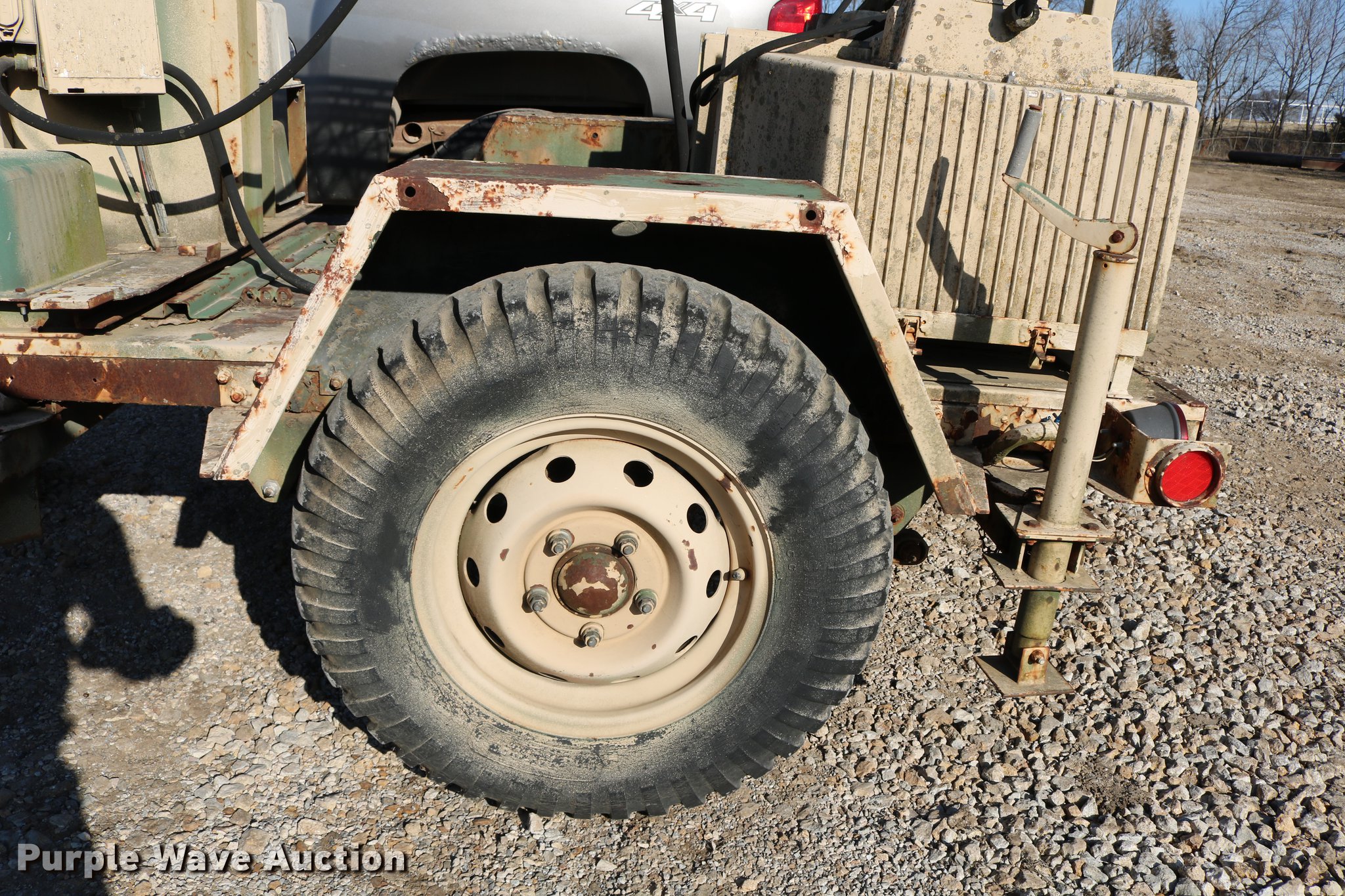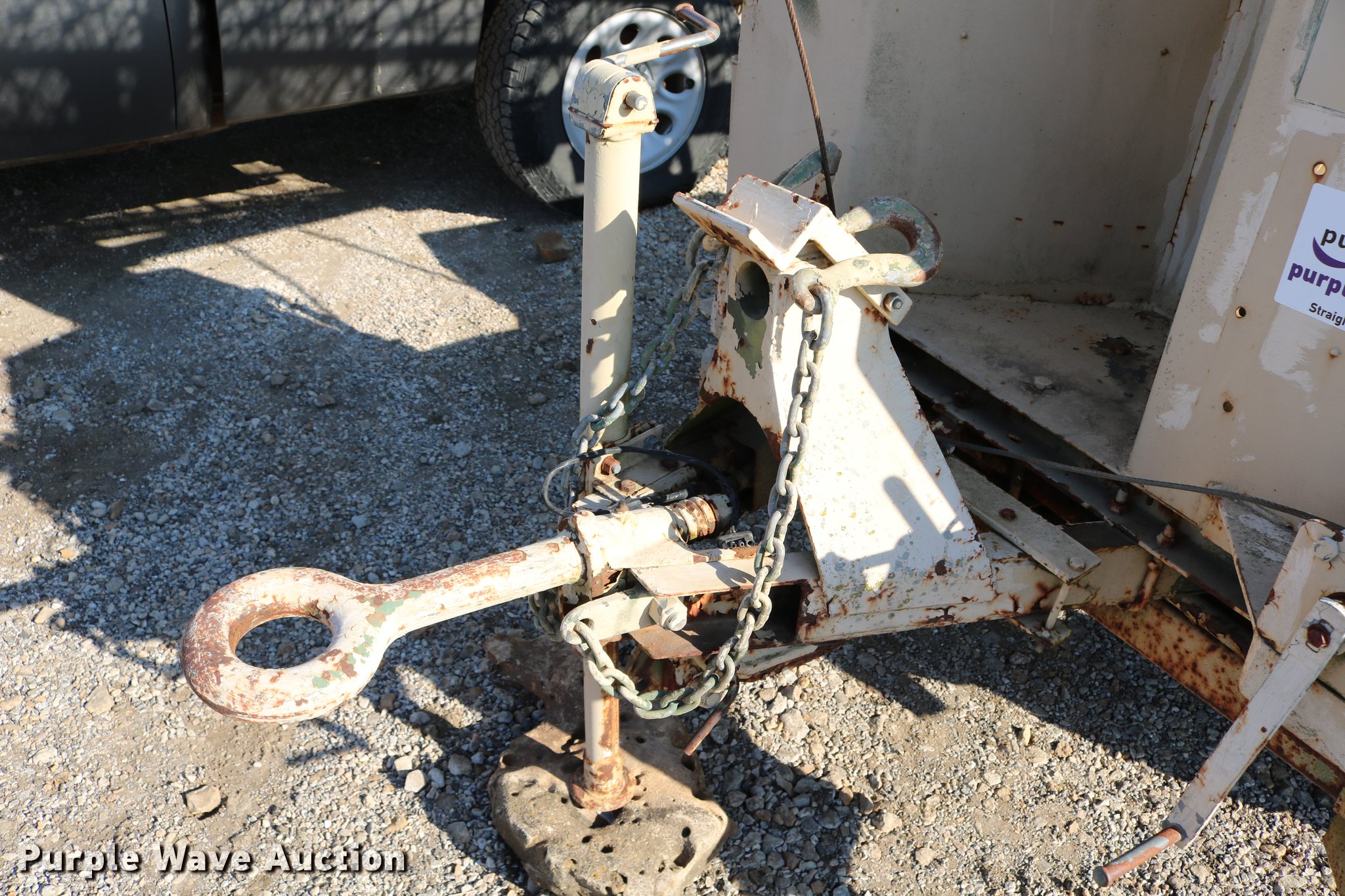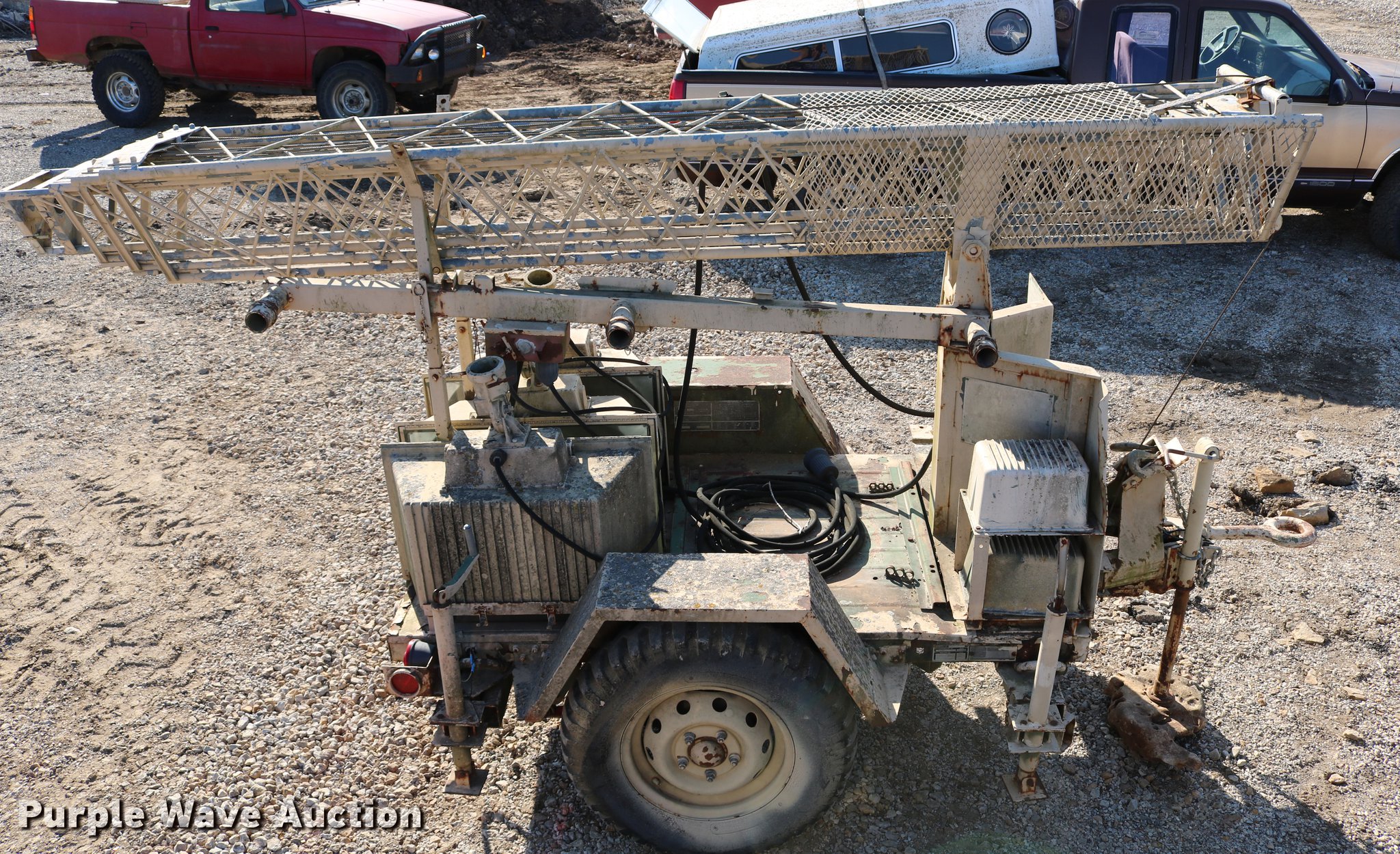 Light plant. 9'L overall, 6'4"L x 62"W, (4) 10' sections of light tower, (3) light sets Unknown operating condition, (3) outriggers Pintle hitch, 7.00-16 tires, No generator, Serial 350659. Transfer of ownership documentation will be a bill of sale. 1414 P50 Rd. Eureka, KS 67045