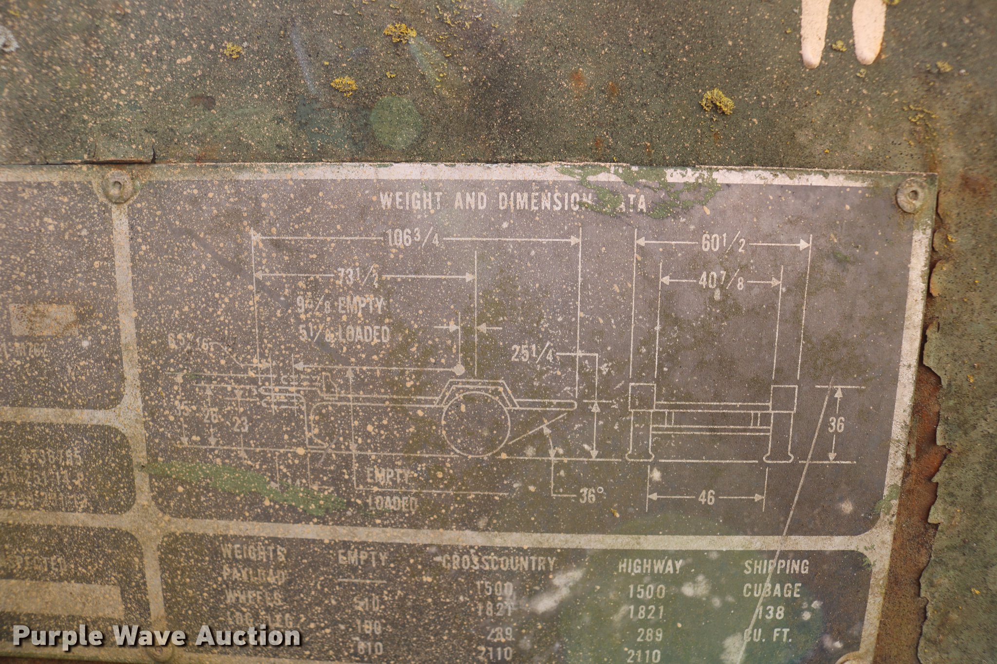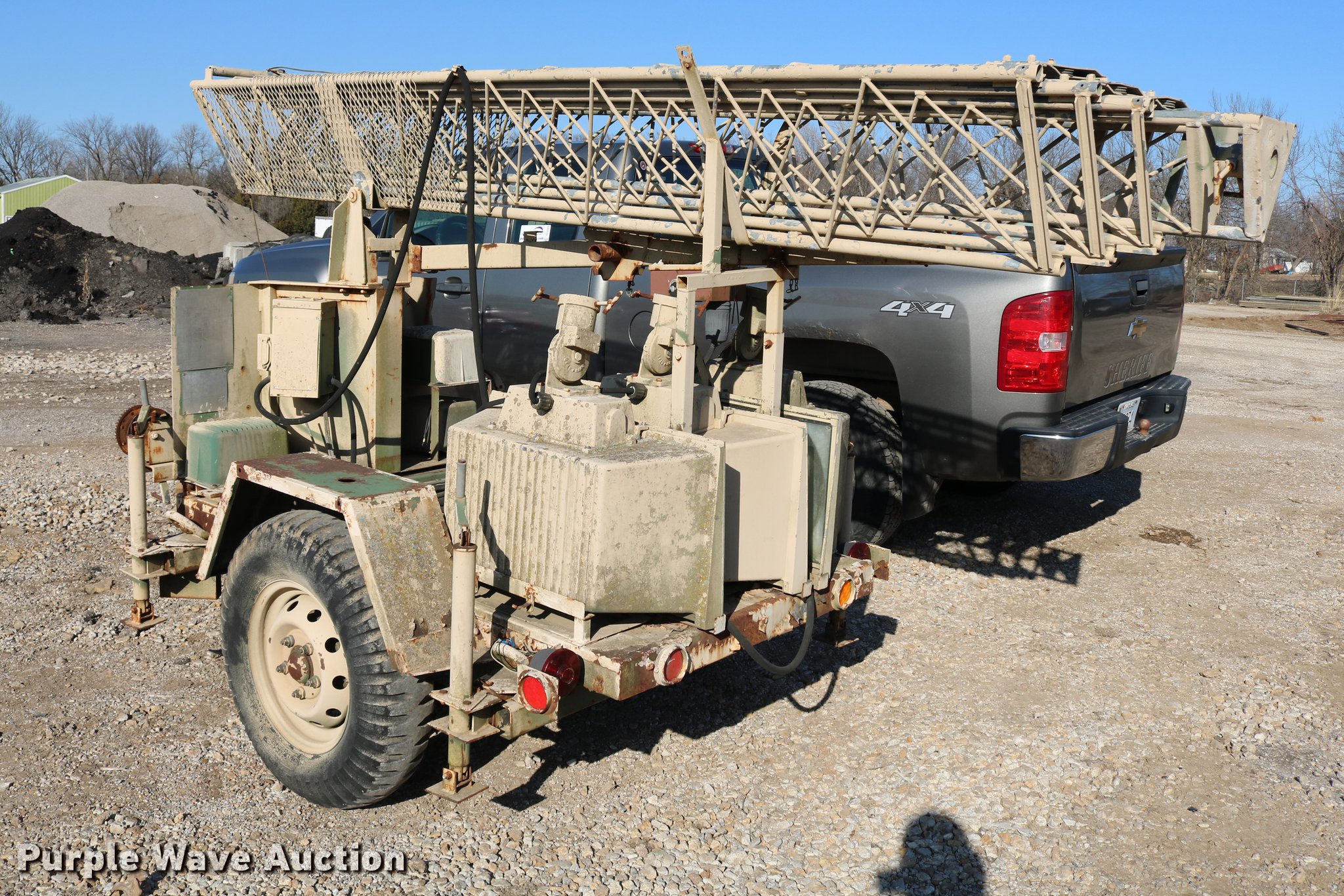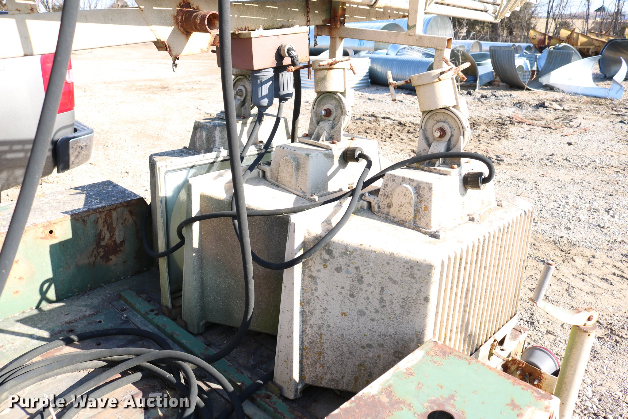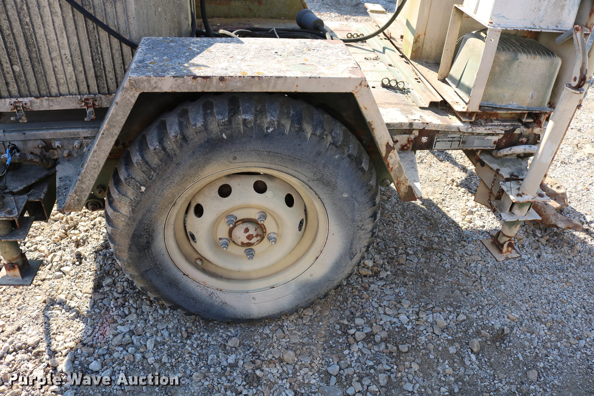 Light plant. 9'L overall, 6'4"L x 62"W, (4) 10' sections of light tower, (3) light sets Unknown operating condition, (3) outriggers Pintle hitch, 7.00-16 tires, No generator, Serial 350659. Transfer of ownership documentation will be a bill of sale. 1414 P50 Rd. Eureka, KS 67045