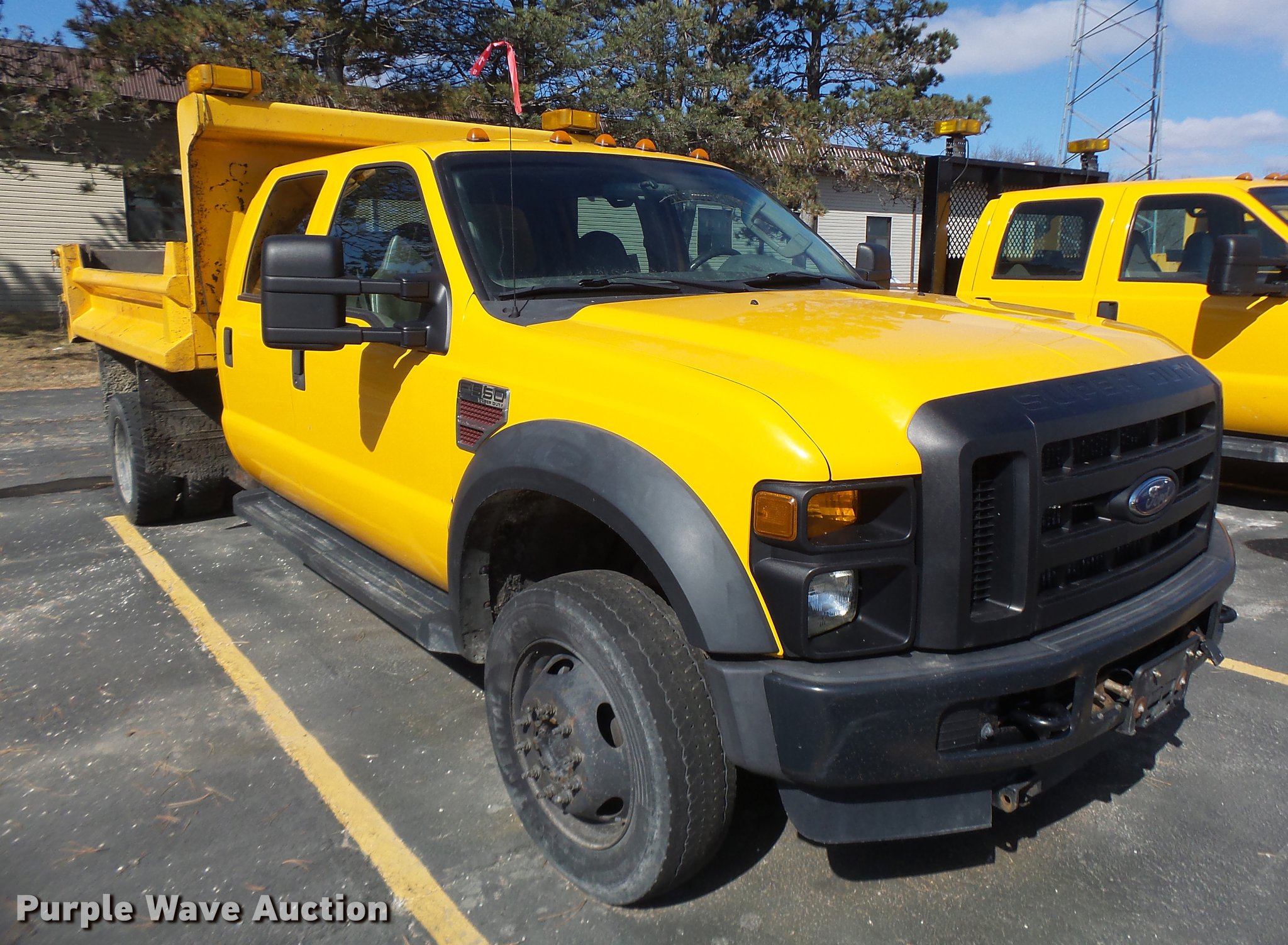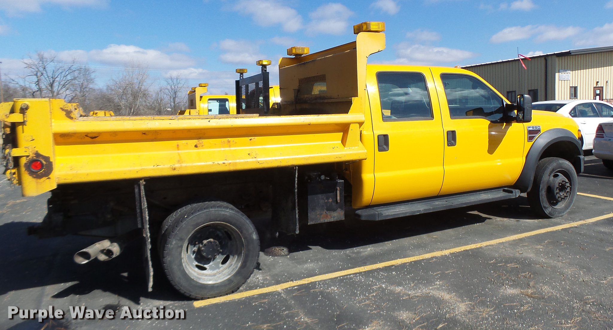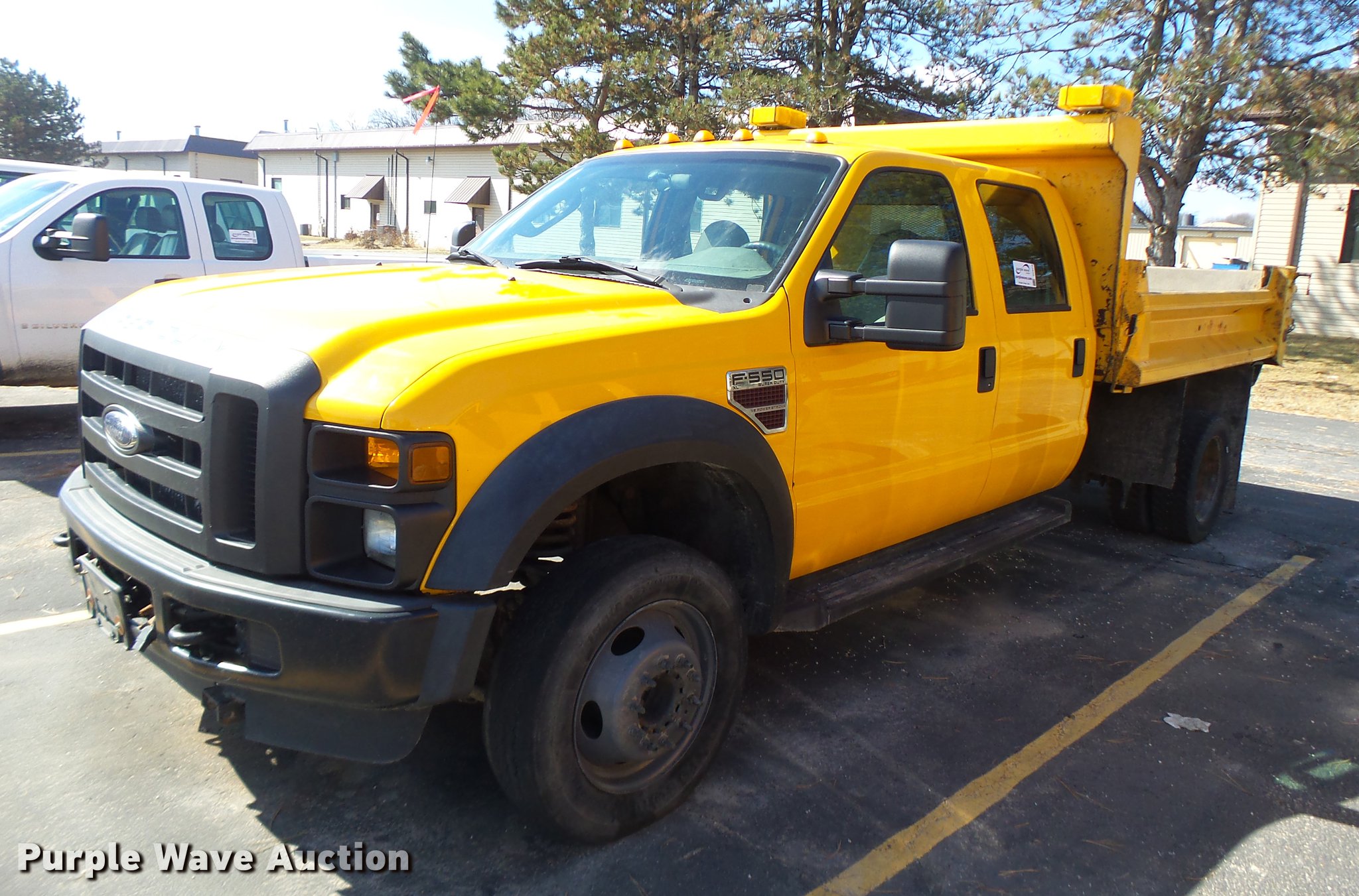 Purple Wave is selling a used Flat Bed Truck in Missouri. This item is a 2008 Ford F550 Crew Cab flatbed dump truck with the following: 188,950 miles on odometer, 6.4L V8 OHV 32V turbo diesel engine, Automatic transmission, AC and heat, Cruise, AM/FM, Vinyl interior, Running boards, 9'L x 8'W dump flatbed, Receiver hitch, Trailer wiring, 225/70R19.5 tires, MODOT ID 8155