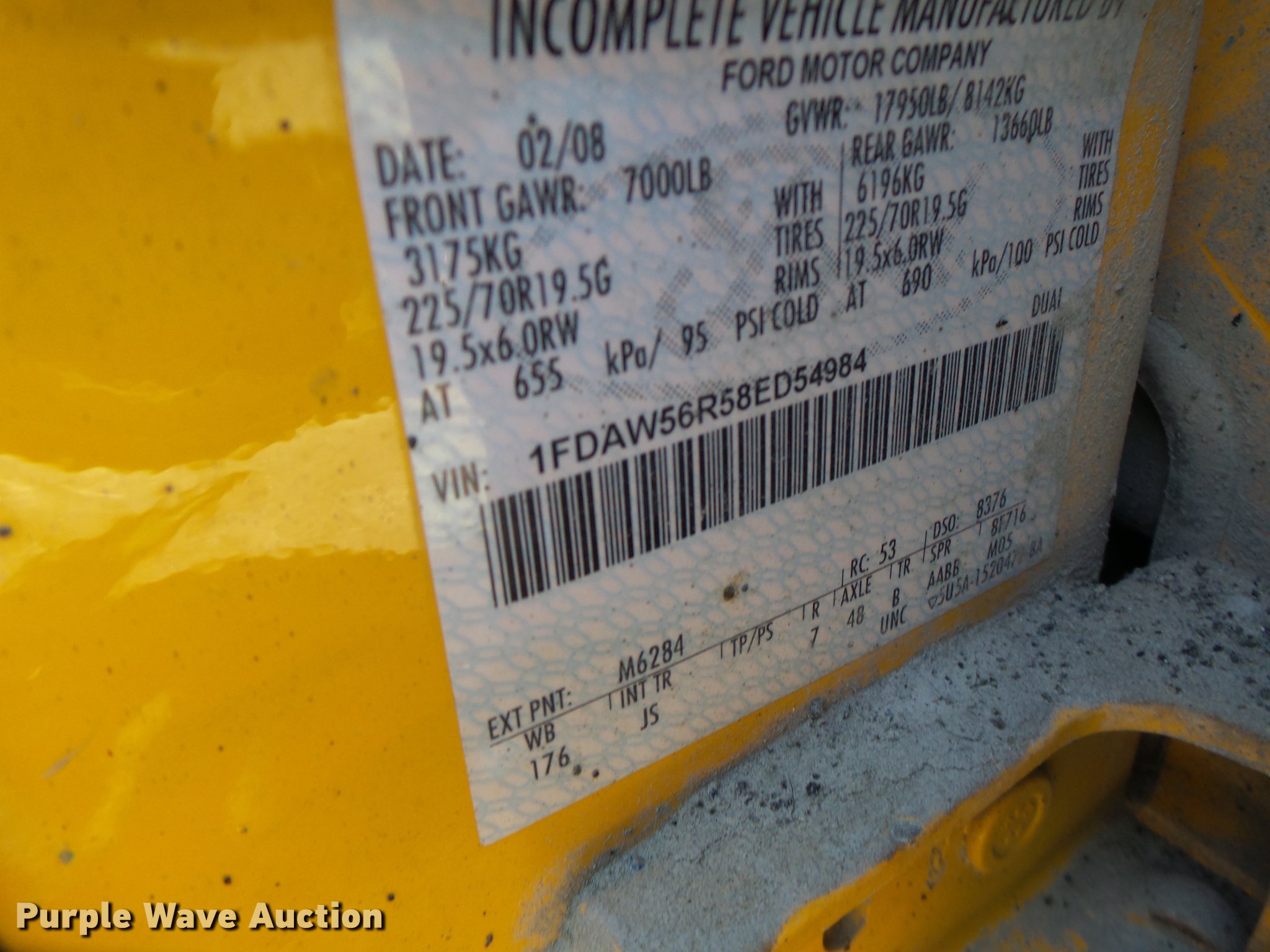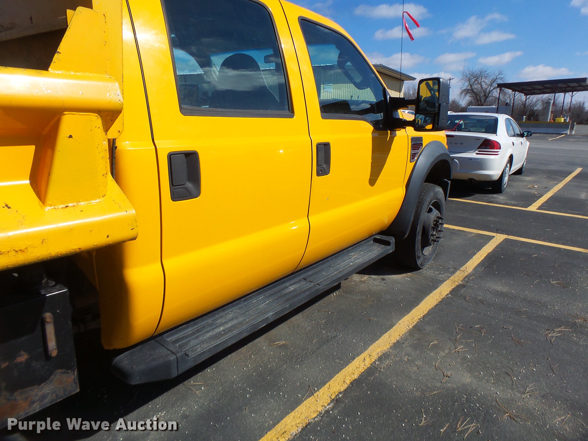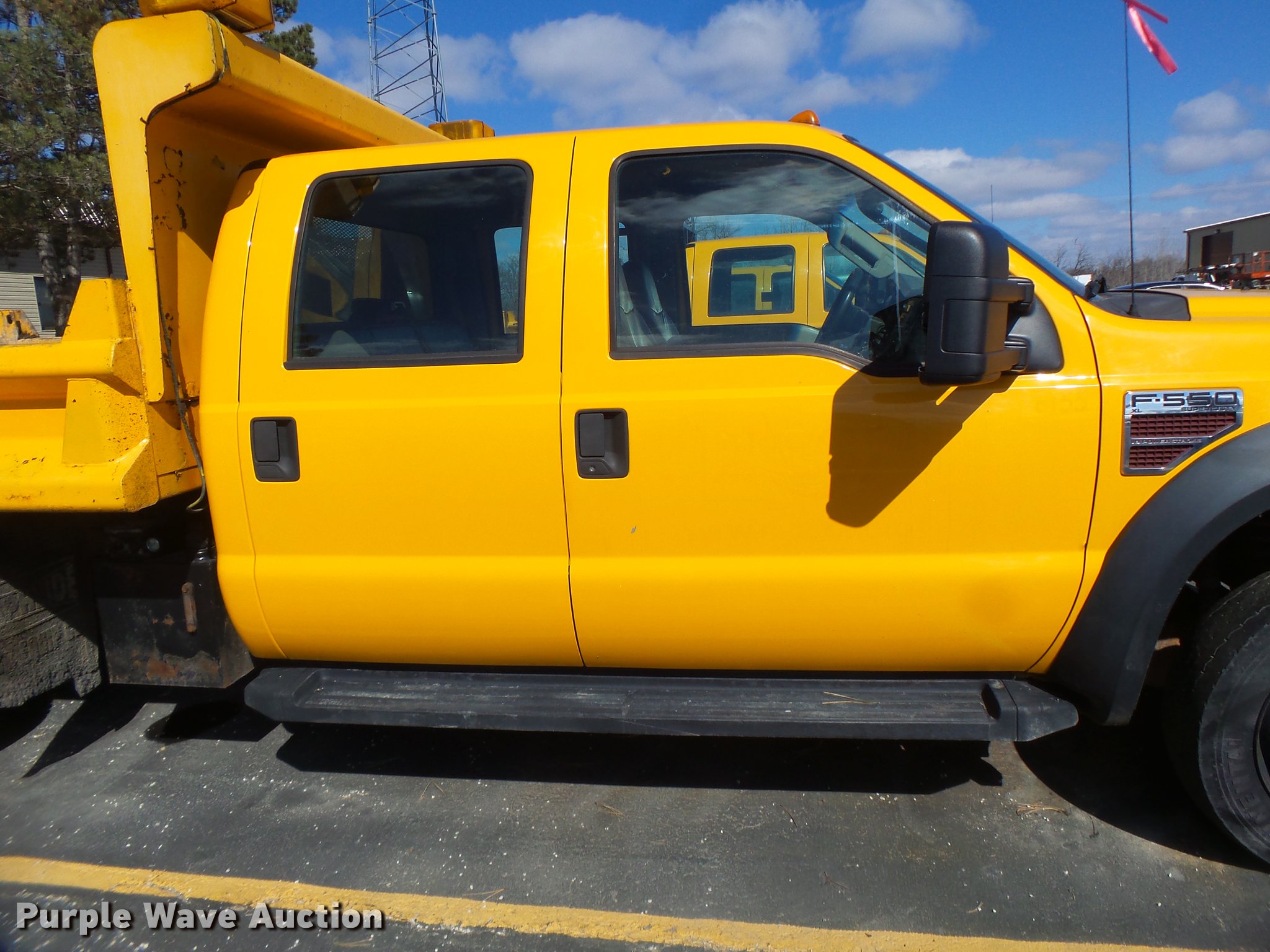 Purple Wave is selling a used Flat Bed Truck in Missouri. This item is a 2008 Ford F550 Crew Cab flatbed dump truck with the following: 188,950 miles on odometer, 6.4L V8 OHV 32V turbo diesel engine, Automatic transmission, AC and heat, Cruise, AM/FM, Vinyl interior, Running boards, 9'L x 8'W dump flatbed, Receiver hitch, Trailer wiring, 225/70R19.5 tires, MODOT ID 8155