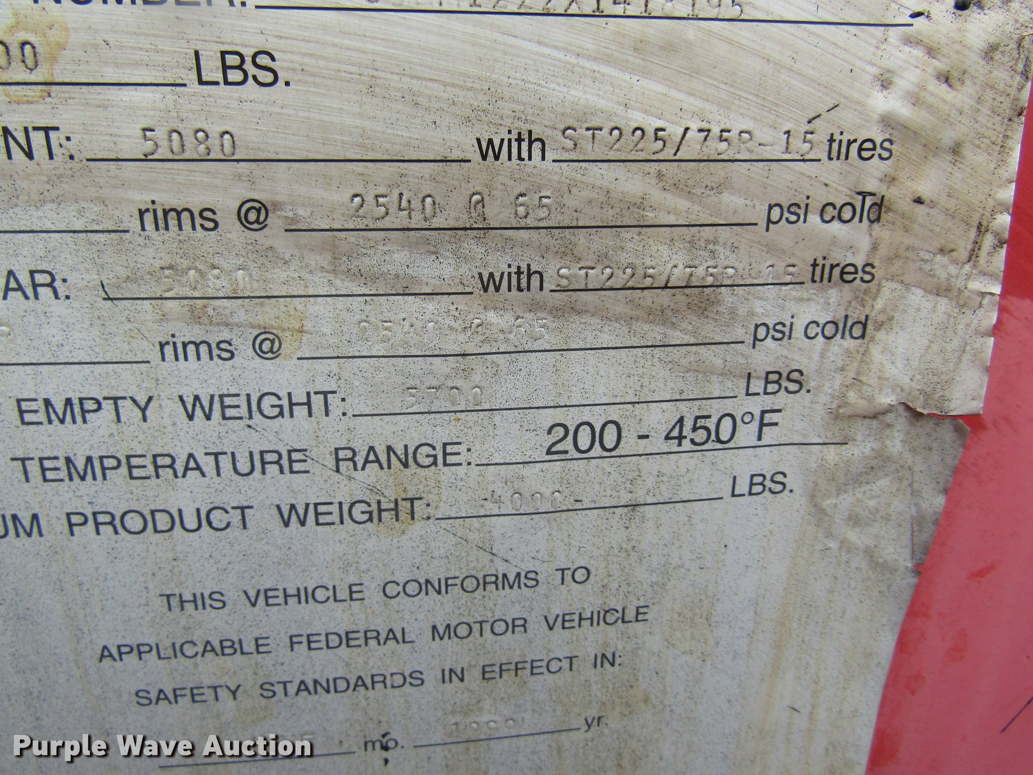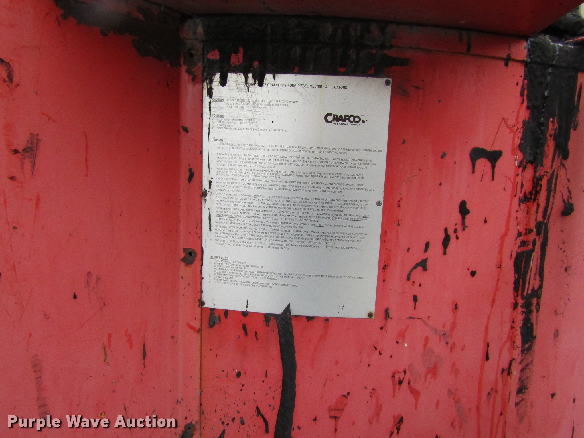Purple Wave is selling a used Pot Hole Patcher in Missouri. This item is a 1999 Crafco EZ Pour 400DP melter applicator with the following: 2,111 hours on meter, Isuzu three cylinder diesel engine, 400 gallon capacity, Pintle hitch, 225/75R15 tires, Dead battery, Melting pot inoperable, Serial 1C9EM1222X1418195, MODOT ID G8649