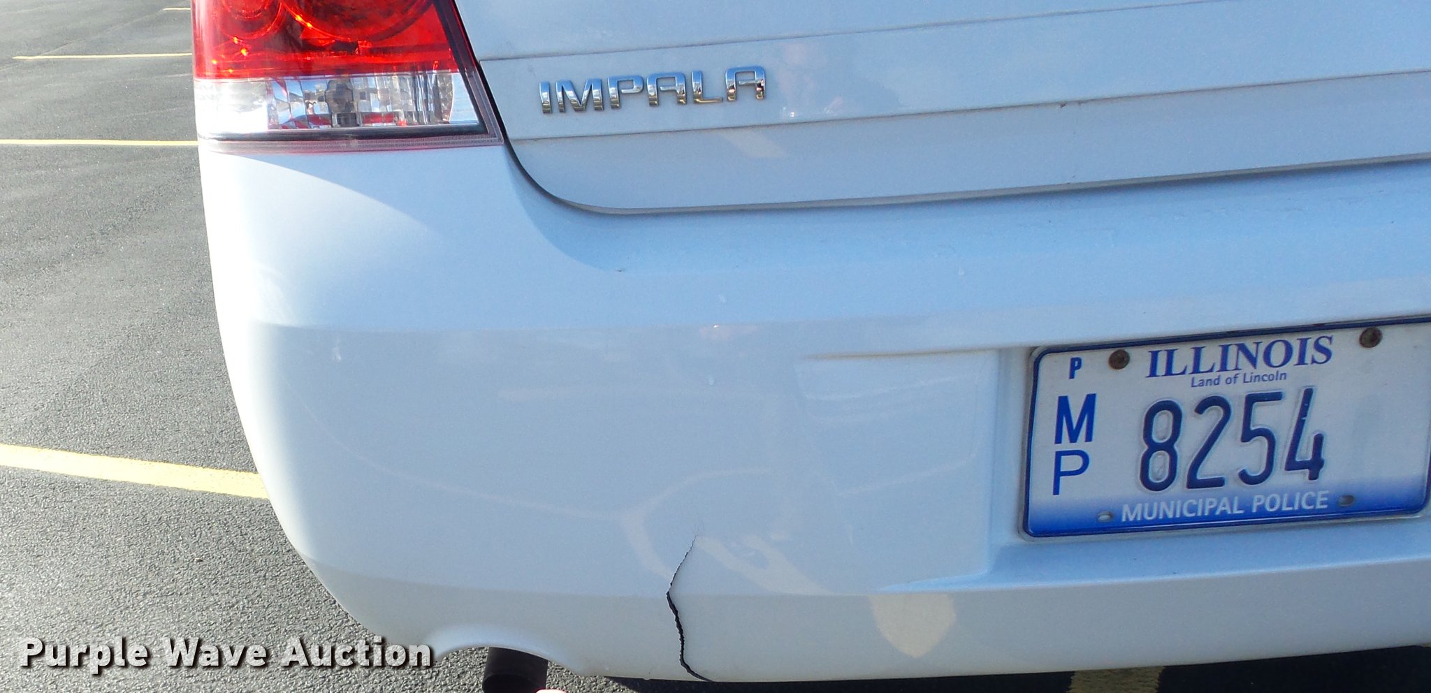 Purple Wave is selling a used Passenger Vehicle in Illinois. This item is a 2012 Chevrolet Impala Police Cruiser with the following: 106,017 miles on odometer, 3.6L V6 DOHC 16V FFV gas engine, Automatic transmission, AC and heat, Tilt, Cruise, AM/FM/CD, Power locks, mirrors, and seat, Cloth front interior, Vinyl rear interior, Spotlight, P235/55R17 tires, Hail damage