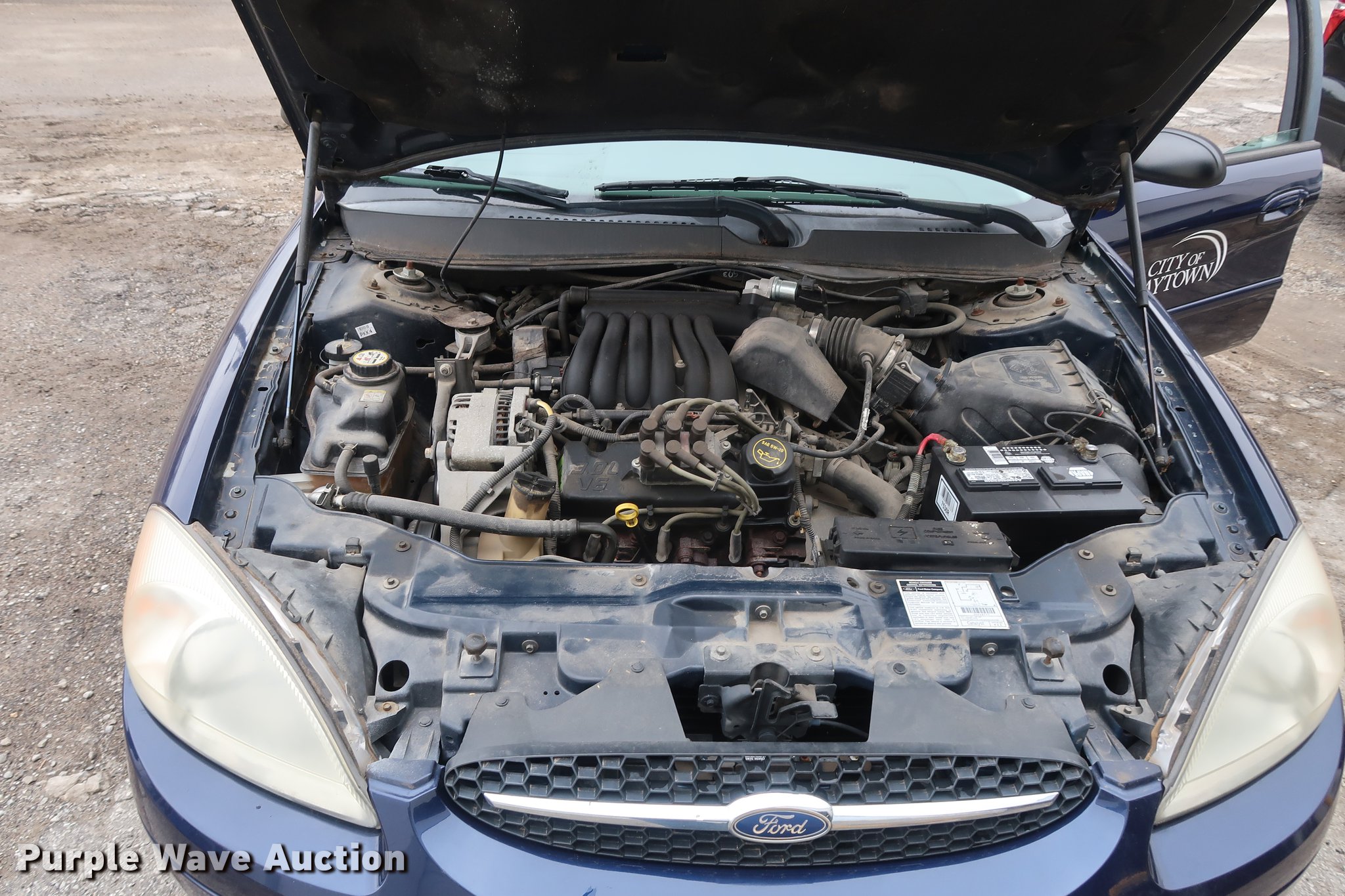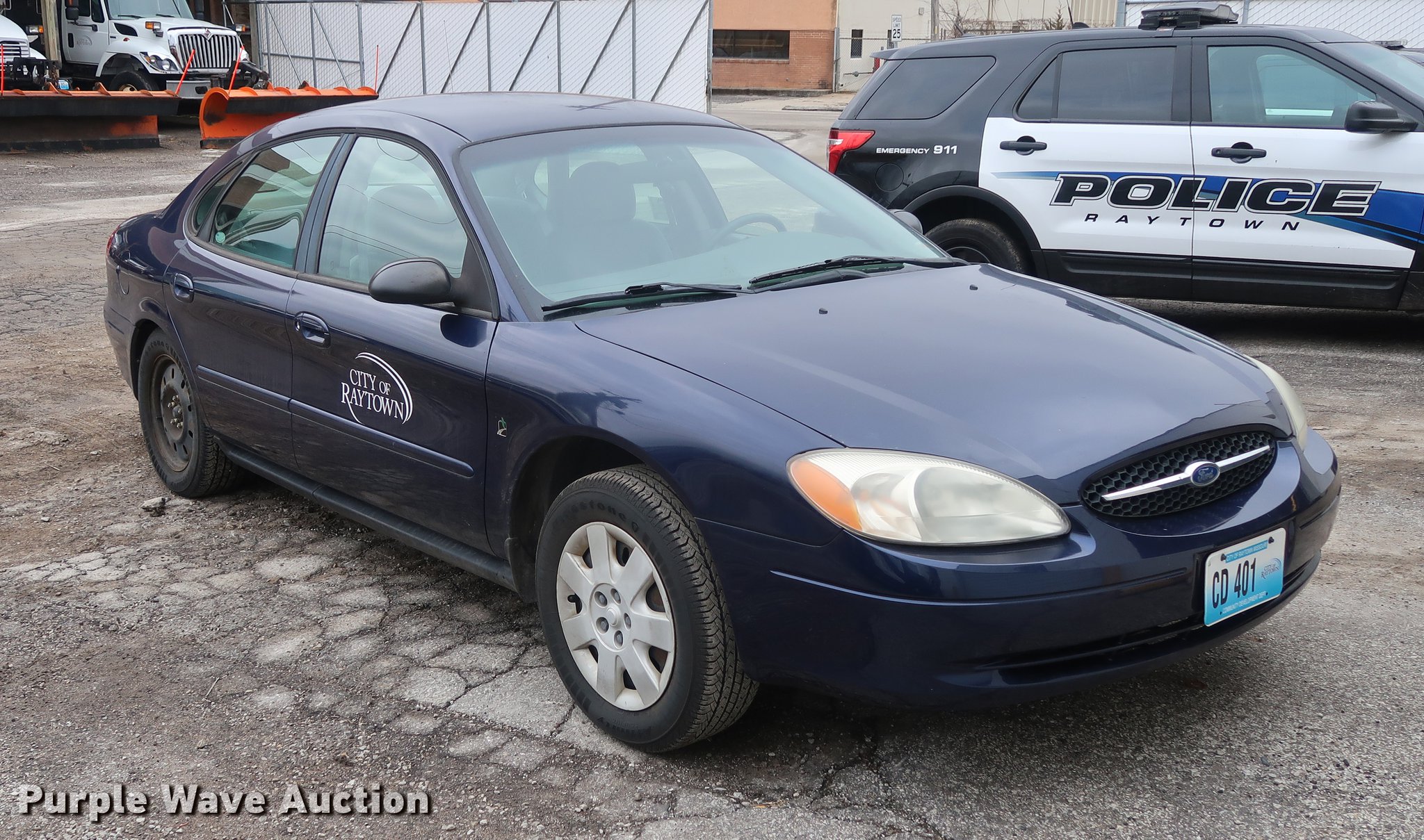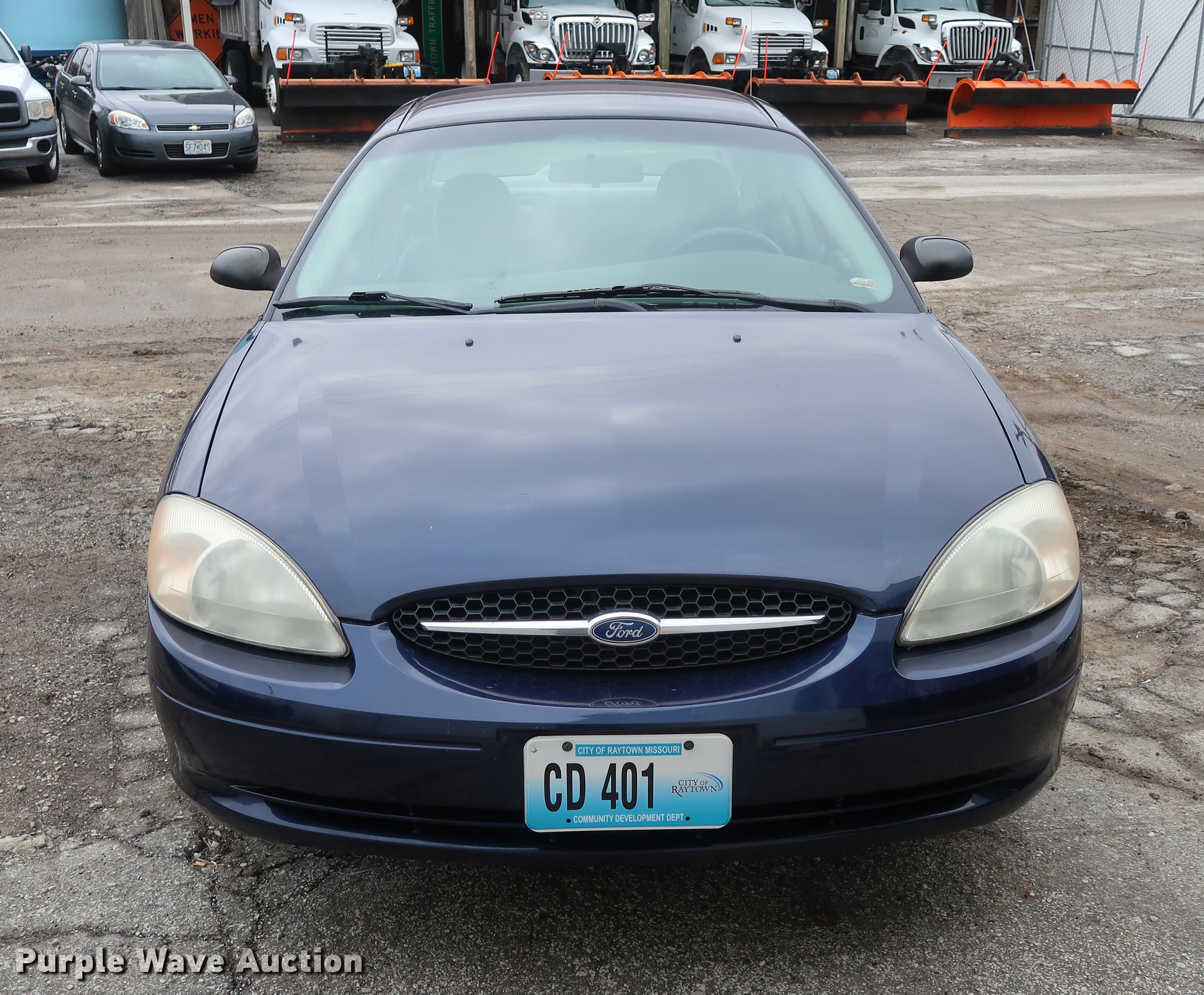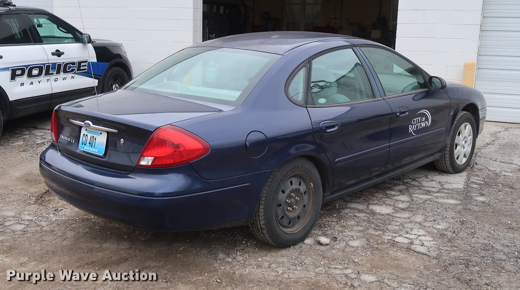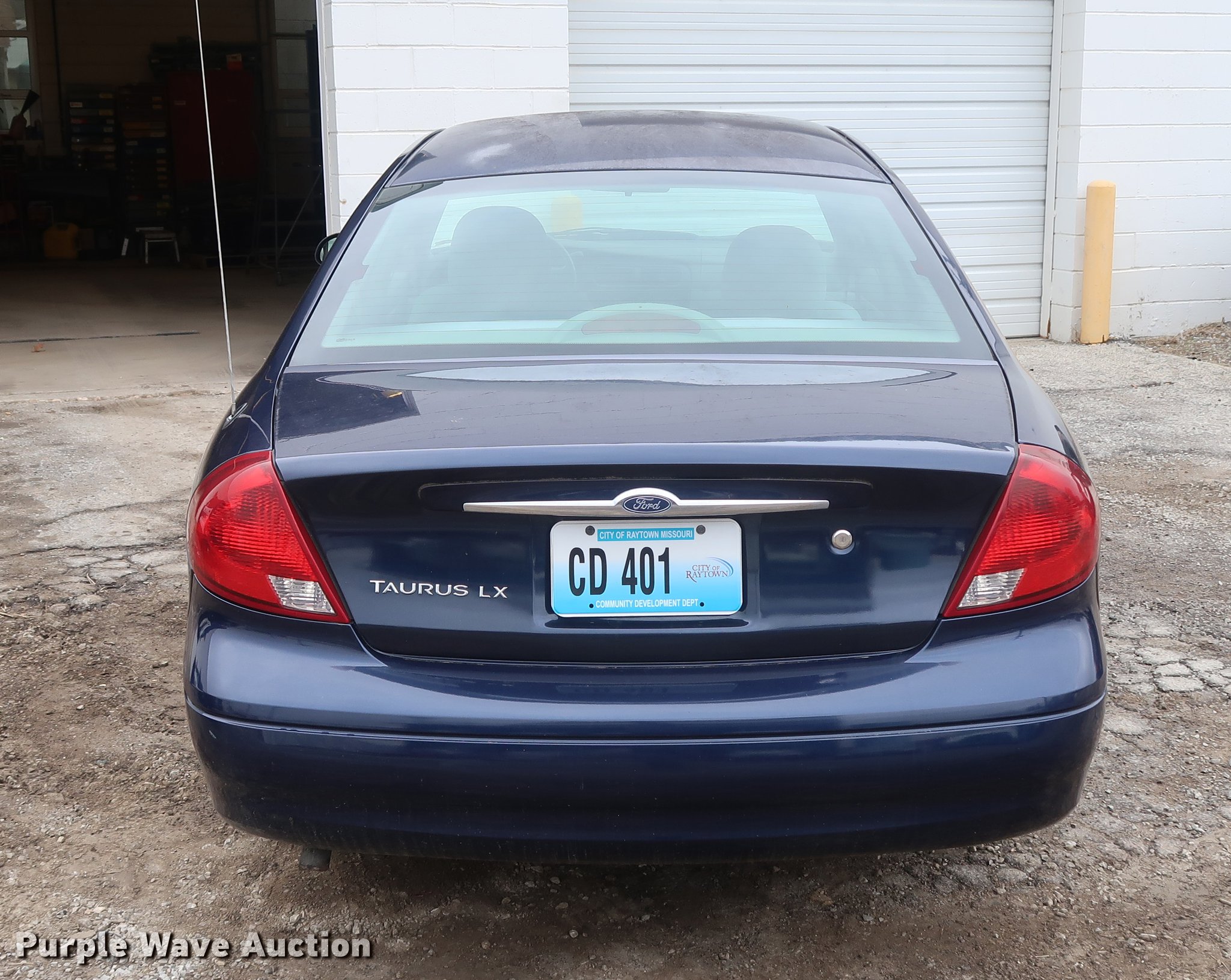 2001 Ford Taurus LX. 28,690 miles on odometer, 3.0L V6 OHV 12V FFV gas engine, Automatic transmission, AC and heat, Tilt, Cruise, AM/FM, Power windows, locks, and mirrors, Cloth interior, 215/60R16 tires, Right rear hub cap missing. Missouri title. 1FAFP52271A239239. City of Raytown. 10014 E 65th St. Raytown, MO 64133