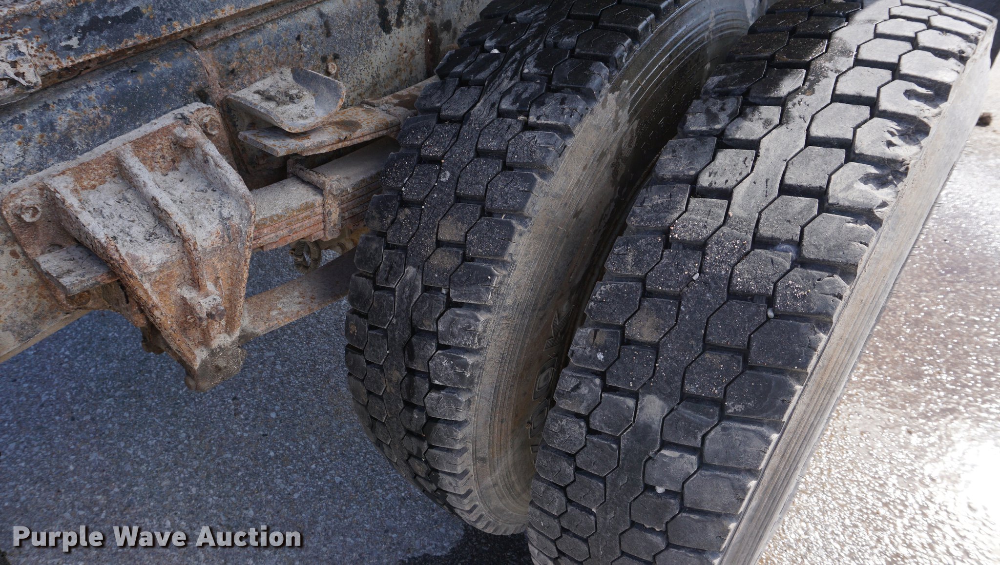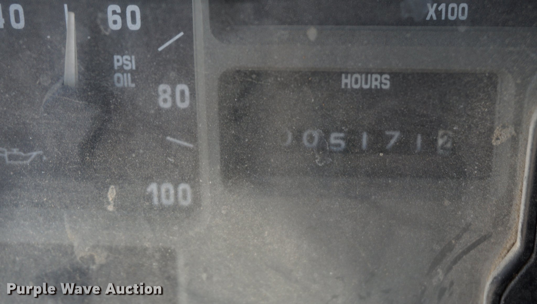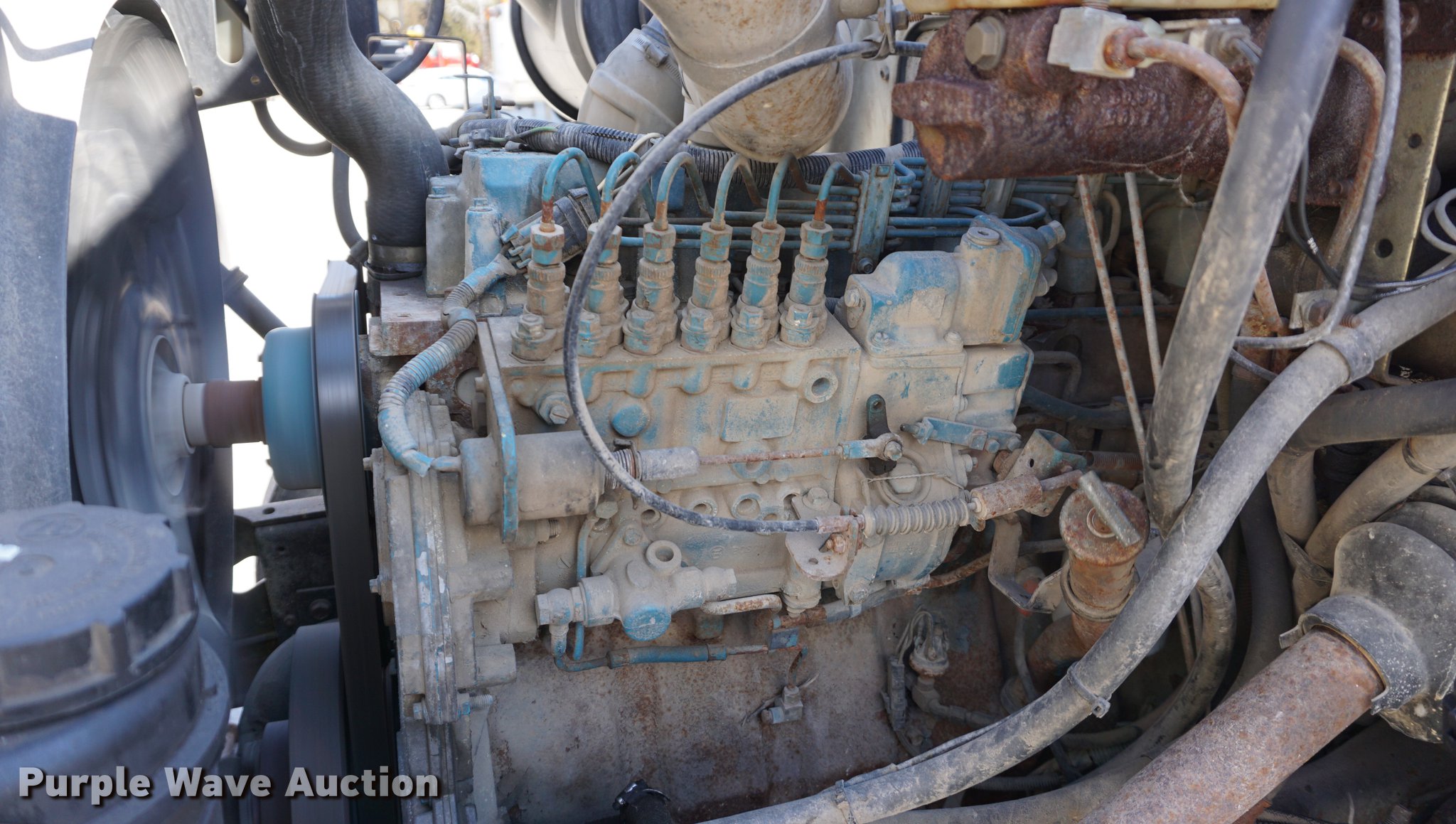 Purple Wave is selling a used Construction Dump Truck in Kansas. This item is a 1997 International 4700 dump truck with the following: 75,377 miles on odometer, 5,171 hours on meter, International DT466 7.6L L6 turbo diesel engine, 210 HP, Spicer five speed manual transmission, Two speed rear end, Single axle, Heat, AM/FM, Air suspension seat, Toolboxes, Front mounted PTO, Heil SL6YD10 steel dump bed, 10'L x 95"W, 28" side height, 10" side board height, Roll tarp, Single ram hoist, Manual end gate, Western VHW10 plow, 10'W, Single fuel tank, Pintle hitch, Spring suspension, Hydraulic brakes, 11R22.5 tires, Starter bendix needs to be repaired, Radio buttons and glass broken, Unit# PRK1426
