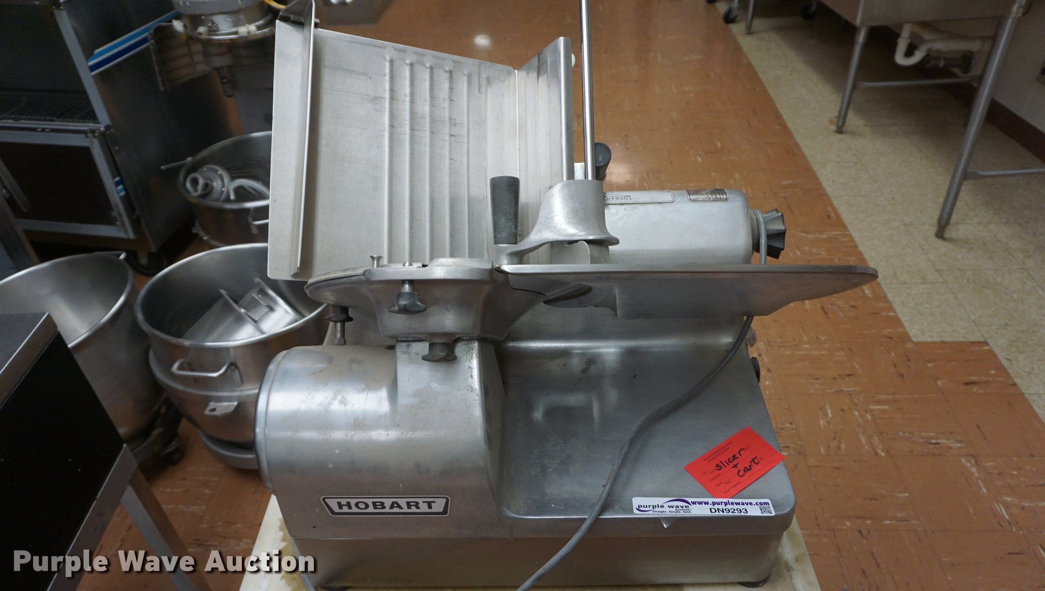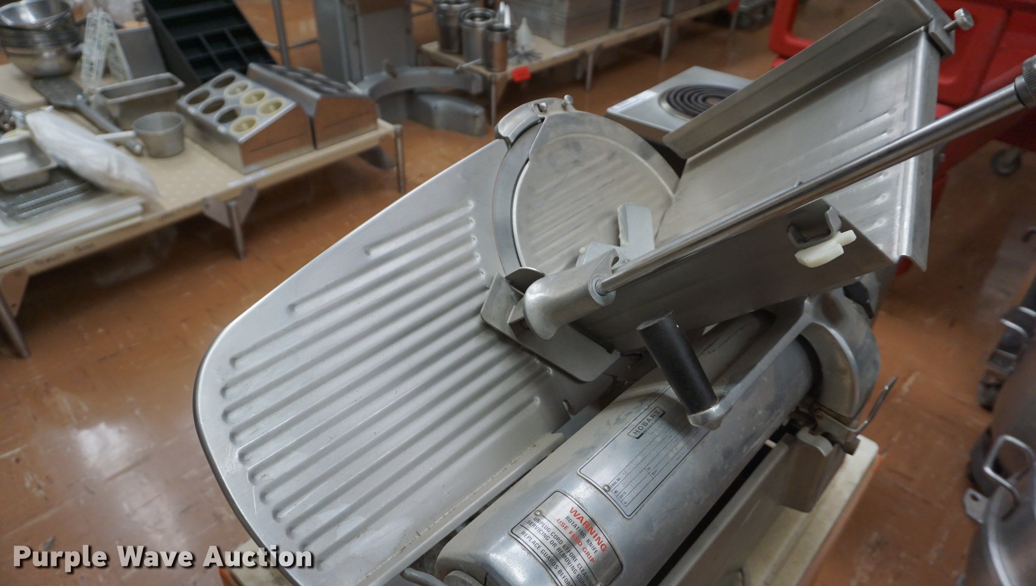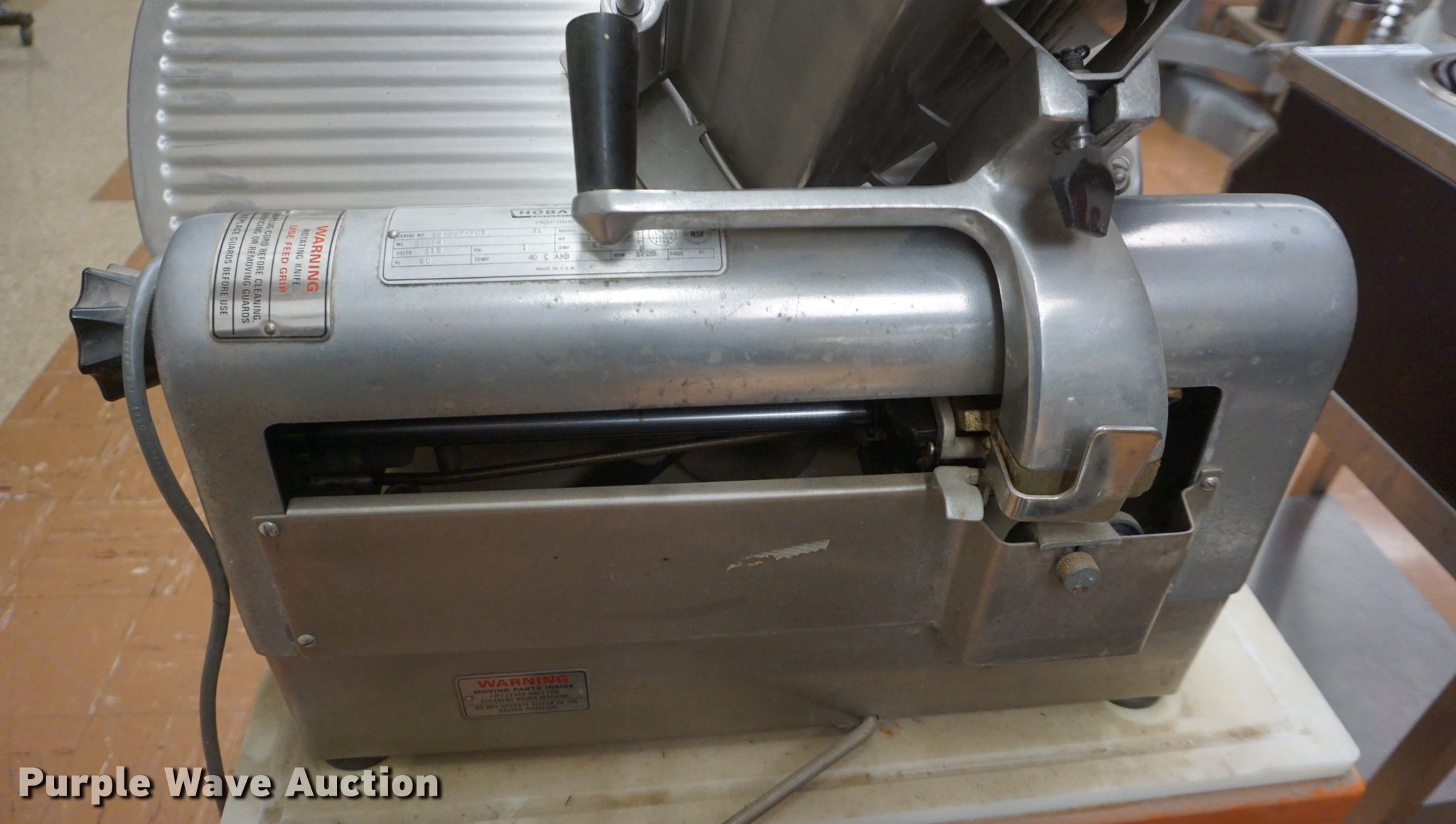 Purple Wave is selling a used Restaurant Equip. in Kansas. This item is a Hobart 1712 meat slicer with the following: 115V, Cart
