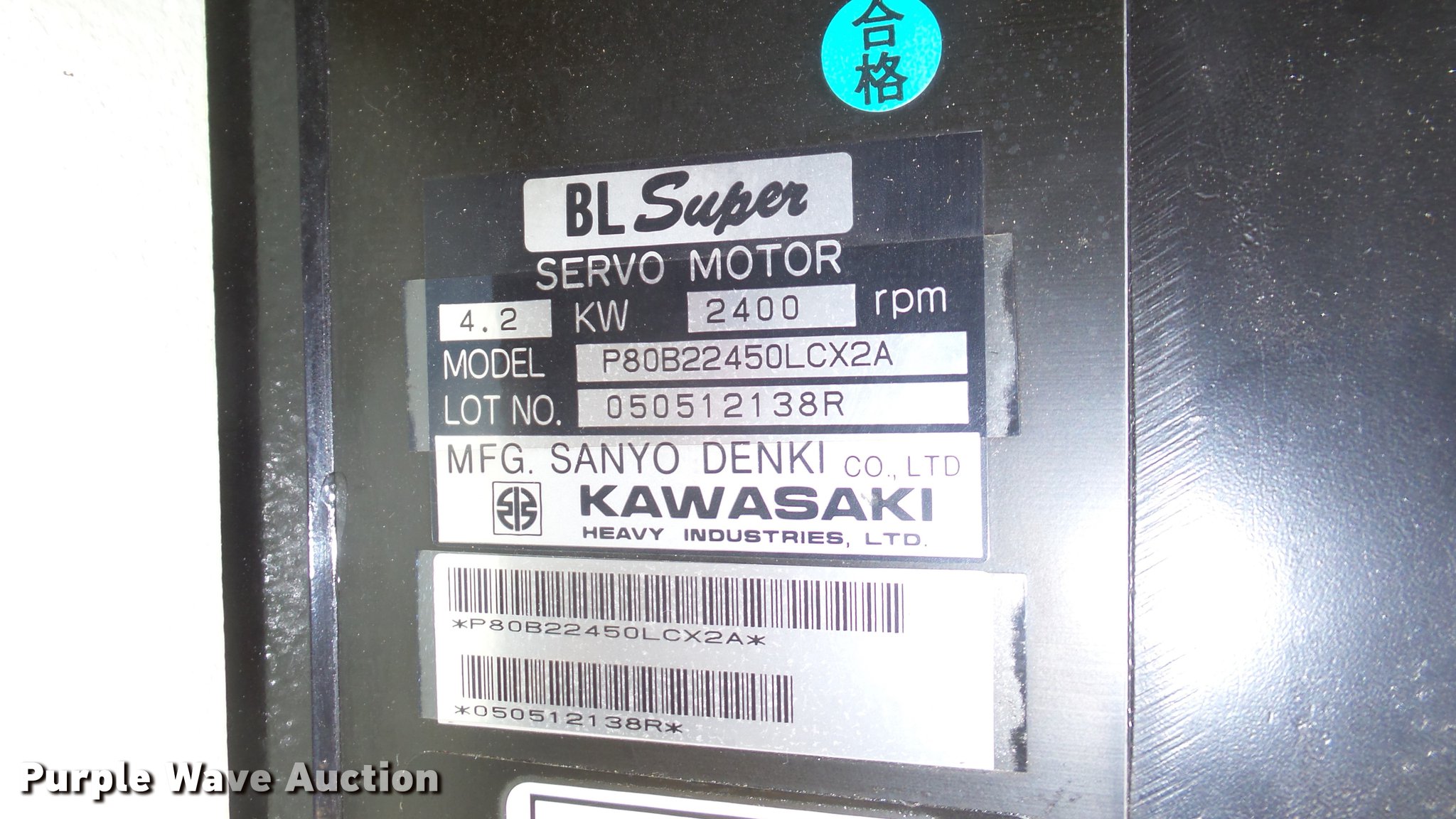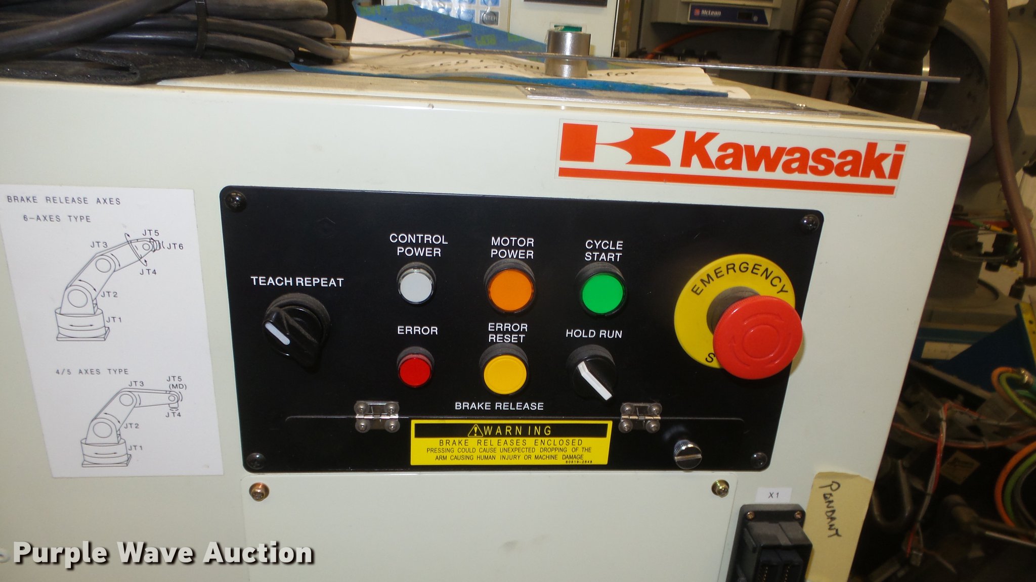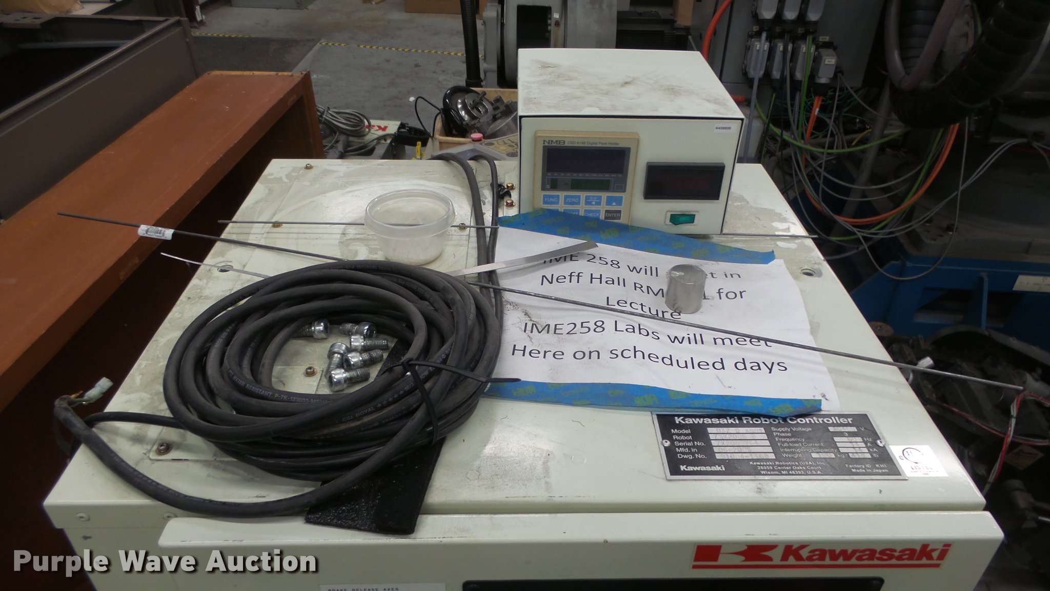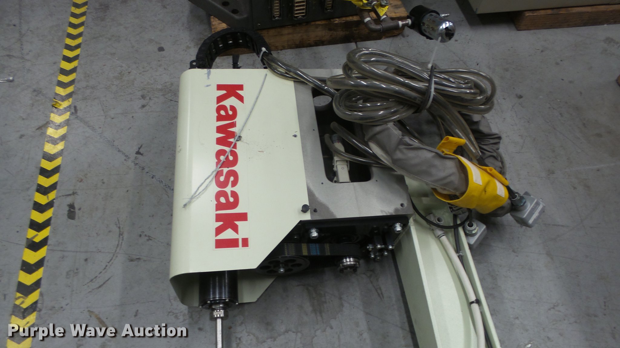 Purple Wave is selling a used Robot in Kansas. This item is a 2005 Kawasaki ZX200S robot with the following: 200 Kg payload, 2,651 mm reach, 1,400 kg unit weight, D32 controller, 8-axis, Wiring, Accessories, Three phase, NMB digital peak holder, Unknown operating condition, Serial ZX2000764