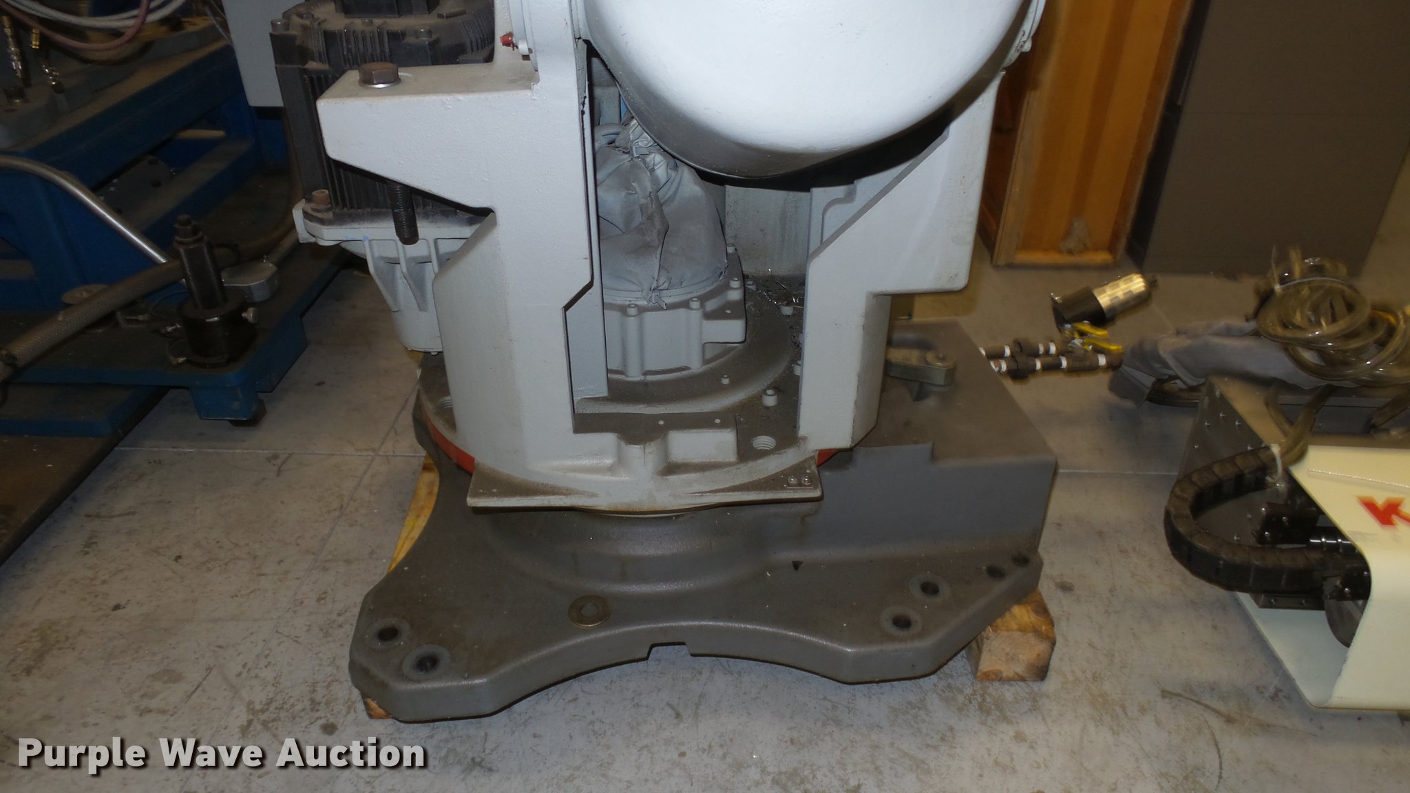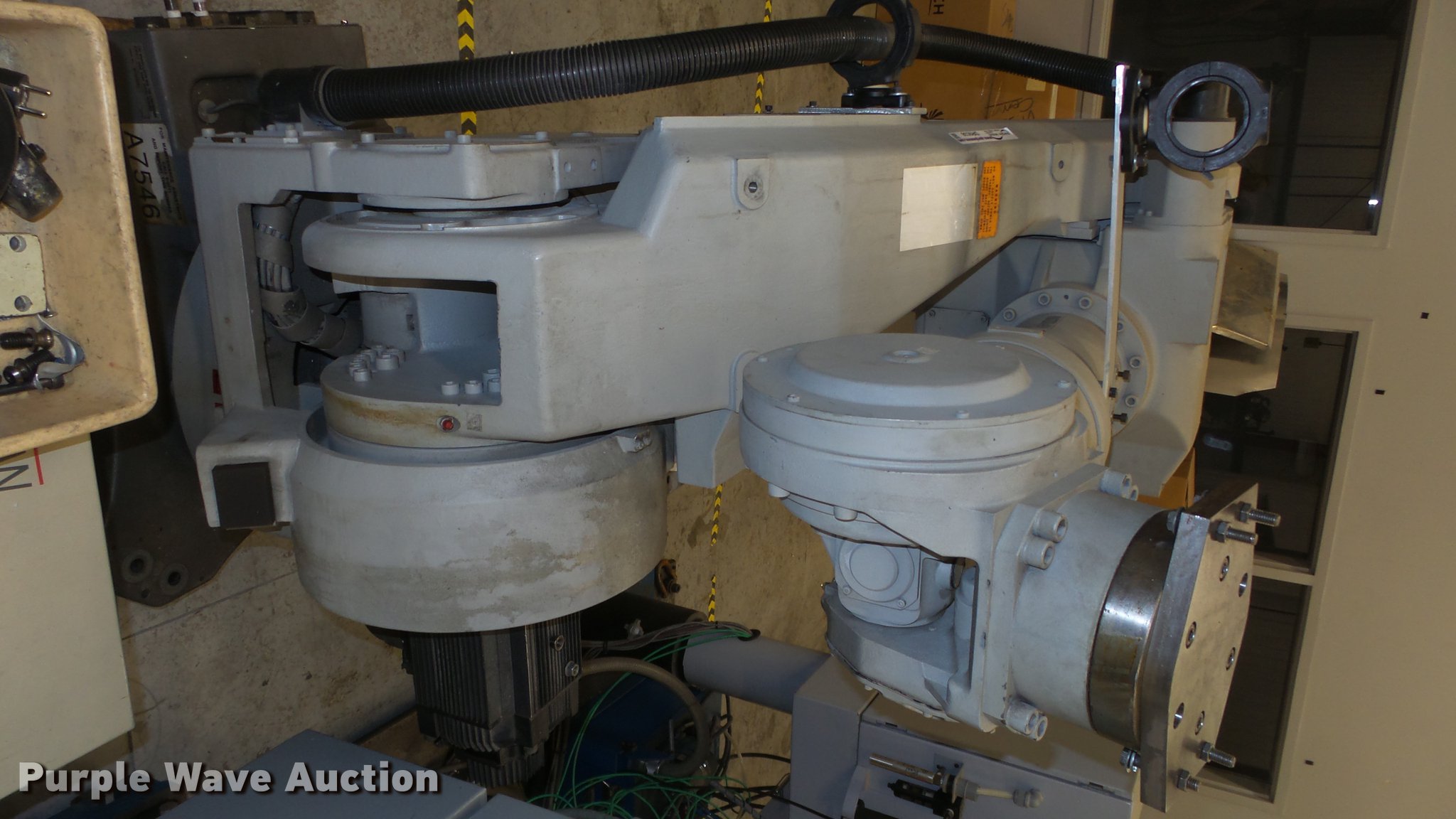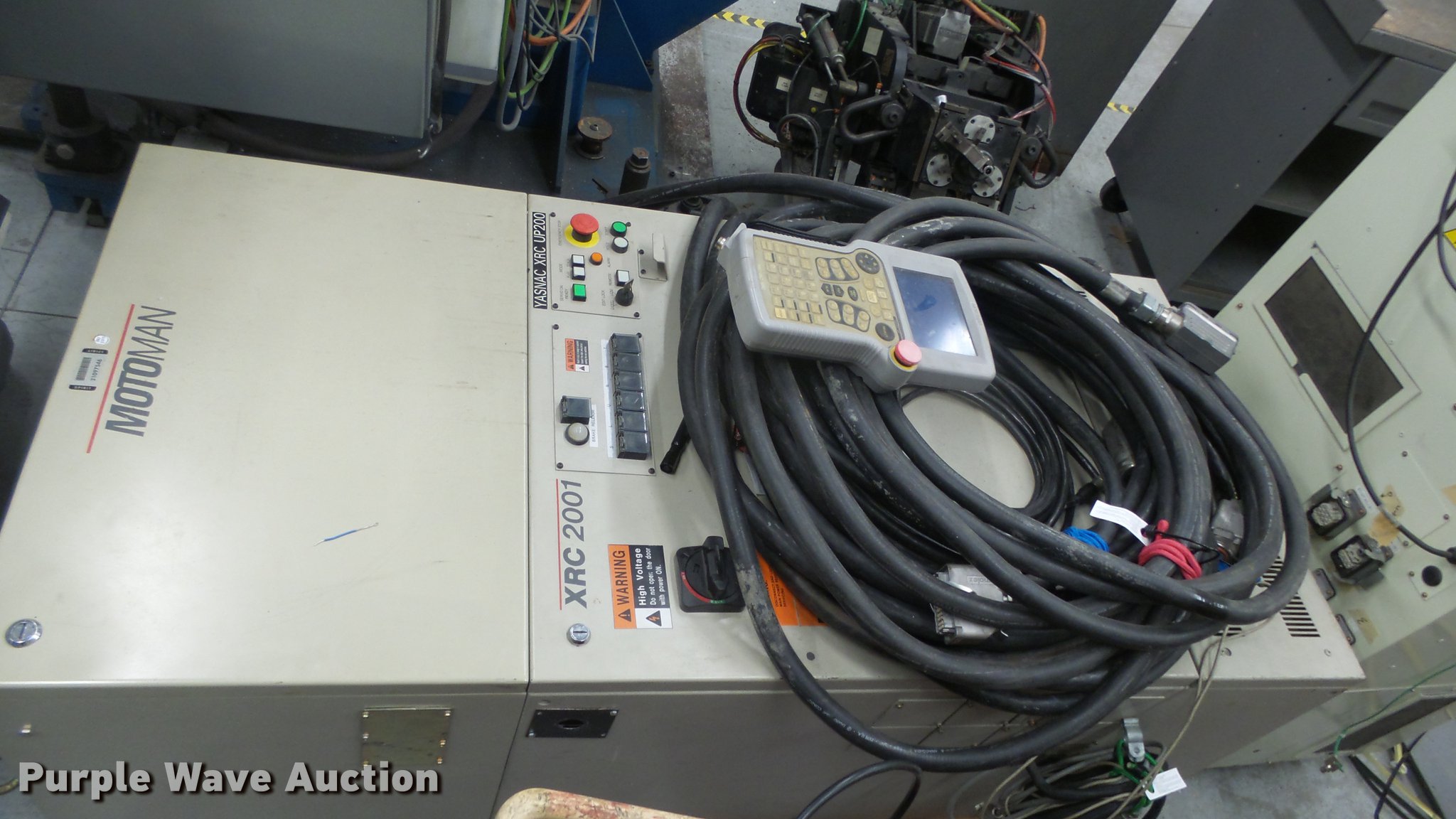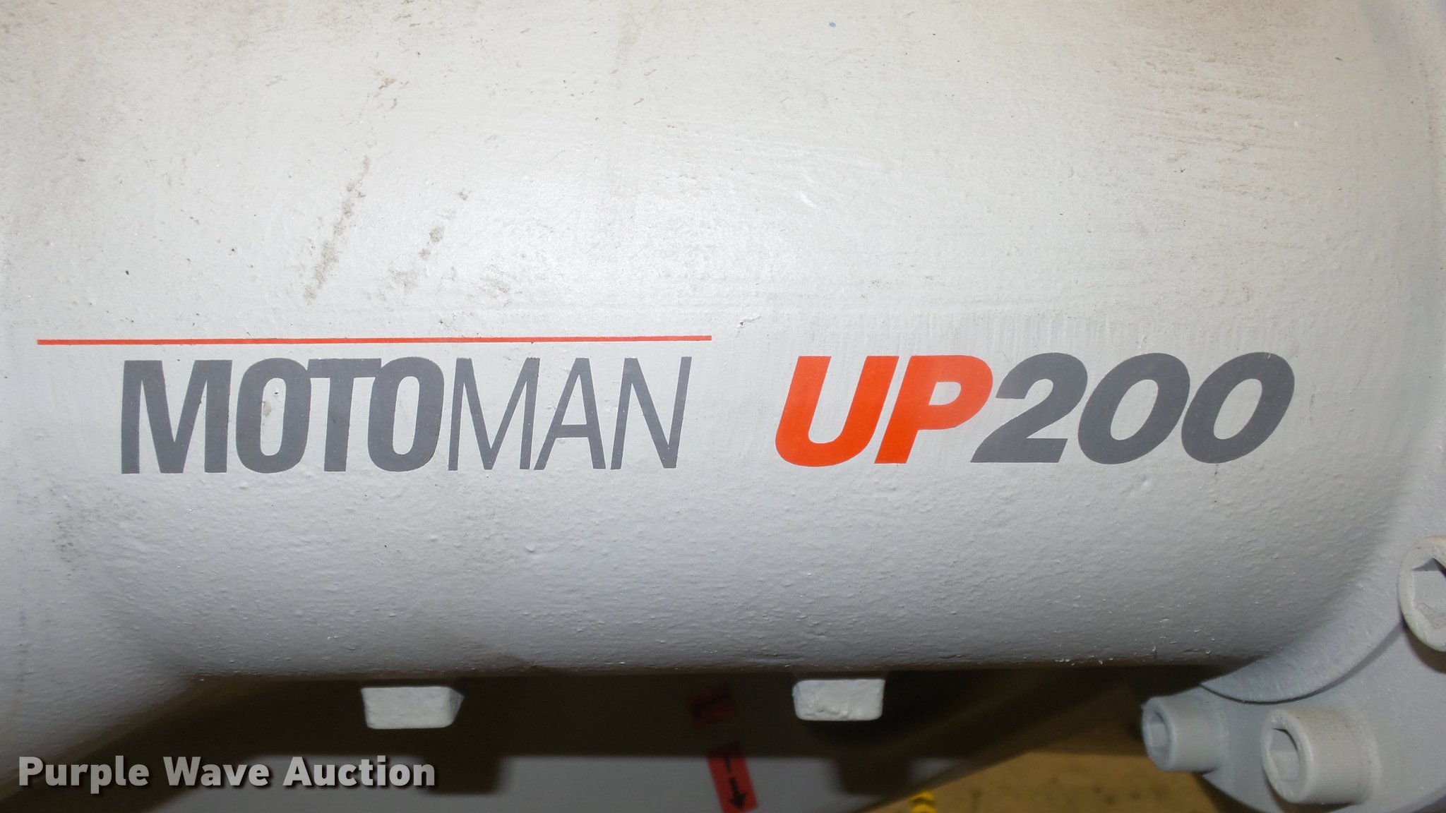 Purple Wave is selling a used Robot in Kansas. This item is a Motoman UP200 robot with the following: 200 Kg payload, 2,446 MM H-reach, 1,350 Kg unit weight, Articulated structure, 6-axis, Floor mount, SRC2000 control cabinet, Wiring, Accessories, Unknown operating condition