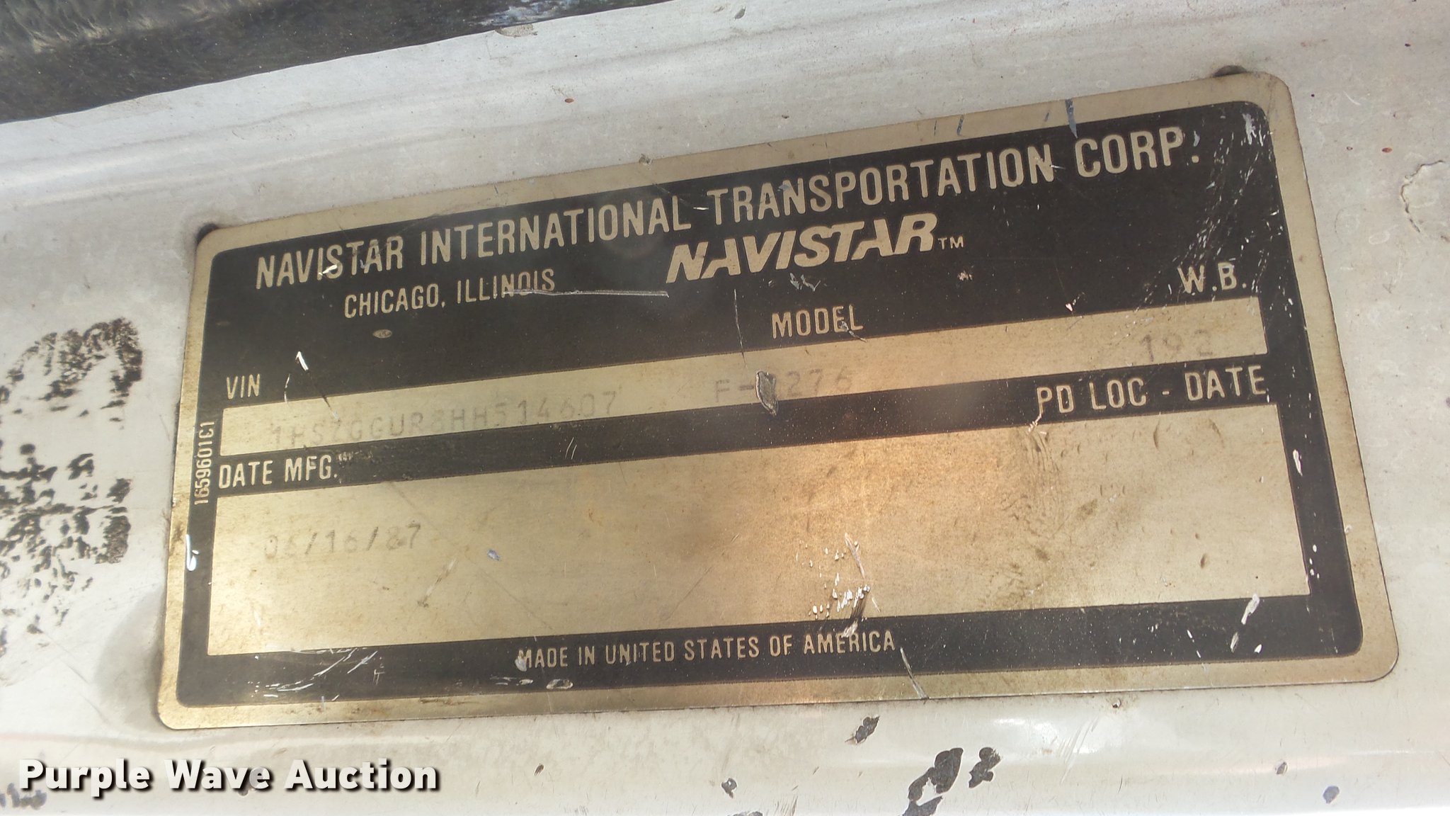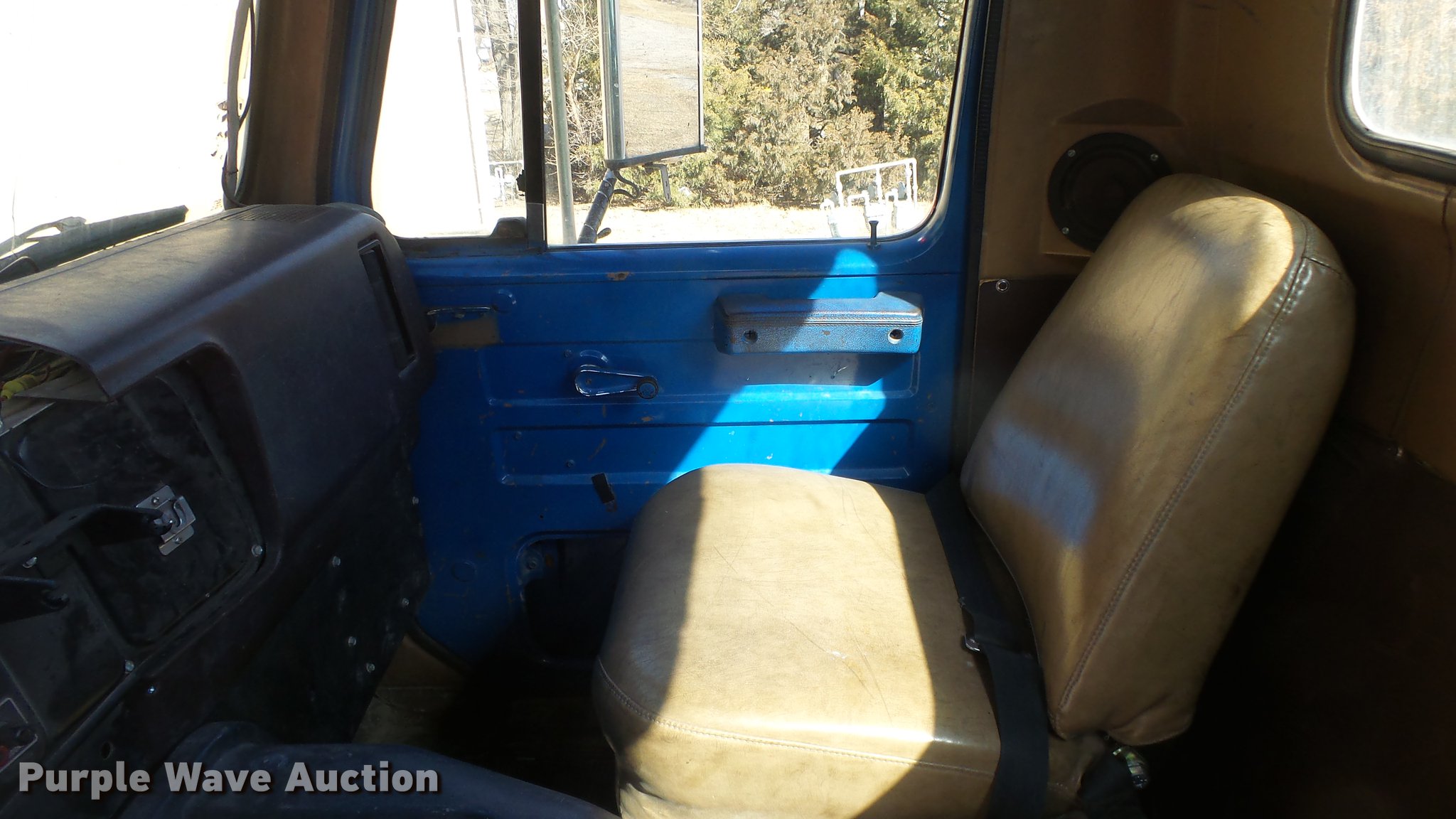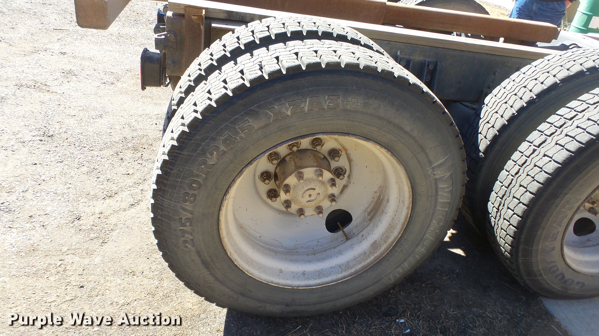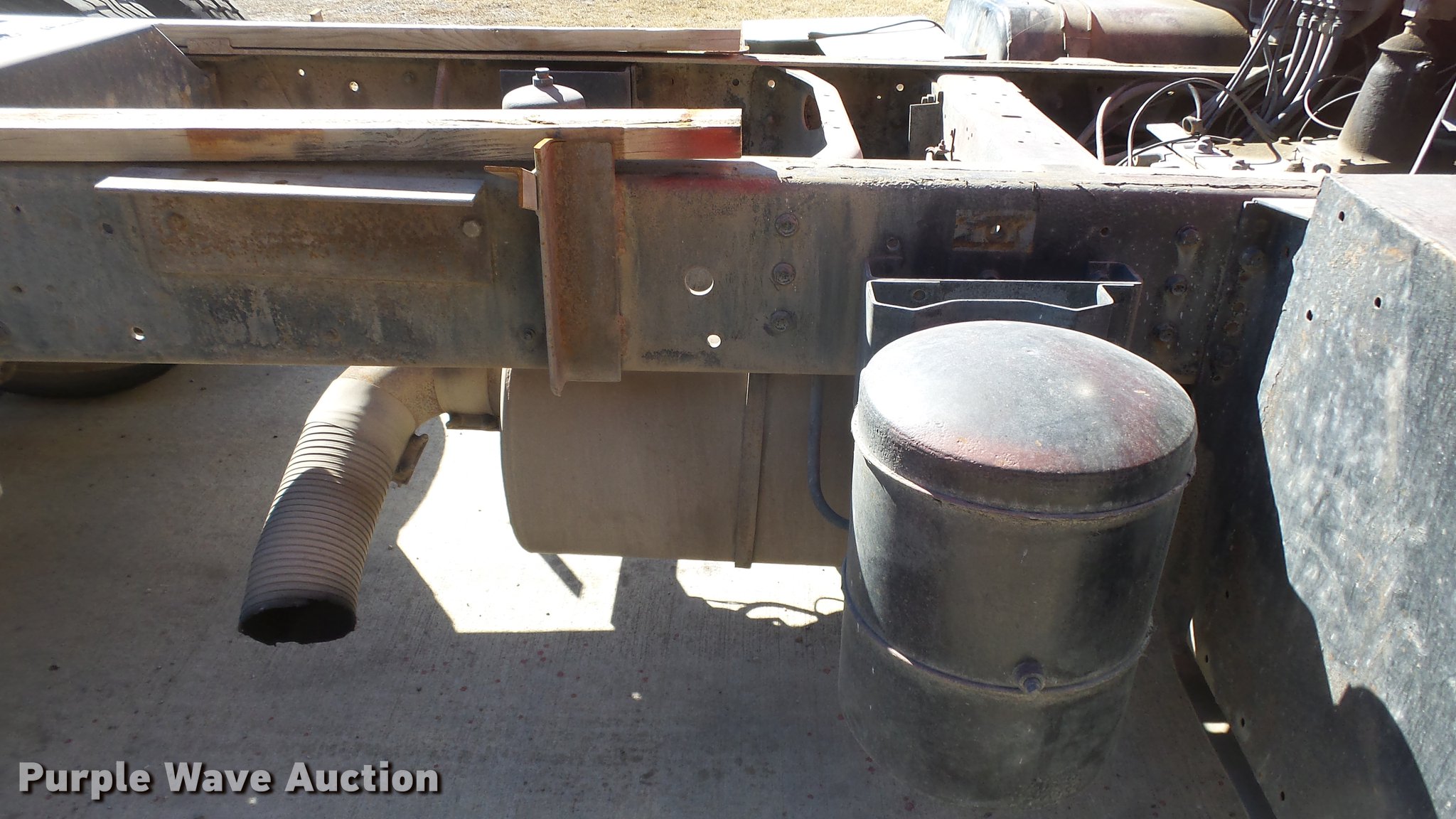 Purple Wave is selling a used Truck Chassis in Kansas. This item is a 1987 International S2200 truck cab and chassis with the following: 26,296 miles on odometer, Actual mileage unknown, Cummins 14.0L L6 diesel engine, 10 speed manual transmission, AC and heat, AM/FM, Air suspension seat, Light bar, Chelsea PTO, Single fuel tank, 16' from cab to end of chassis, Air suspension, Air brakes, Tandem axle, 295/75R22.5 front tires, 275/80R24.5 rear tires, Cracked windshield