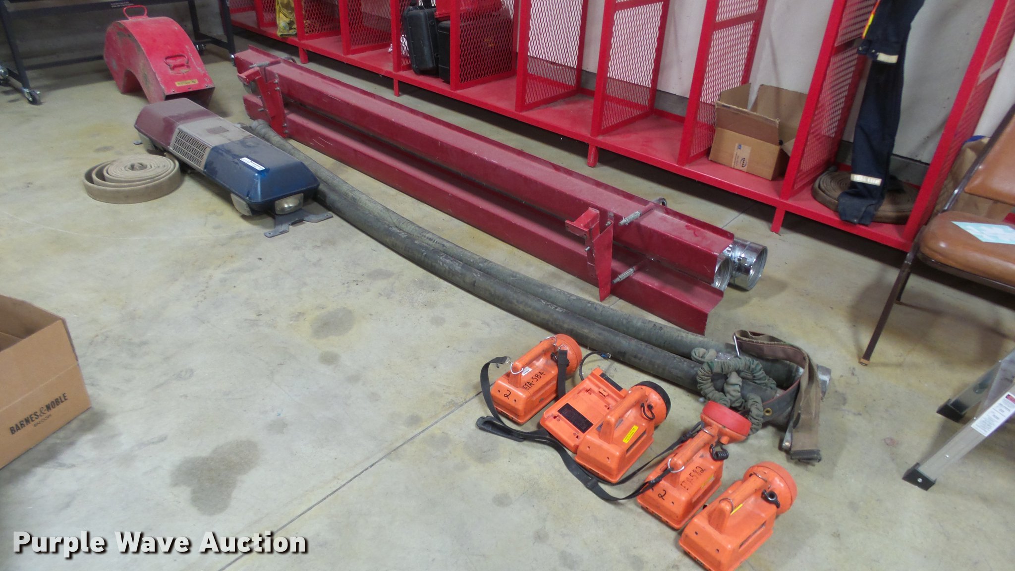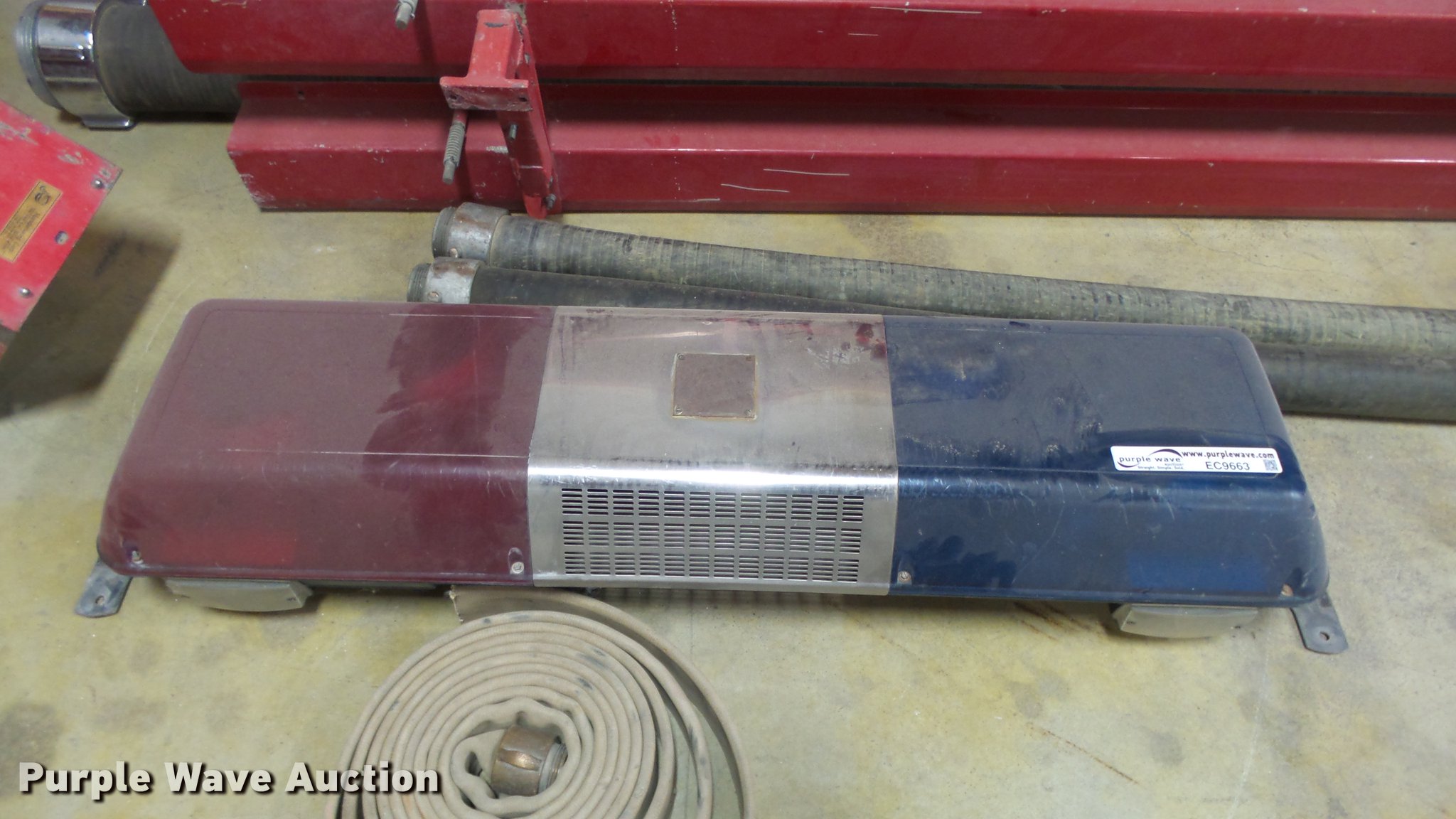 Purple Wave is selling a used Tools in Kansas. This item is a Fire equipment with the following: (4) hand-held lights, Unknown operating condition, Light bar, Fire hose, (4) hard suction hoses, Mount