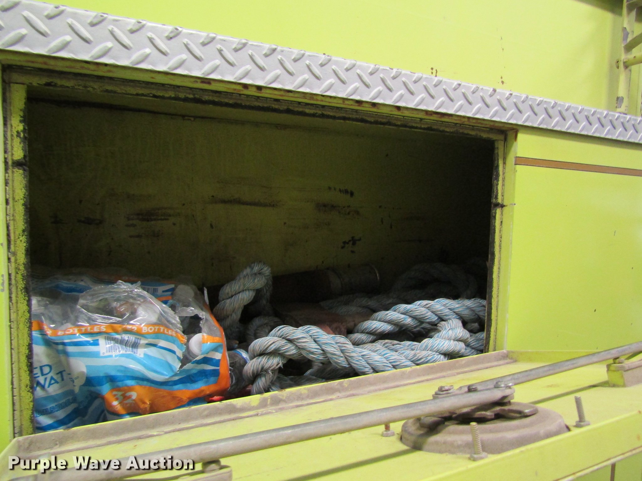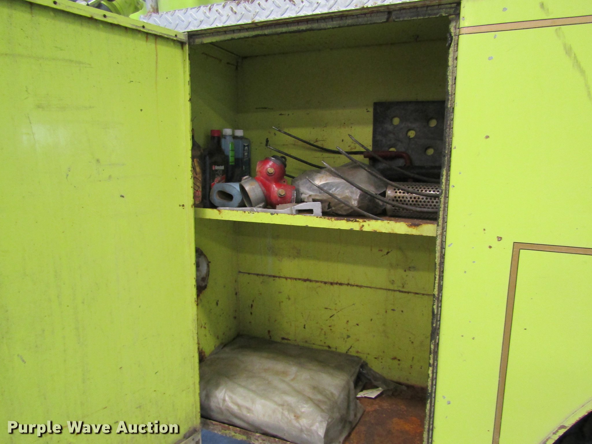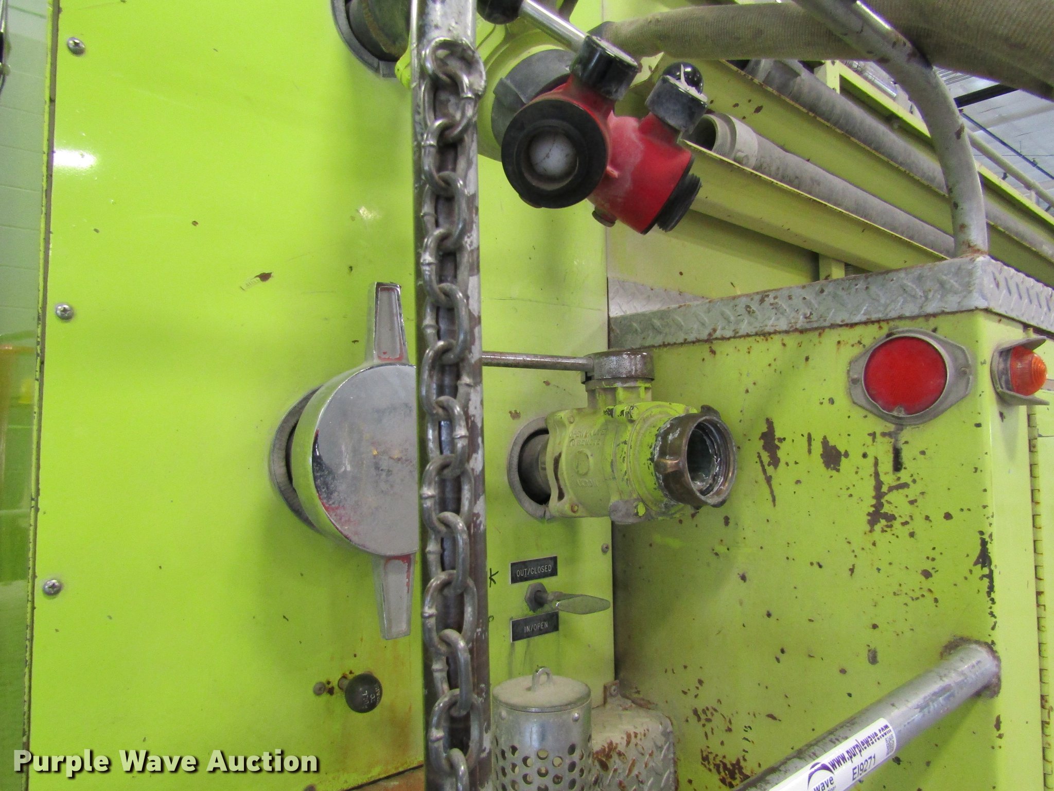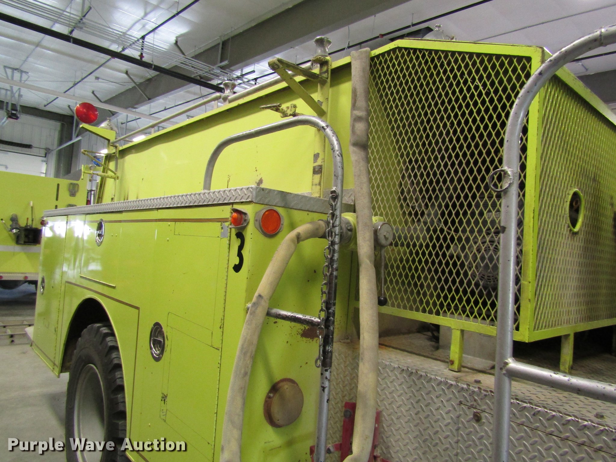 Purple Wave is selling a used Fire Truck or Emergency Vehicle in Kansas. This item is a 1979 International R1824 fire truck with the following: 15,116 miles on odometer, Eight cylinder gas engine, Automatic transmission, Four wheel drive, Single axle, Heat, Spotlights, Light bar, Electronic siren, 1,000 gallon water tank, Dual fuel tanks, Spring suspension, Hydraulic brakes, Microbrake, 170" wheelbase, 10.00-20 tires, Pump, fittings, hose, tools, and two-way radio not included, Contents not included