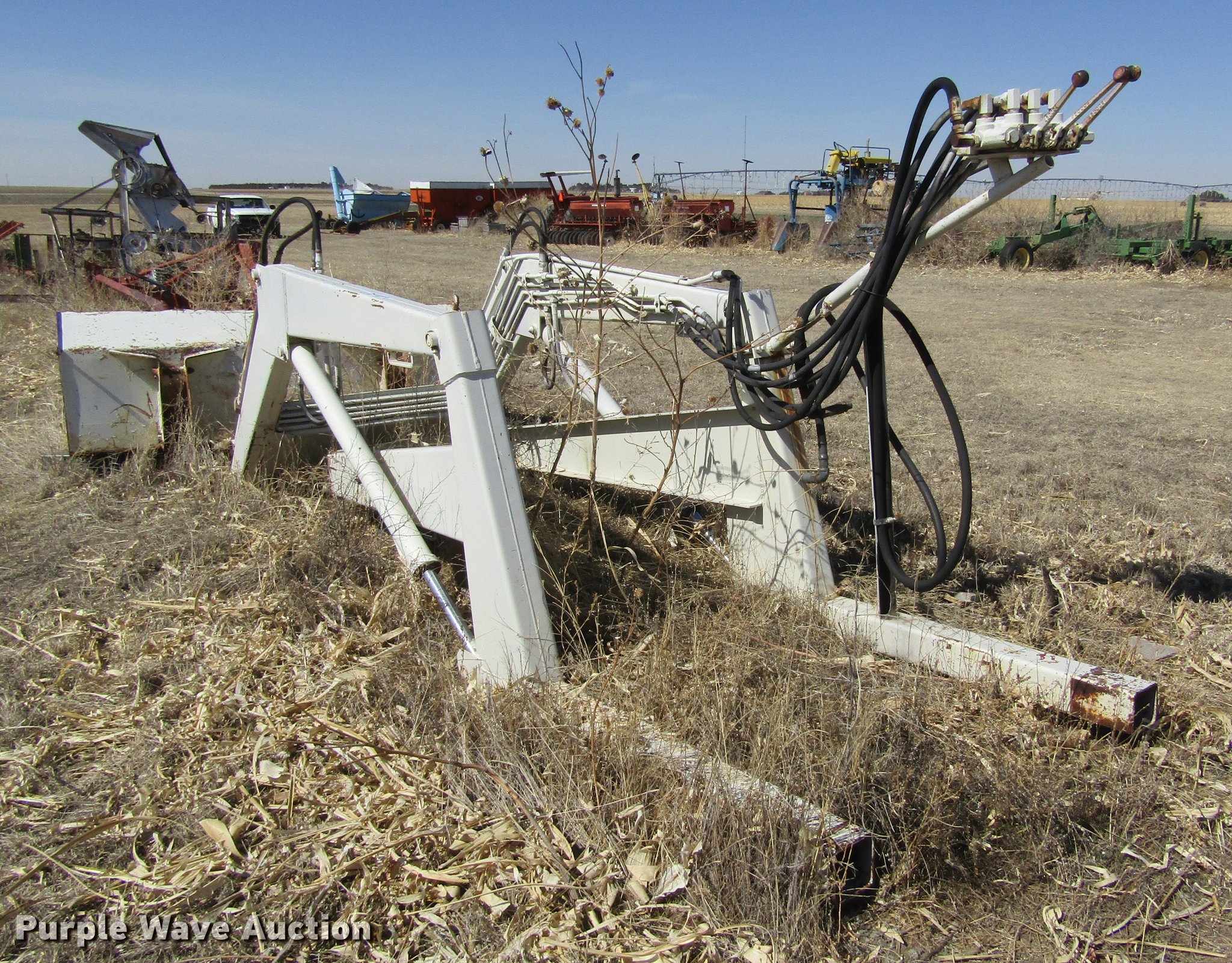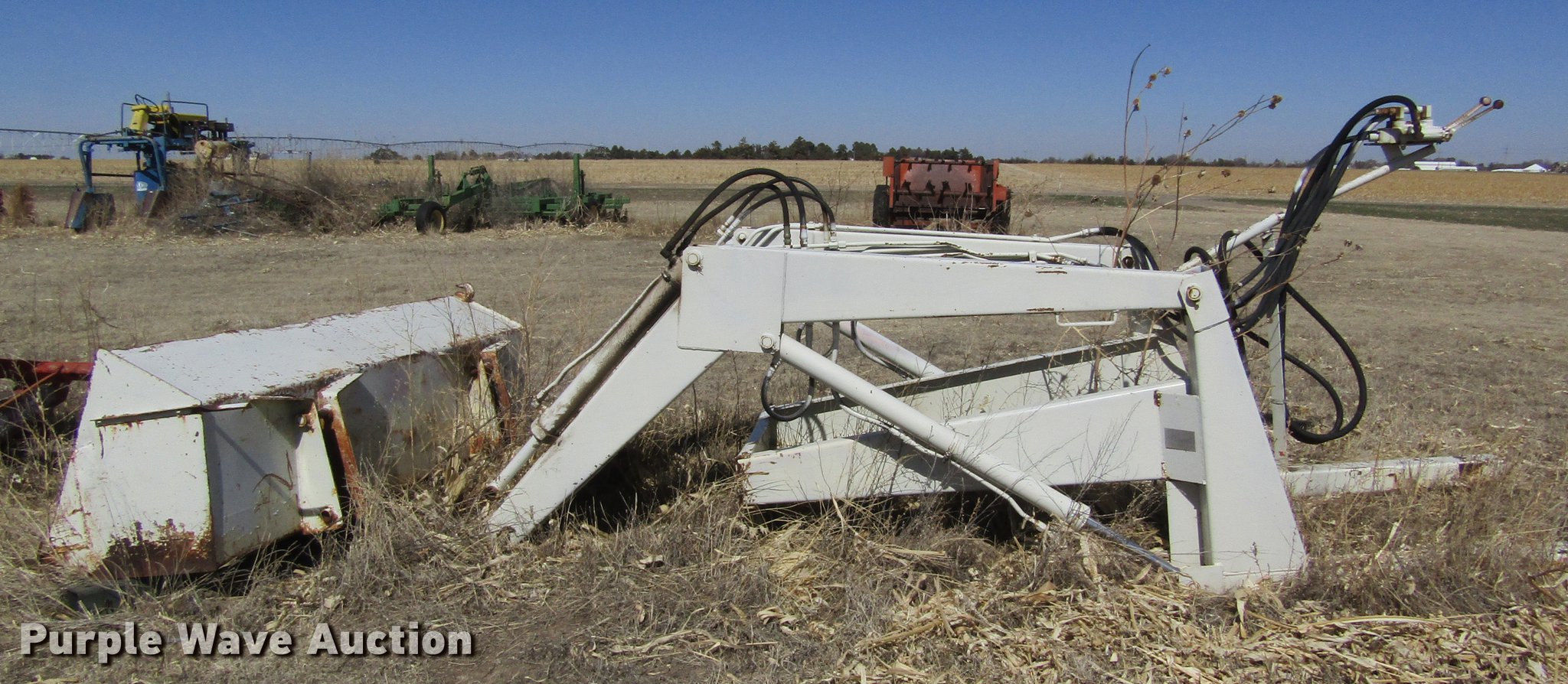 Purple Wave is selling a used Ag Tractor Loader or Attach. in Kansas. This item is a Loader with the following: 6'W bucket, Bolt-on forks, Three-lever controls, Front hydraulic remote hookup, Brackets, Removed from International 686 tractor
