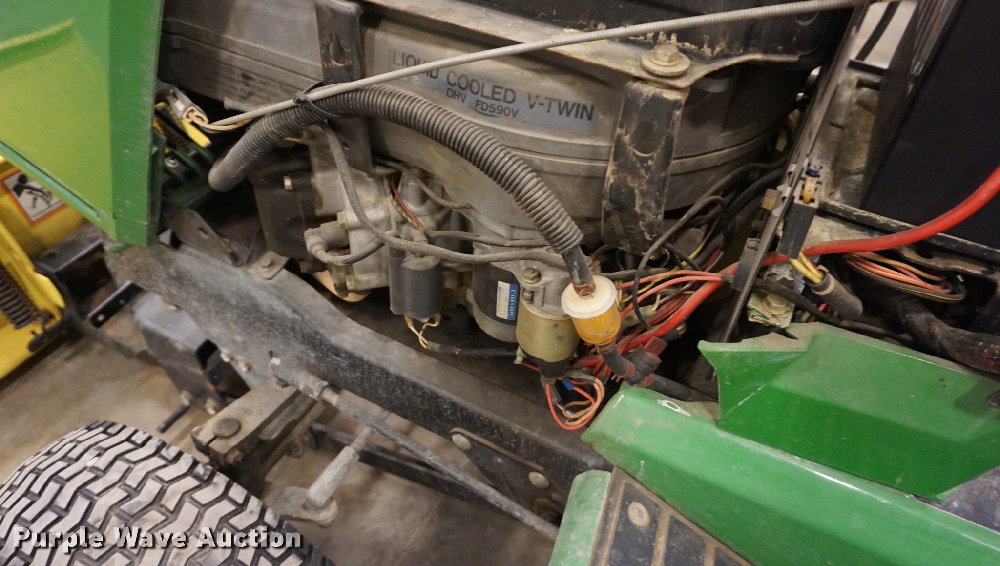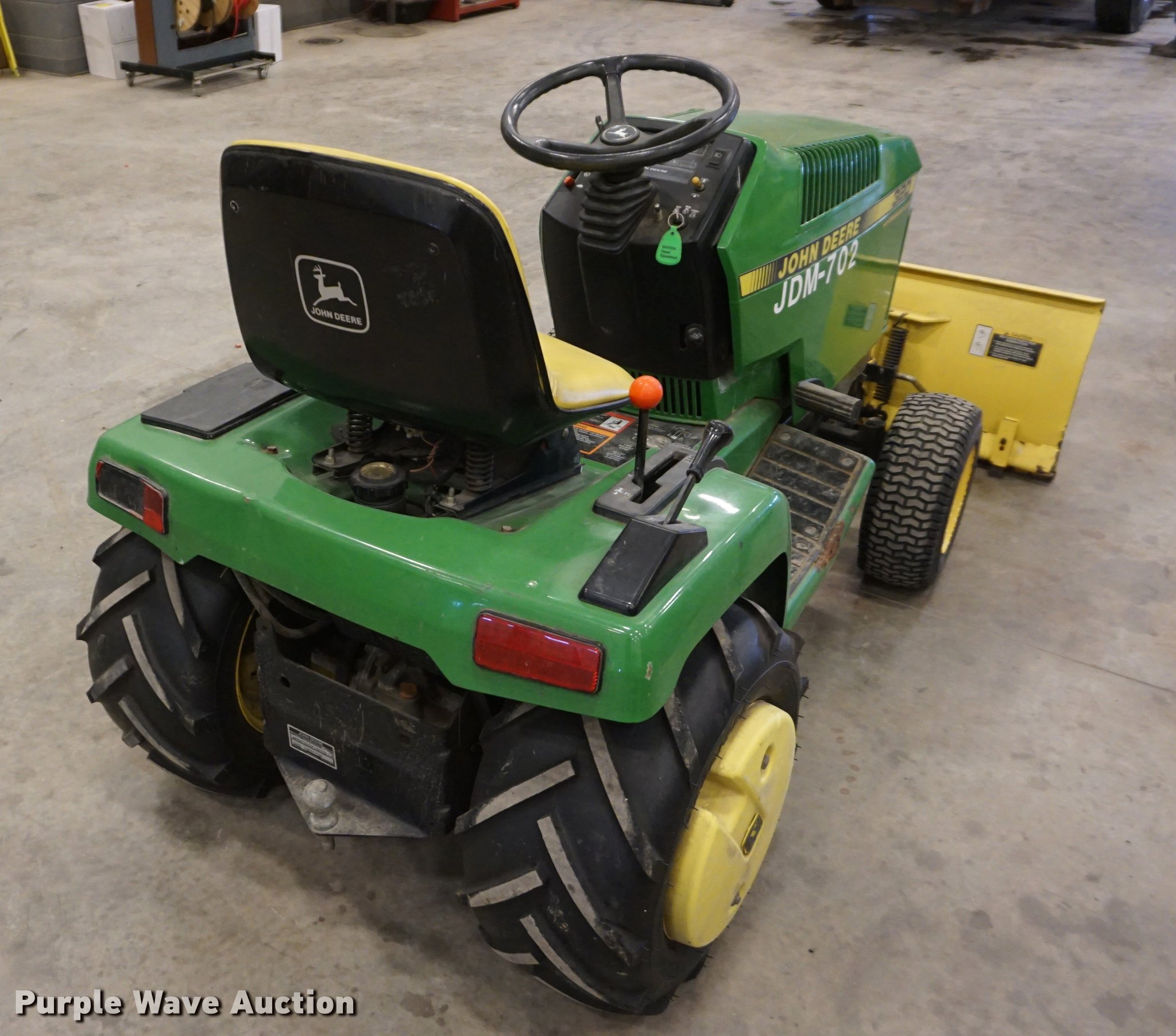 Purple Wave is selling a used Lawn Mower in Kansas. This item is a John Deere 320 lawn mower with the following: 680 hours on meter, Kawasaki two cylinder gas engine, Hydrostatic transmission, 48" push blade, 16x6.50-8 front tires, 23x10.50-12 rear tires, Serial M00320X160321, Unit# JCWJDM702