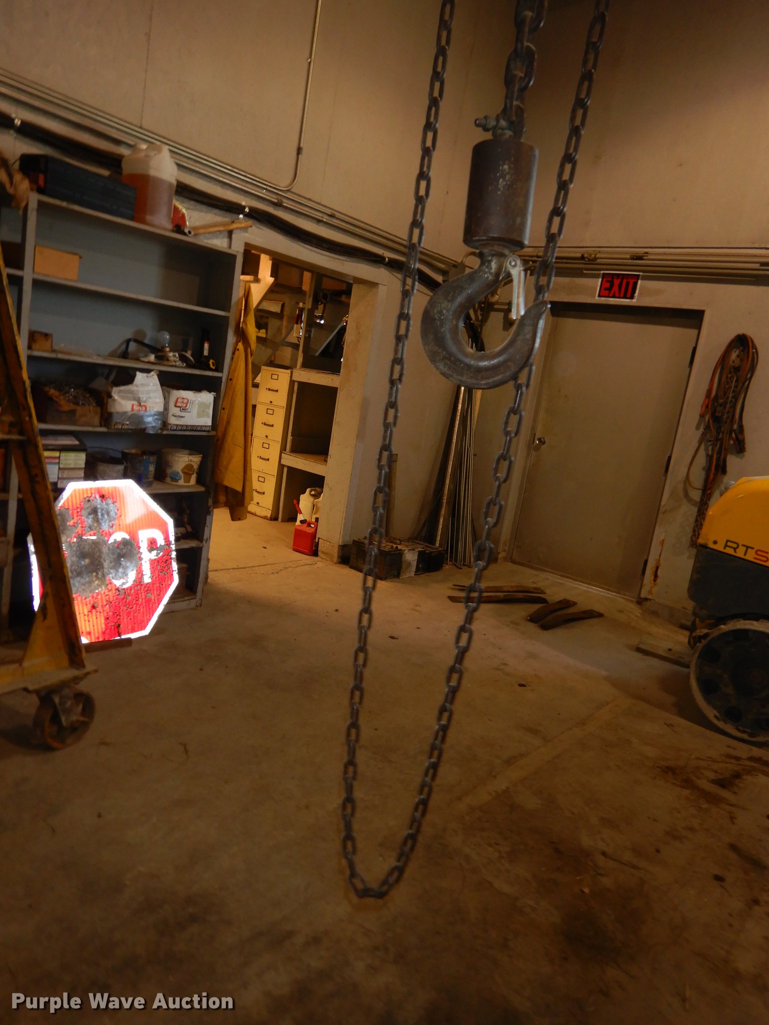 Purple Wave is selling a used Tools in Kansas. This item is a A-frame hoist with the following: 11'W x 10'H, Two ton capacity, Work lights, 8" casters