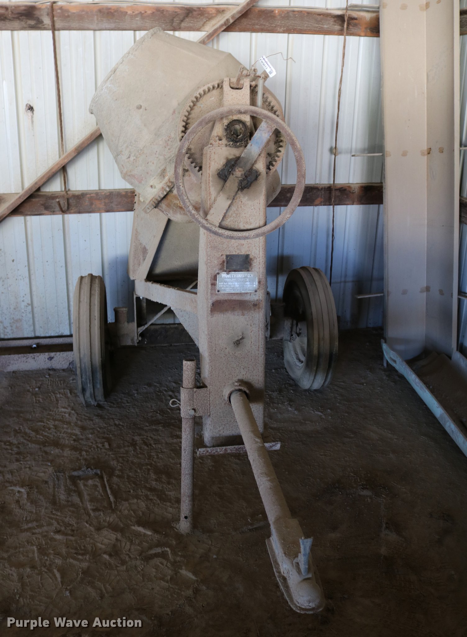 Purple Wave is selling a used Concrete Dispenser in Kansas. This item is a Worthington cement mixer with the following: 107"L x 54"W, Briggs & Stratton 5 HP gas engine, 18 RPM mixer, 3.5 sack capacity, Firestone 6.00-16 tires, Serial 54515