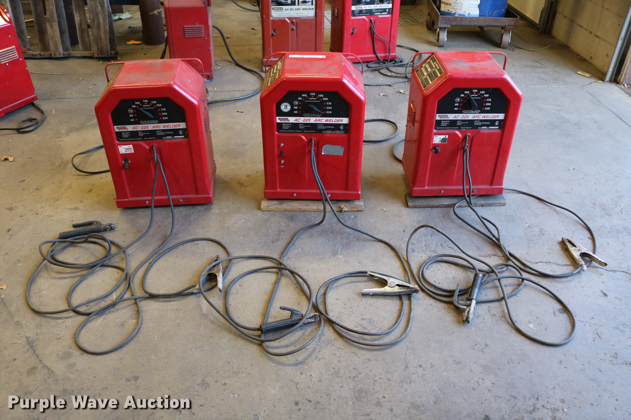 Purple Wave is selling a used Welder (Manual) in Kansas. This item is a (3) Lincoln AC-225 arc welders with the following: 230V, Single phase, Code 9422-909, 10420-904, 9422-909