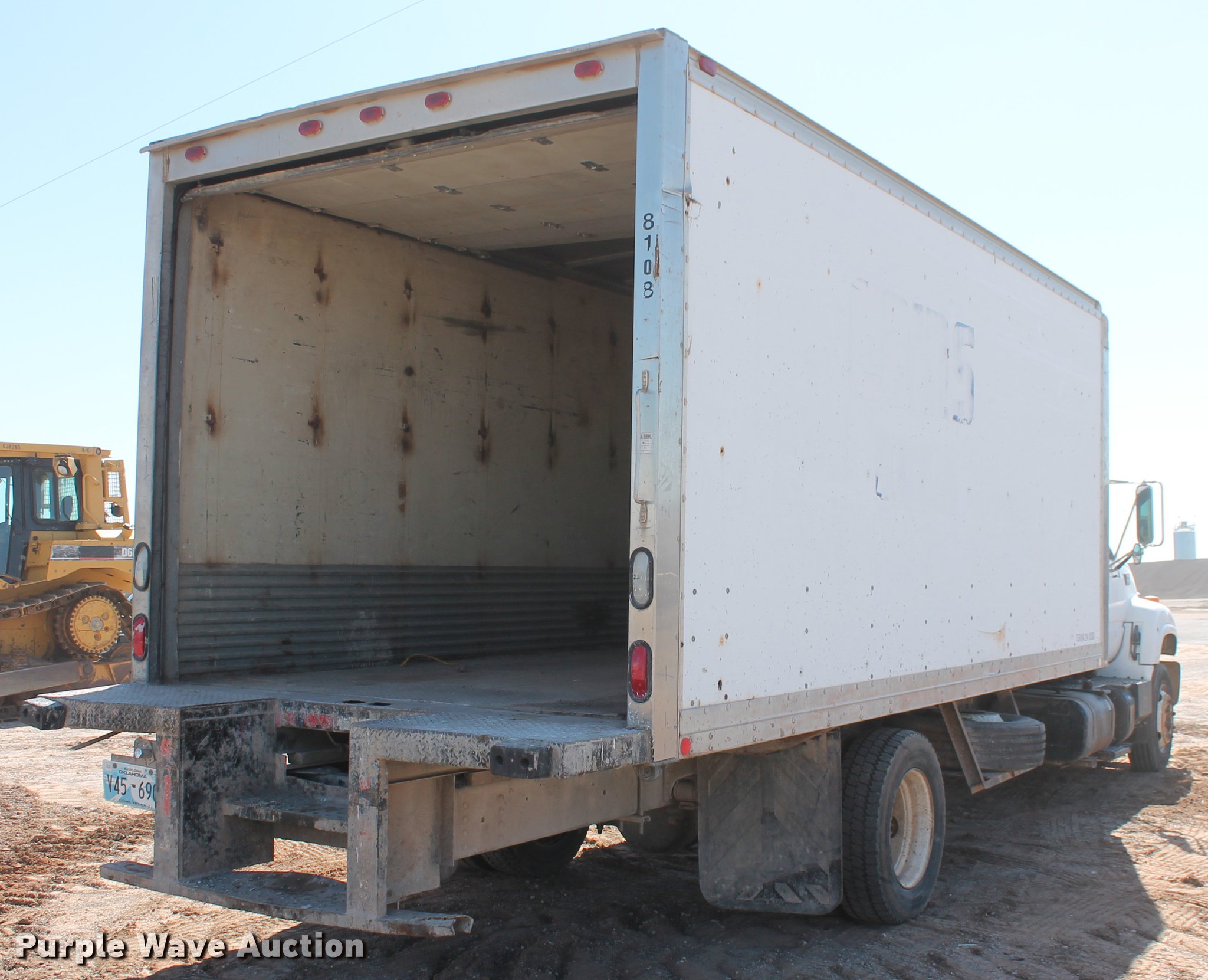 Purple Wave is selling a used Box Truck in Oklahoma. This item is a 2002 GMC C6500 box truck with the following: 222,821 miles on odometer, 325 hours on meter, Caterpillar 3126 7.2L L6 turbo diesel engine, 330 HP, Serial CKM37222, Automatic transmission, Single axle, AC and heat, Cruise, AM/FM, Block heater, Morgan GVFD08518096 box bed, 20'L x 8'W, Wood floor, Rear roll up door, Dock bumper, Serial MWI02VB24111001, Single fuel tank, Spring suspension, Hydraulic brakes, 212" wheelbase, 245/70R19.5 tires, GVWR 25,000 lbs, Rear door is struck, Drivers side interior door panel partially disassembled, Unit# 785.104
